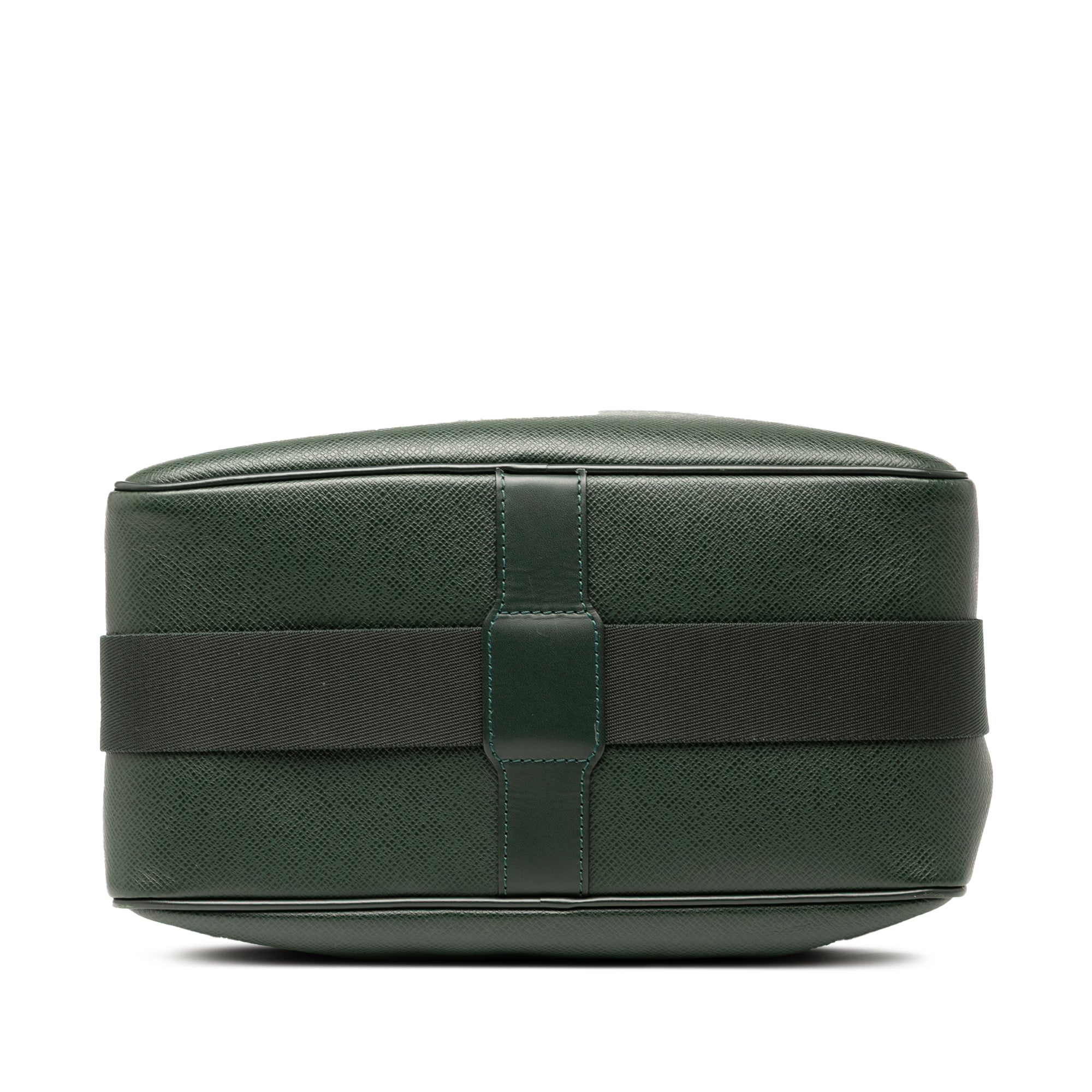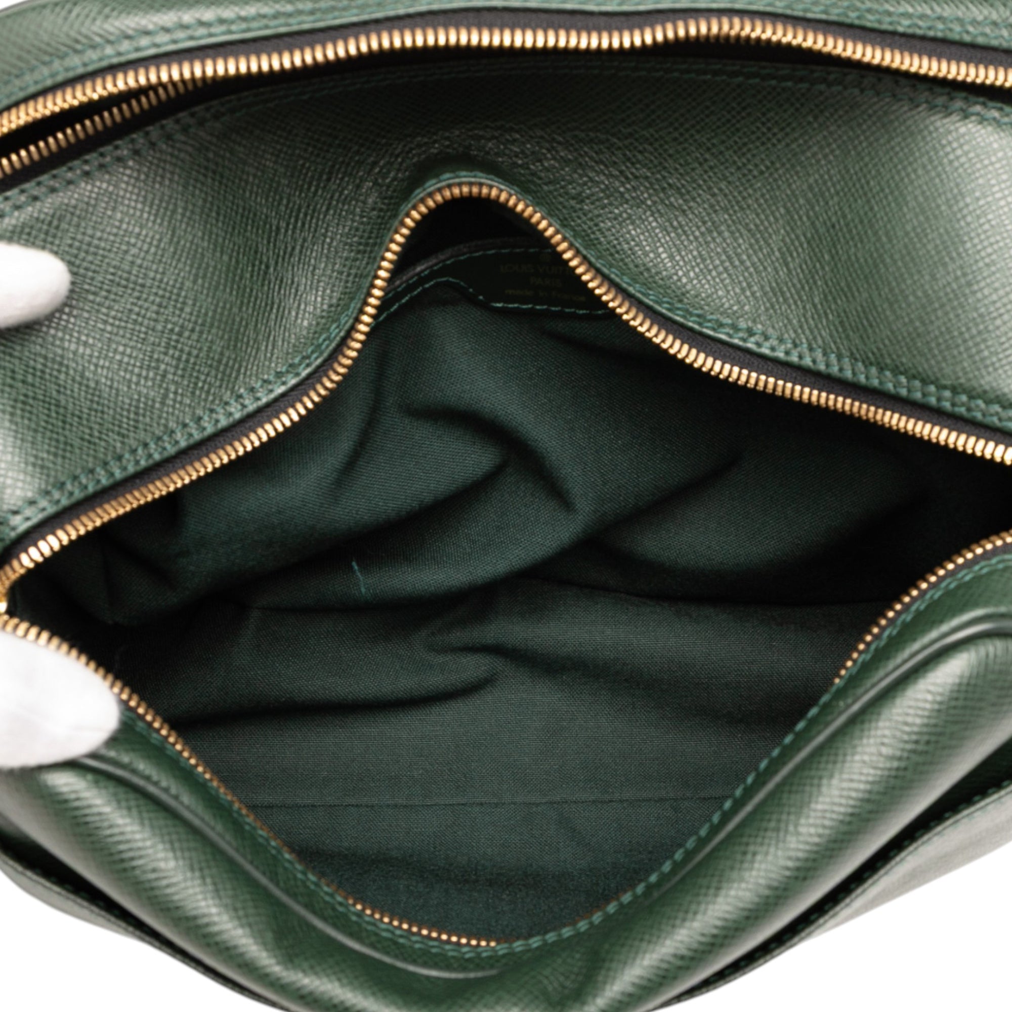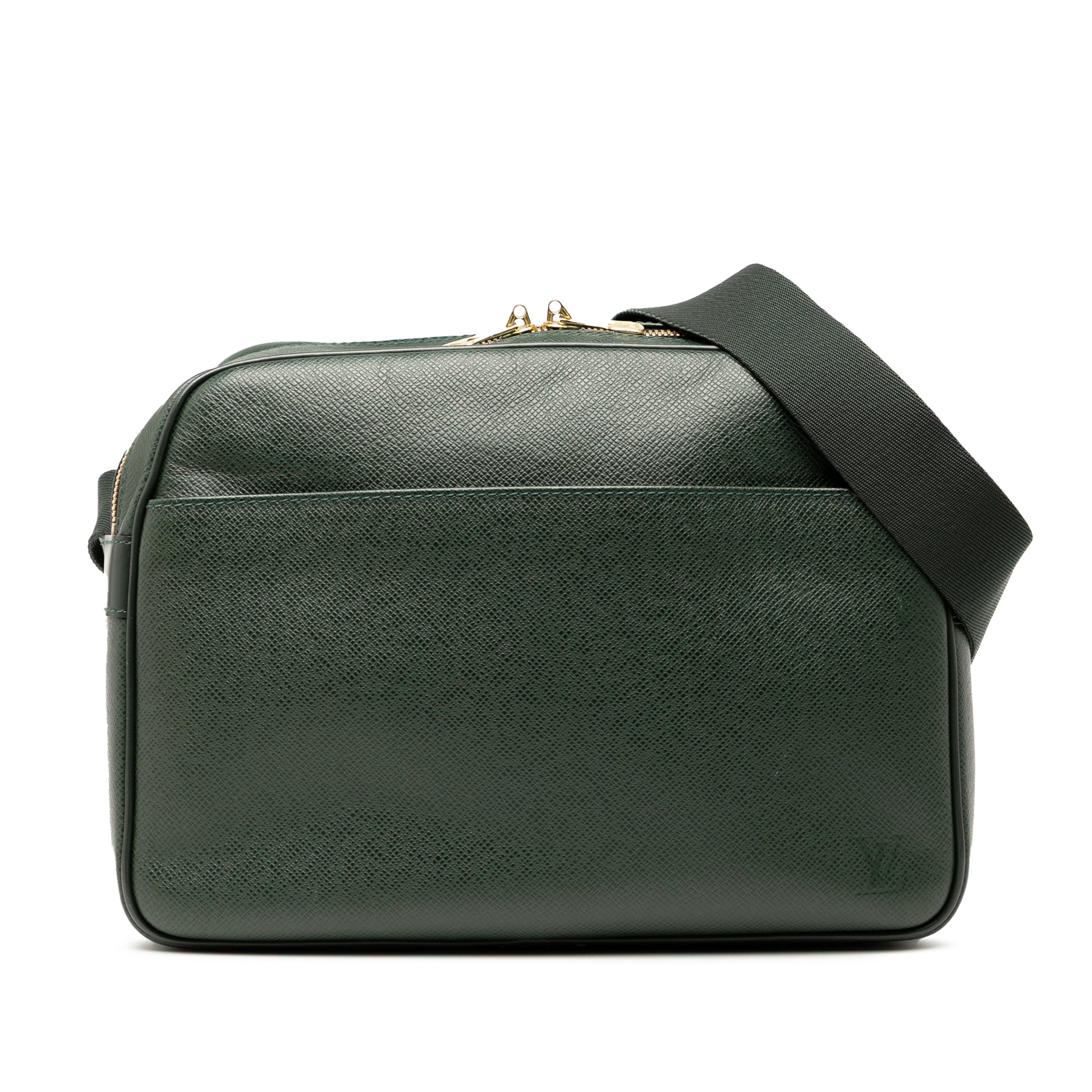 The Reporter PM features a taiga leather body, a flat adjustable strap, double top zip closures, an exterior slip pocket, and an interior slip pocket. Retail Price: 1350.00