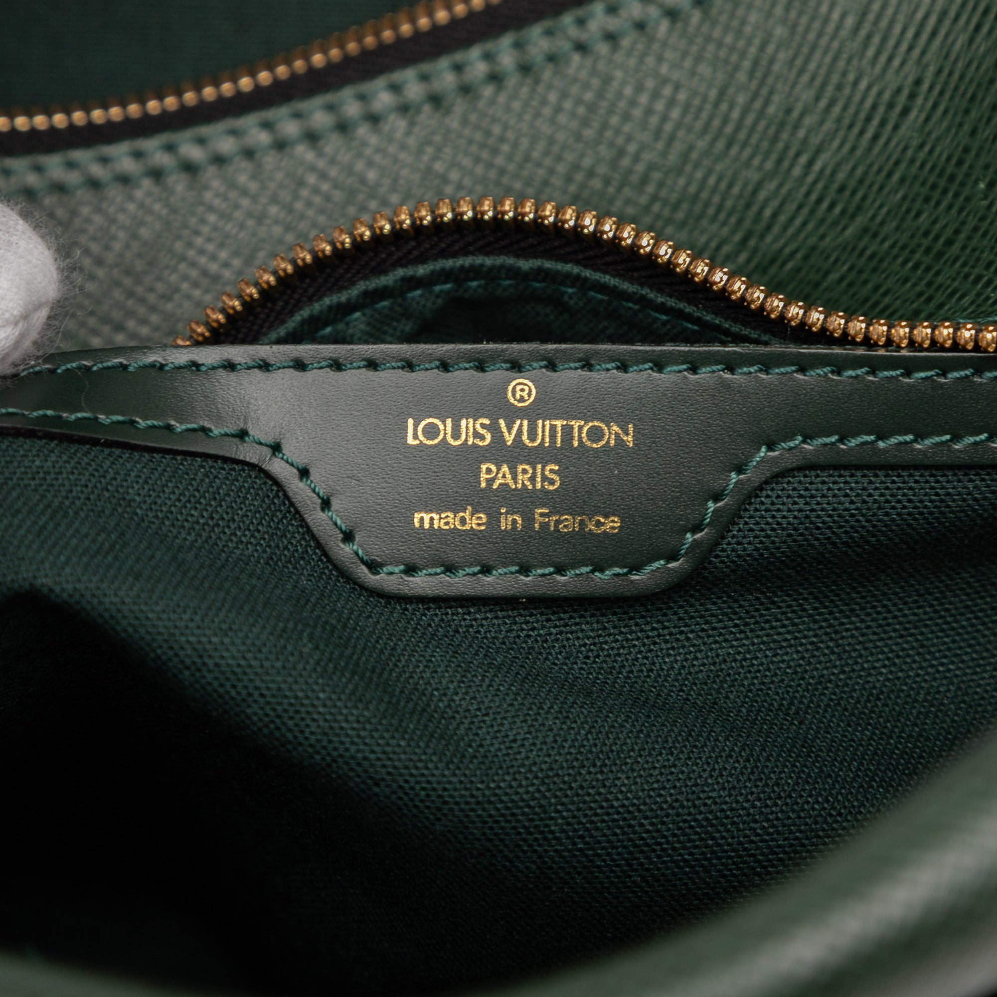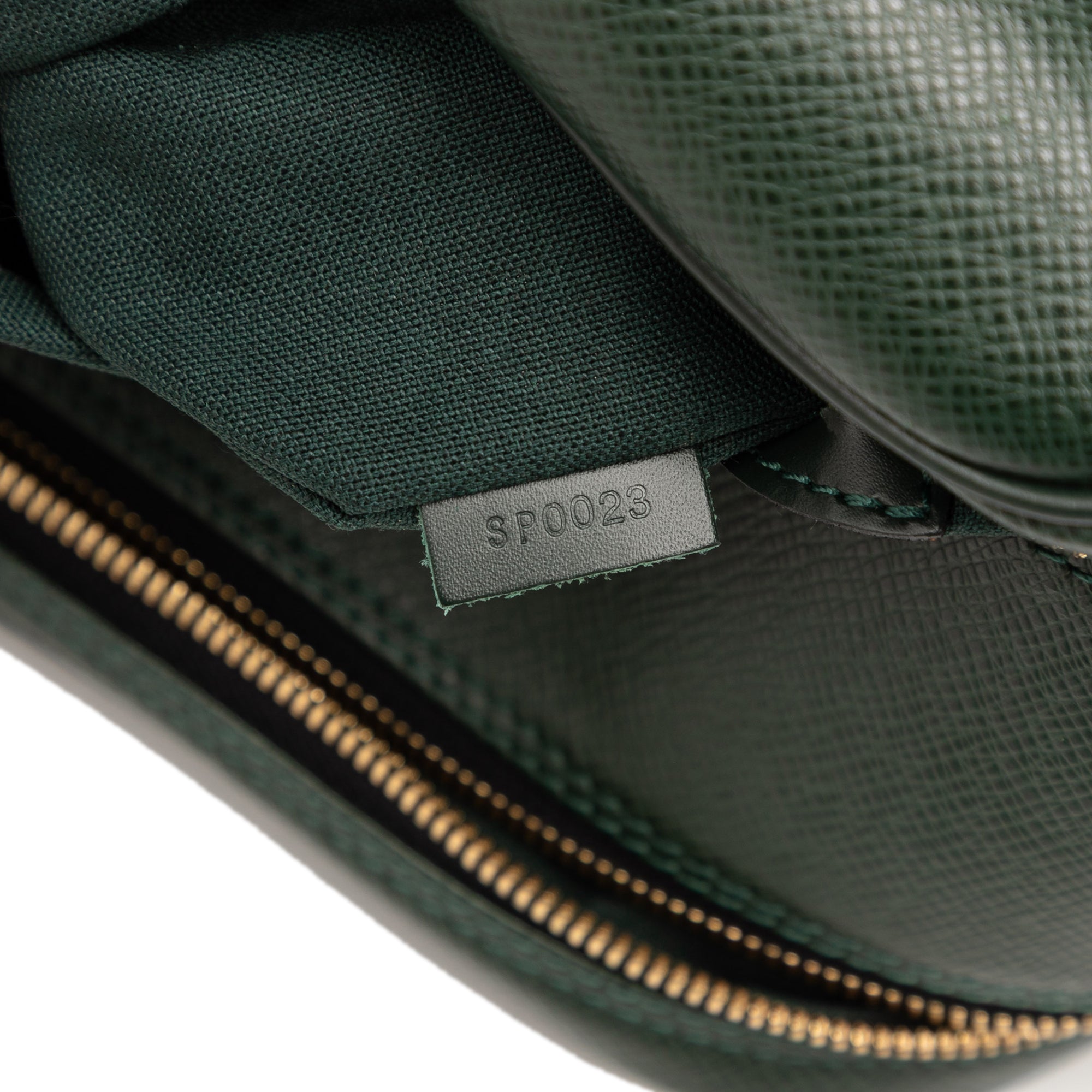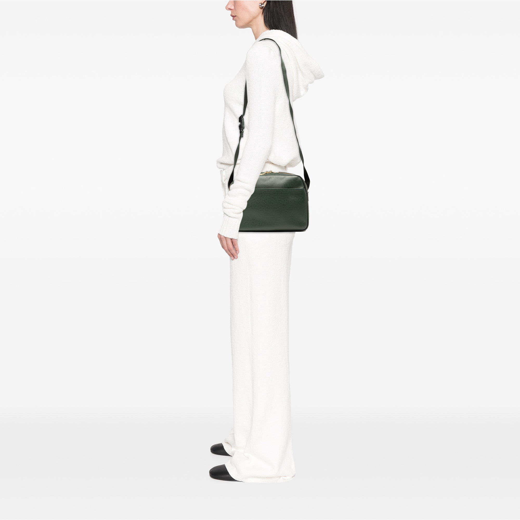 The Reporter PM features a taiga leather body, a flat adjustable strap, double top zip closures, an exterior slip pocket, and an interior slip pocket. Retail Price: 1350.00