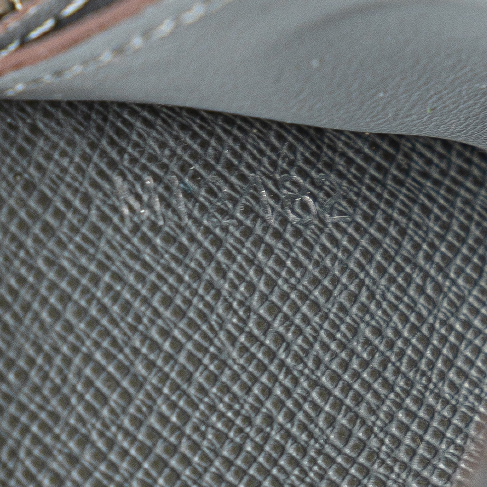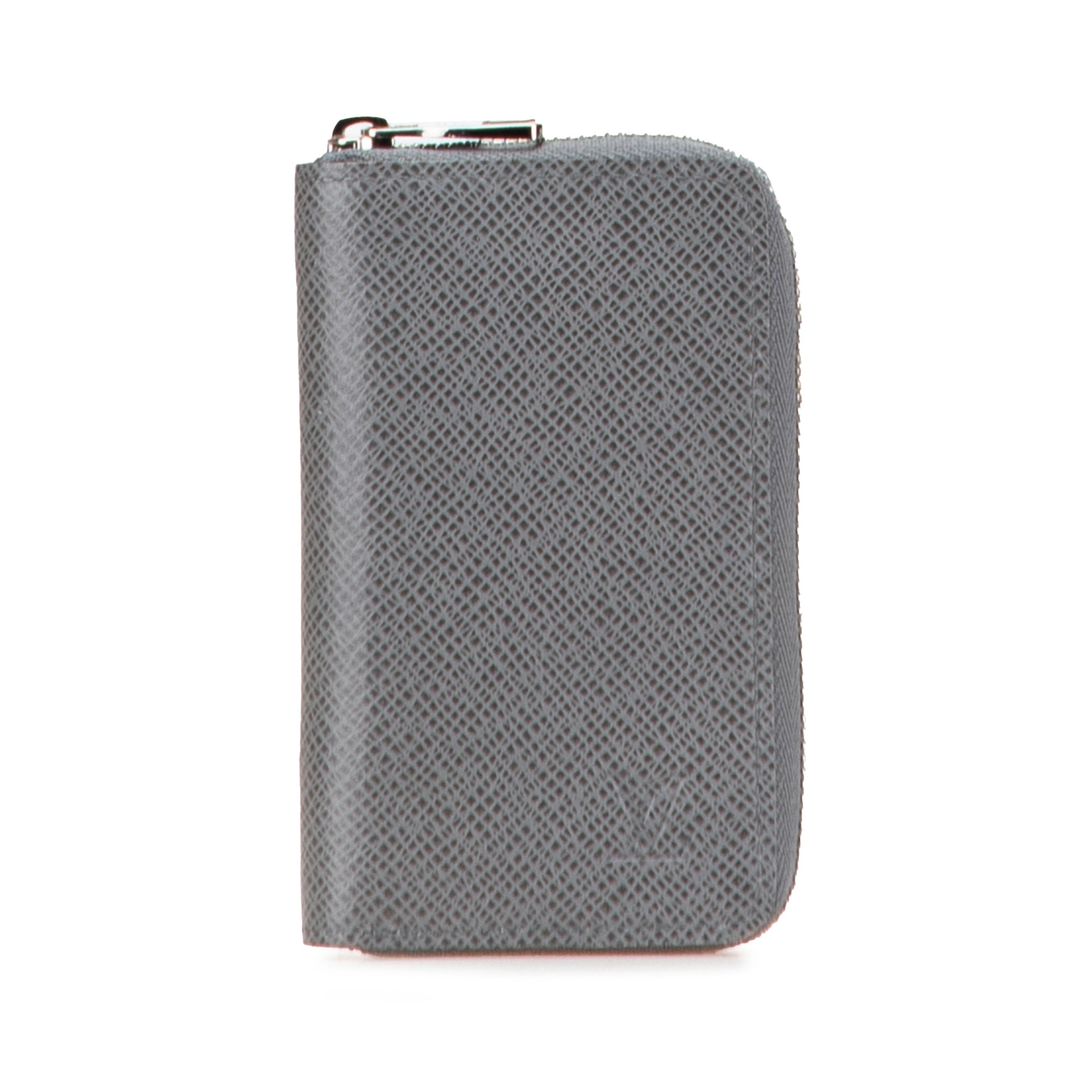 This coin pouch features a taiga leather body, a zip around closure, and interior slip compartments. Inclusion: Dust bag, box. Retail Price: 510.00
