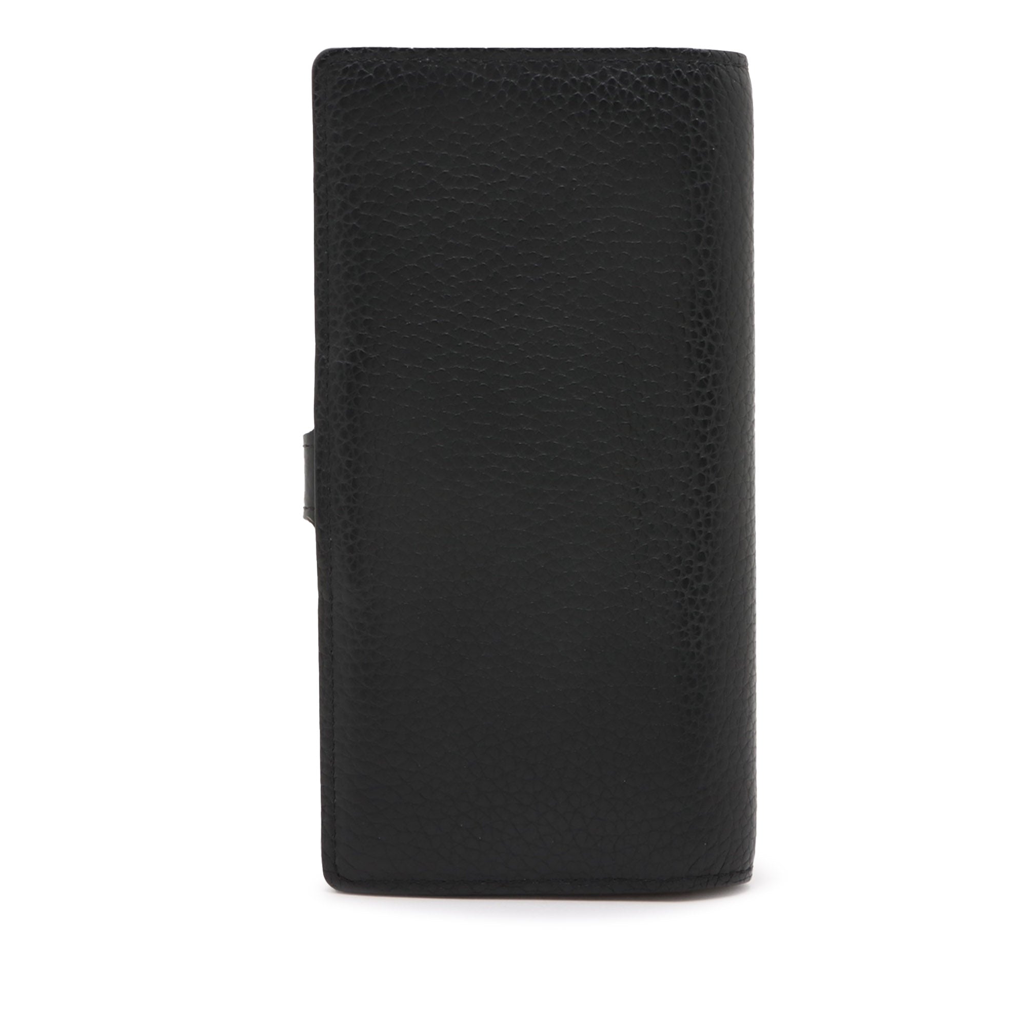 This long wallet features a leather body, a flat strap with pull through closure, and interior zip and slip pockets. Retail Price: 1310.00