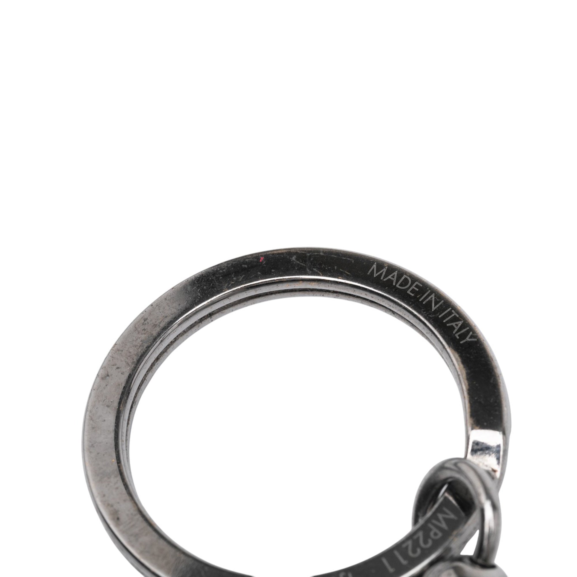 This key chain features a taurillon leather body, a silver tone key ring, and a lobster claw clasp attachment. Retail Price: 600.00