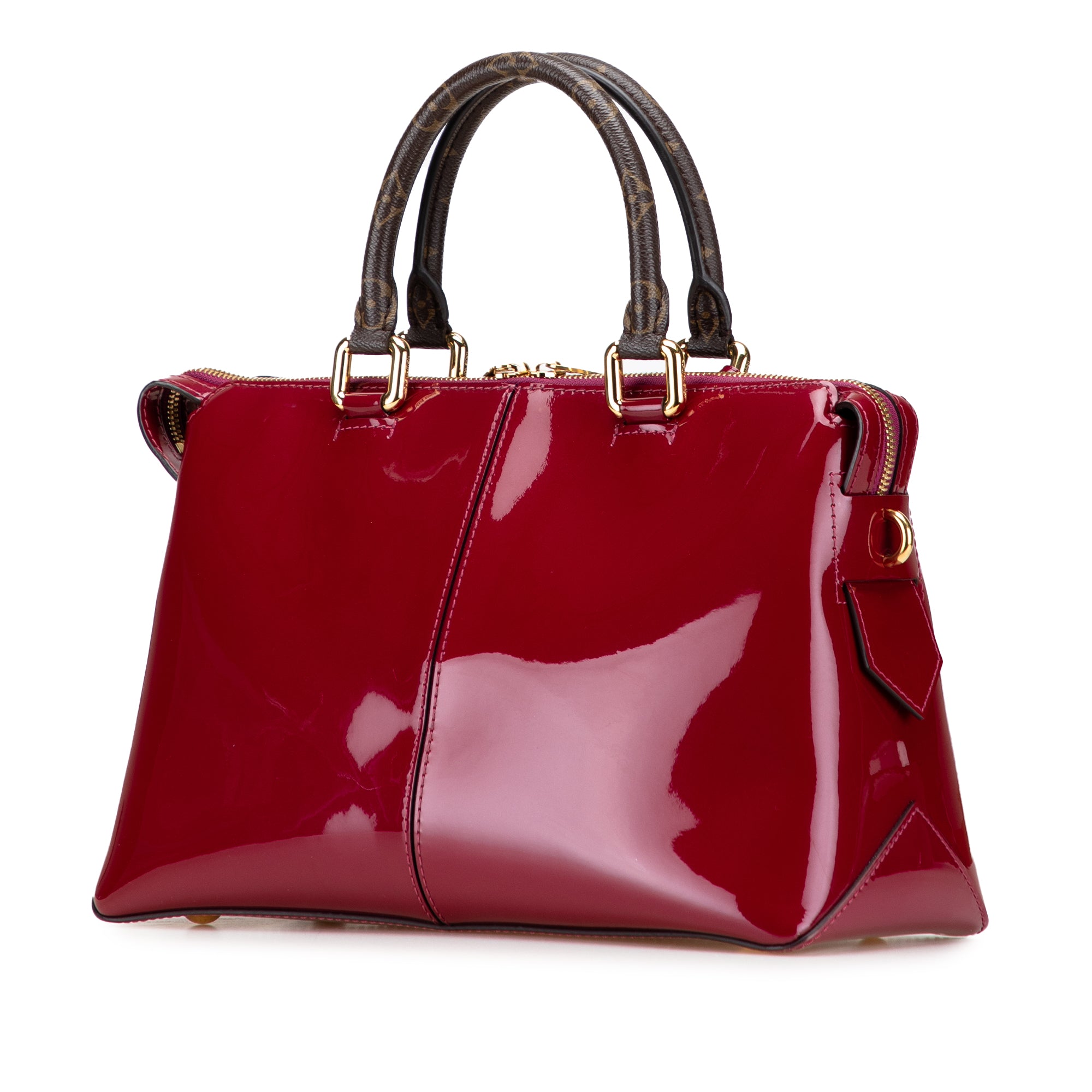 The Miroir Tote features a vernis leather body, rolled monogram canvas handles, a detachable flat strap, a top zip closure, and interior slip pockets. Inclusion: Dust bag. Retail Price: 2270.00