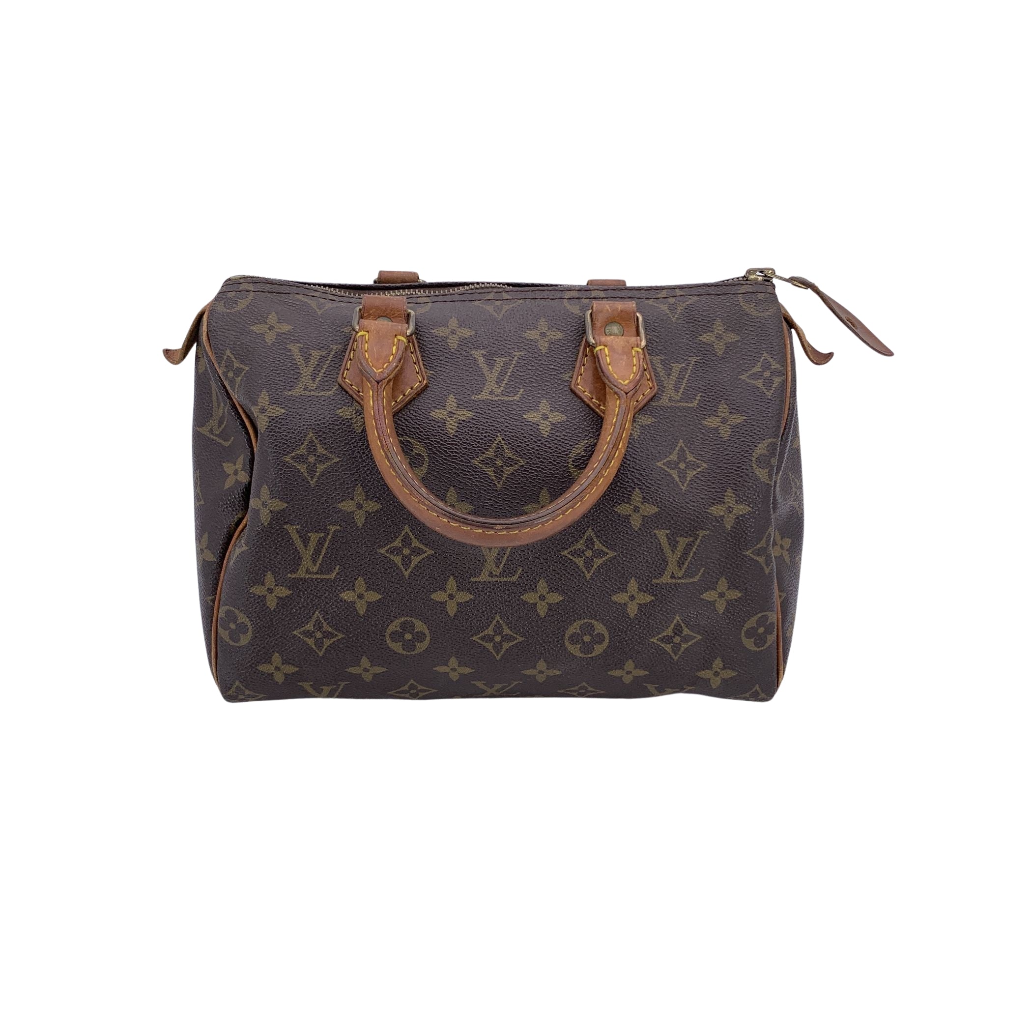 The Louis Vuitton Speedy 25 Is An Iconic Piece From One Of The Most Beloved Lines In The Louis Vuitton Collection. Known For Its Timeless Appeal And Versatility, This Classic Bag Is Crafted From The Brand's Signature Brown Monogram Canvas, Exuding An Effortless Elegance That Only Improves With Age. The Speedy 25 Features The Signature Rounded Shape, Which Is Both Compact And Functional, Making It Ideal For Everyday Use Or As a Chic Travel Companion. Its Double Beige Leather Handles And Leather Piping Add a Touch Of Refinement, While The Gold Metal Hardware Beautifully Complements The Rich Canvas. The Upper Zipper Closure Provides Easy Access To The Interior, Lined In Classic Brown Canvas, Which Includes One Open Pocket For Convenient Storage Of Smaller Essentials. The 'Louis Vuitton Paris - Made In France' Engraving On The Cowhide Leather Side Panel And The Signed Hardware Confirm The Craftsmanship Of This Exquisite Piece. Autheticity Serial Number Inside (Mi1911) A True Symbol Of Luxury, The Louis Vuitton Speedy 25 Is a Must-have For Any Fashion Lover Or Vintage Collector, Embodying Both Practicality And The Timeless Style That Has Made Louis Vuitton a Staple In The World Of High Fashion.