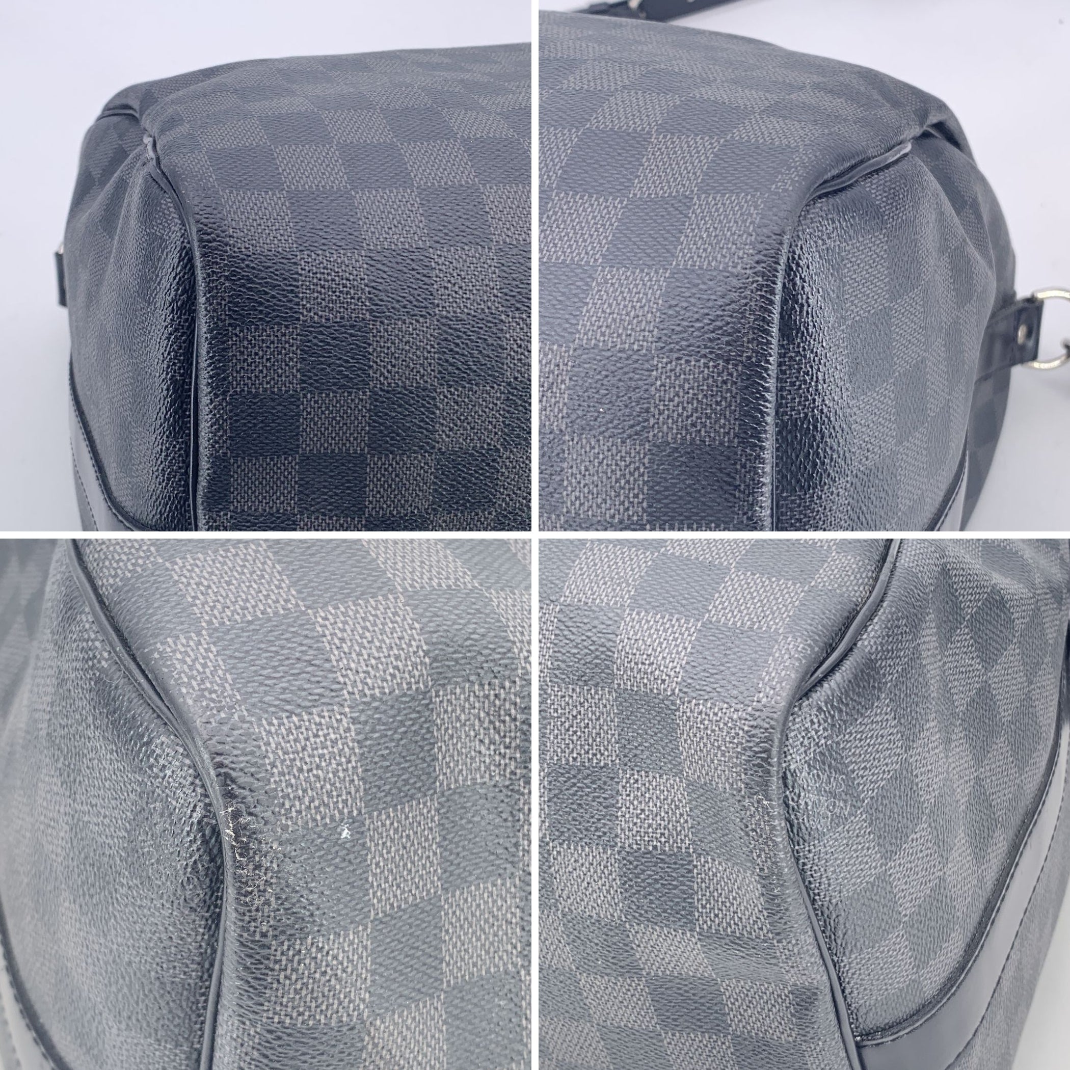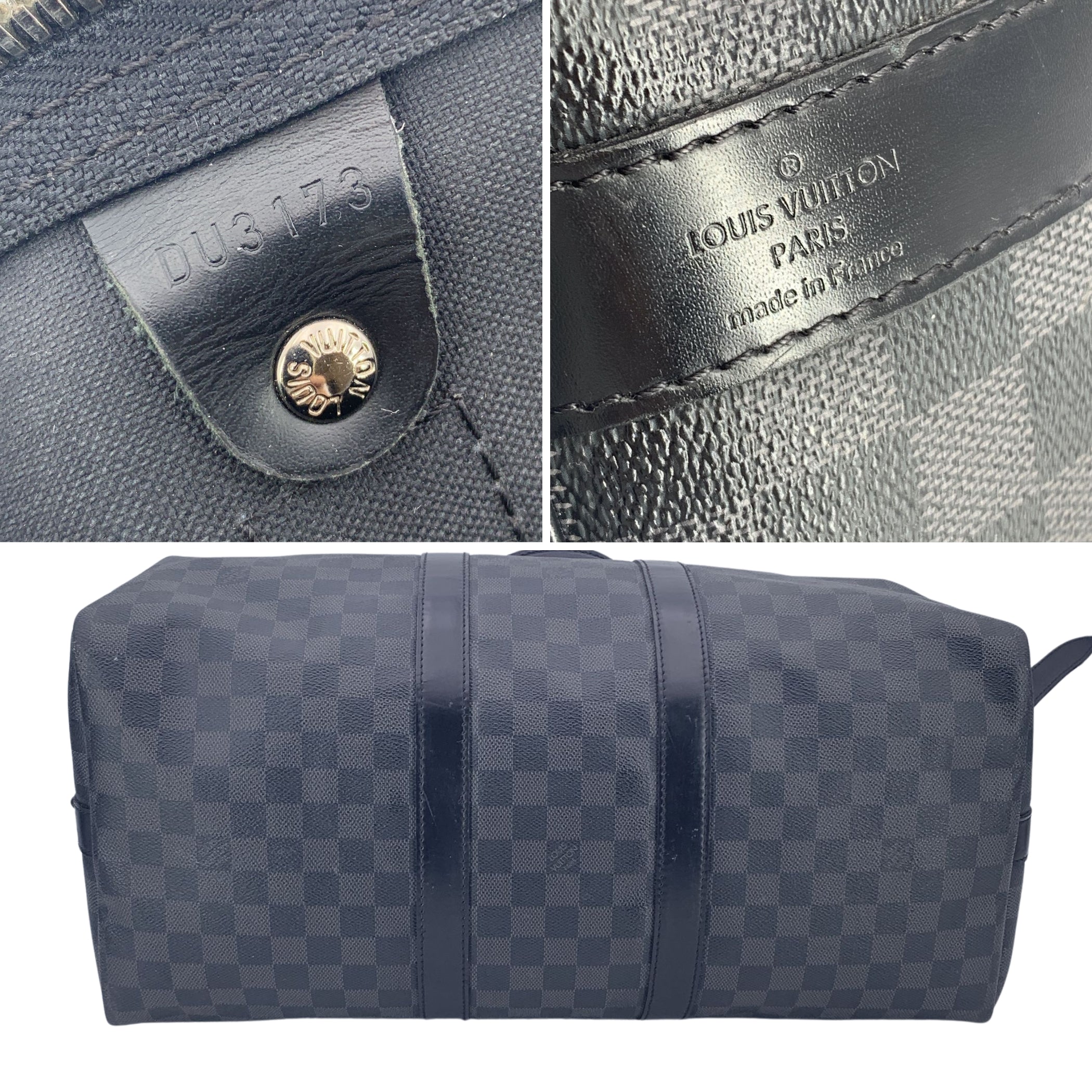 This Beautiful Bag Will Come With a Certificate Of Authenticity Provided By Entrupy. The Certificate Will Be Provided At No Further Cost This Louis Vuitton 'Keepall Bandouliere 45' Travel Bag Is a True Icon Of Luxury And Functionality, Making It The Ultimate Companion For Your Next Adventure. Crafted From The Brand's Signature Damier Graphite Canvas, This Timeless Piece Is Accented With Black Leather Trim, Blending Durability With High-end Design. The Bag Opens To Reveal a Spacious Black Canvas Lining, Offering Both Style And Practicality. Inside, You'll Find a Convenient Side Zip Pocket And a D-ring, Perfect For Securing Small Essentials. The Double Zip Closure Ensures Easy Access. Silver Metal Pieces And Rounded Leather Handles Elevate The Bag's Sophistication, While The Adjustable And Removable Shoulder Strap Offers Versatile Carrying Options, Whether You Prefer It On Your Arm Or Over Your Shoulder. A Leather Id Tag Adds a Personalized Touch, And The "Louis Vuitton Paris - Made In France" Engraving On The Leather Trim At The Bottom Side Confirms Its Authenticity. Inside, The Data Code (Du3173) Is Also Engraved On The Leather Piece For Provenance. This Stunning Travel Bag, With a Retail Price Of €2,150, Offers a Perfect Blend Of Luxury And Practicality, Making It a Must-have For Any Louis Vuitton Enthusiast. Whether You're Traveling The World Or Simply Looking To Elevate Your Everyday Style, This Bag Promises To Be Both a Functional And Fashionable Companion.