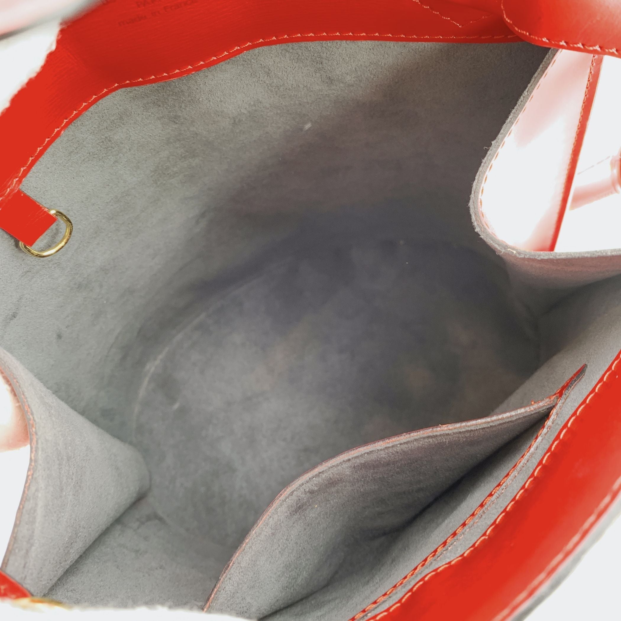 Vintage Louis Vuitton Cluny Shoulder Bag In Red Epi Leather - a Timeless And Versatile Piece Perfect For Every Occasion. Crafted From Louis Vuitton's Signature Textured Epi Leather, This Elegant Bag Features a Structured Silhouette With a Fold-over Strap And Turn-lock Closure, An Oval Base, And An Adjustable Leather Shoulder Strap For Comfortable Wear. The Spacious Interior Is Lined In Soft Grey Microfiber And Includes a Side Open Pocket Ideal For Cards Or a Phone. The Subtle 'Louis Vuitton Paris - Made In France' Stamp Is Stamped Inside, And The Data Code Is Discreetly Stamped Inside (Vi0993). A Refined Example Of Louis Vuitton Craftsmanship, This Classic Bag Originally Retailed For $1,250.