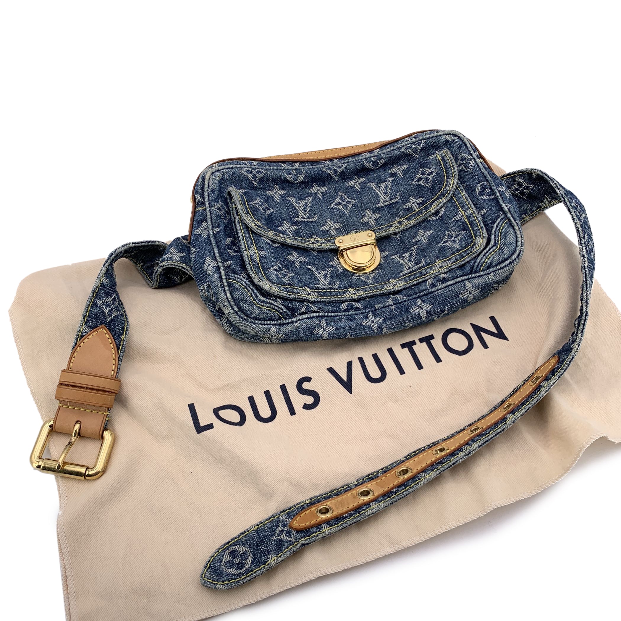 This Beautiful Bag Will Come With a Certificate Of Authenticity Provided By Entrupy. The Certificate Will Be Provided At No Further Cost. Step Into The World Of Iconic Louis Vuitton With This Guaranteed Authentic Denim Bum Bag, a True Collector's Piece Designed By Marc Jacobs. Crafted From Unique Stone-washed Denim, Each Bag Has Its Own Character, Making No Two Exactly Alike. This Particular Style Features The Signature Blue Monogram Denim, Complemented By Vachetta Leather Trim That Adds a Luxurious Contrast To The Casual Denim Fabric. Practicality Meets Style With a Front Snap Pocket For Easy Access To Your Essentials, While The Top Zipper Closure Keeps Your Items Secure. Inside, You'll Find a Vibrant Saffron-colored Microfiber Lining That Adds a Pop Of Color To The Interior. The Bag Is Thoughtfully Designed With a Flat Pocket And a Dedicated Cell Phone Pocket For Seamless Organization. The Adjustable Strap, Which Wraps Comfortably Around You, Features 7 Notches For a Customizable Fit. Finished With Gold Brass Hardware, This Louis Vuitton Denim Bum Bag Offers Both Sophistication And Function In One Chic Design. Whether You're Looking For a Statement Piece Or a Practical, Everyday Accessory, This Bag Delivers The Perfect Blend Of Louis Vuitton's Heritage And Marc Jacobs' Bold Vision.