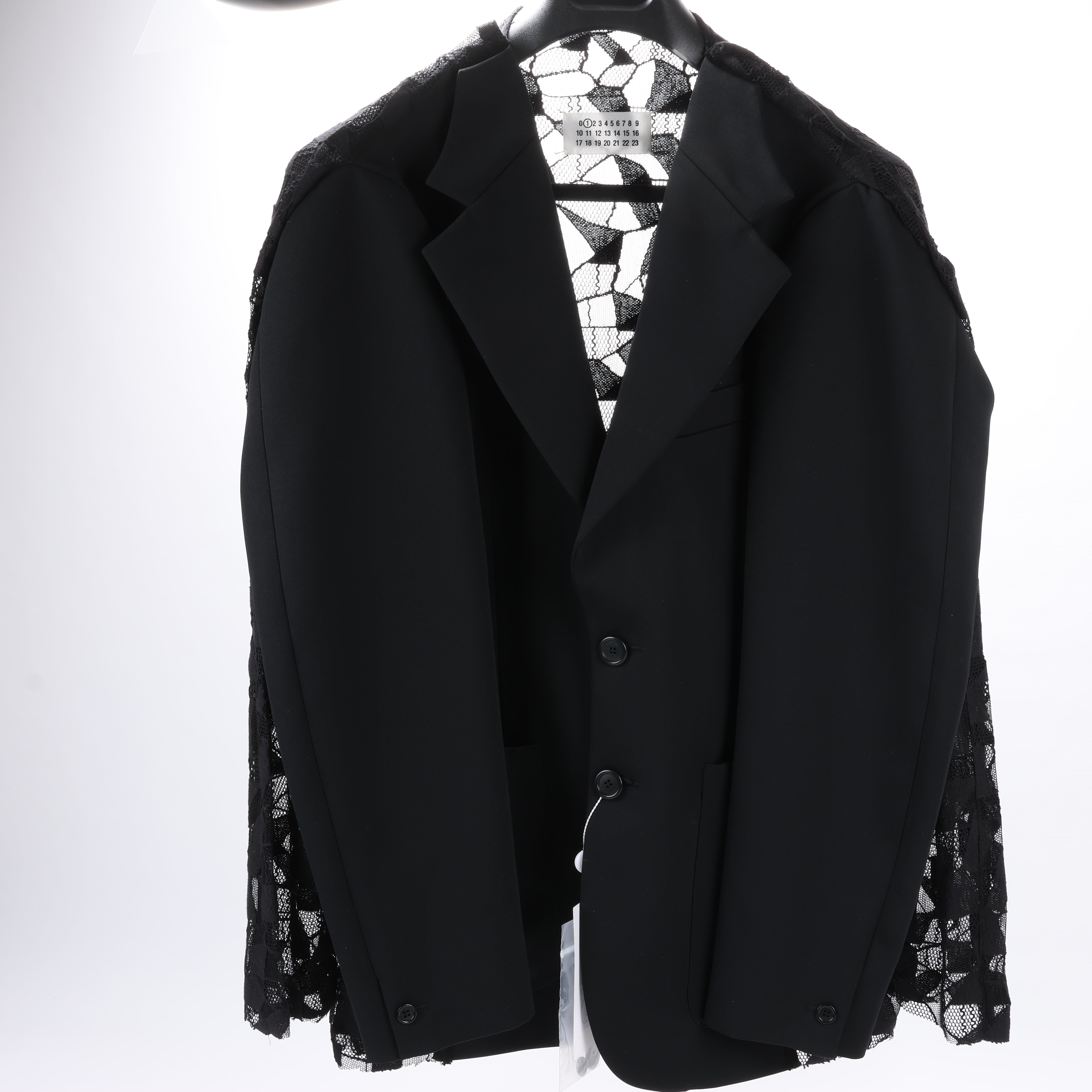 Maison Margiela Black Blazer with Lace Overlay, Size 40