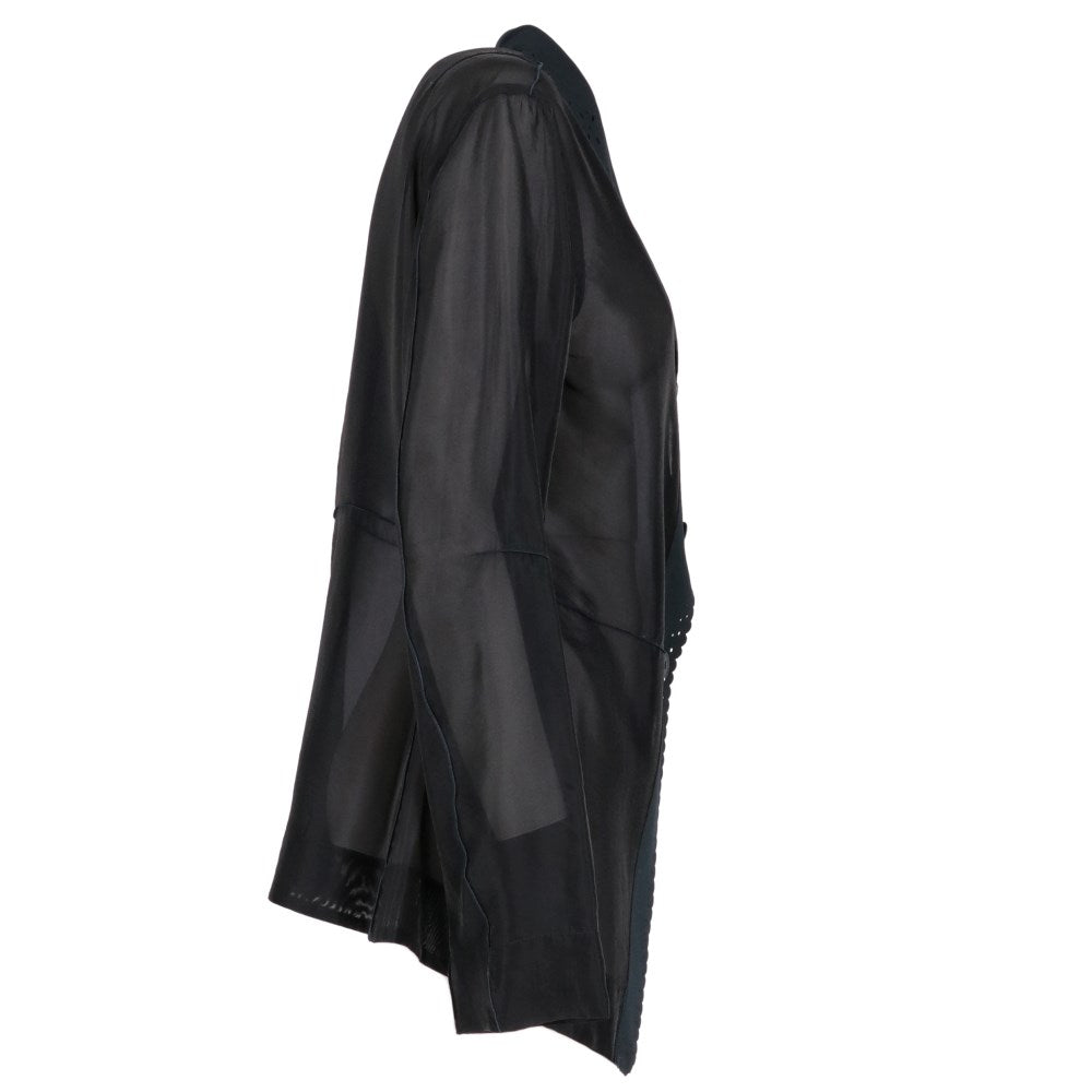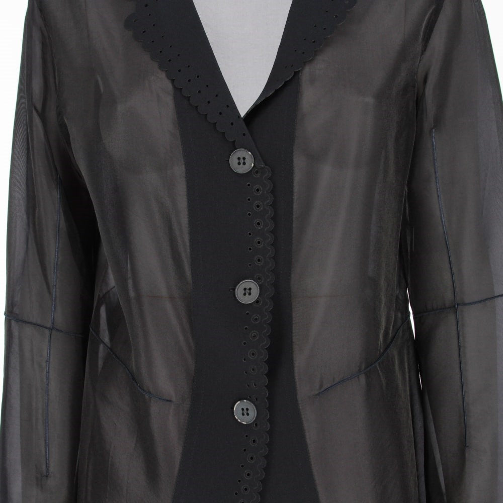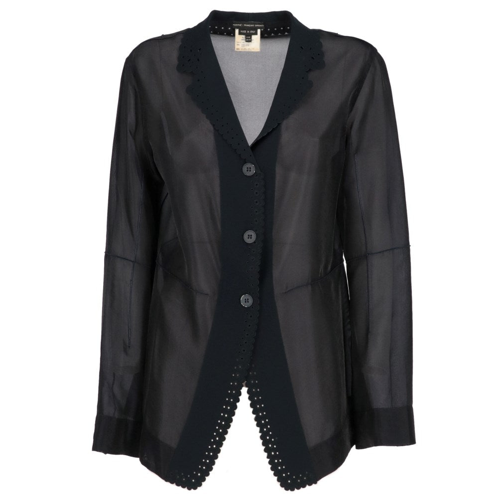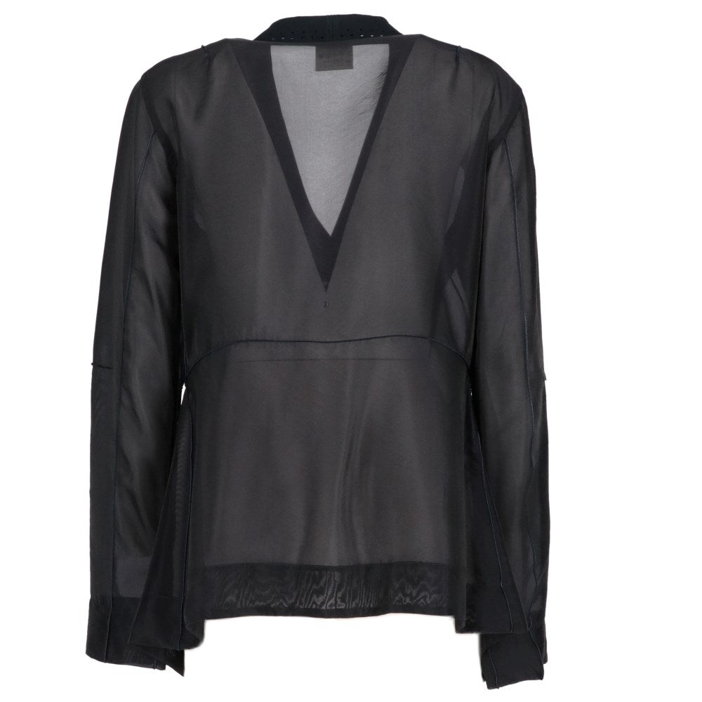 Marithé + François Girbaud semi-transparent 2000s blue cotton blouse. Collar with lapels with perforated details. Closure with front buttons.