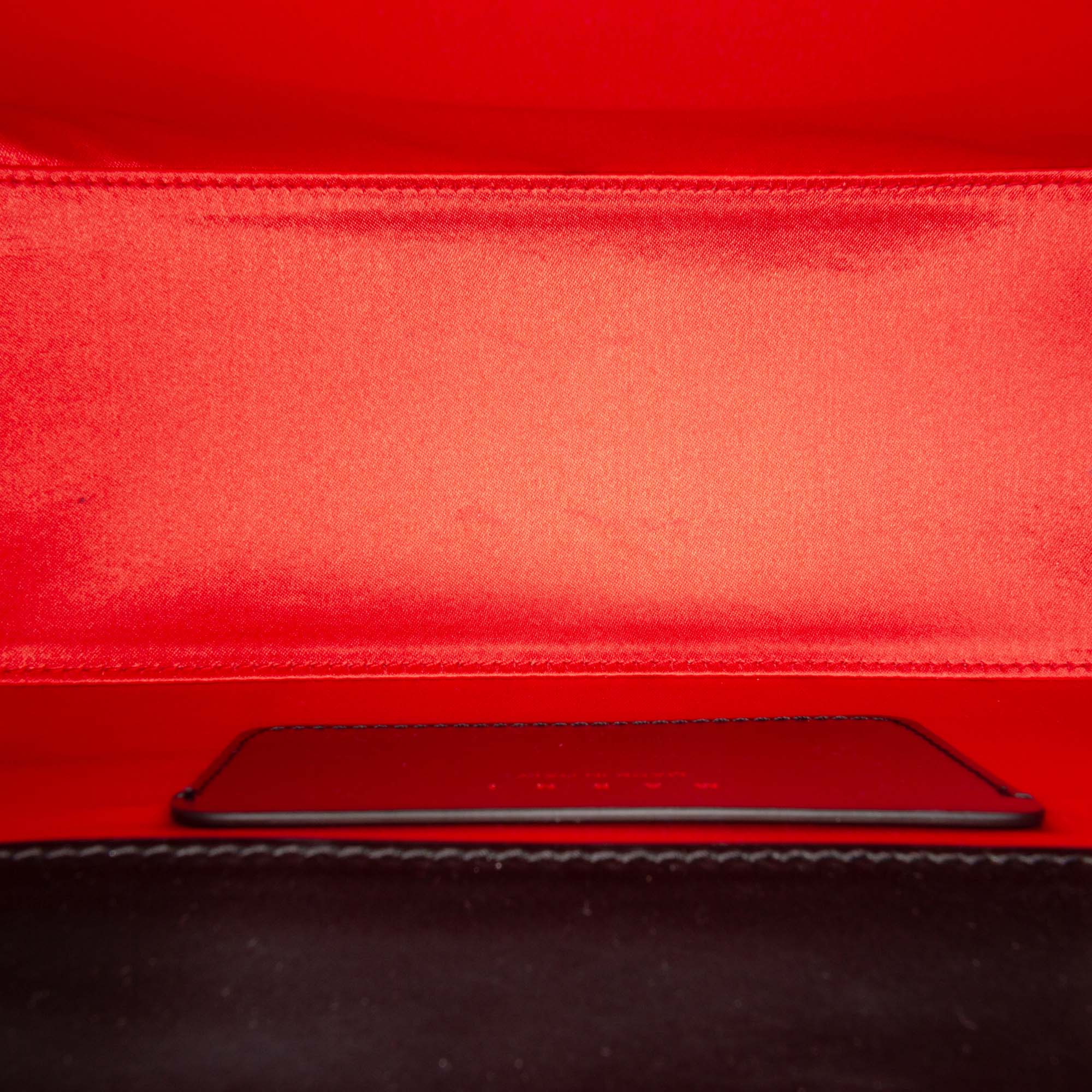 The Relativity satchel features a leather body, a flat leather top handle, a detachable flat leather strap, a flap with push lock closure, and an interior slip pocket. Inclusion: Dust bag. Retail Price: 2040.00