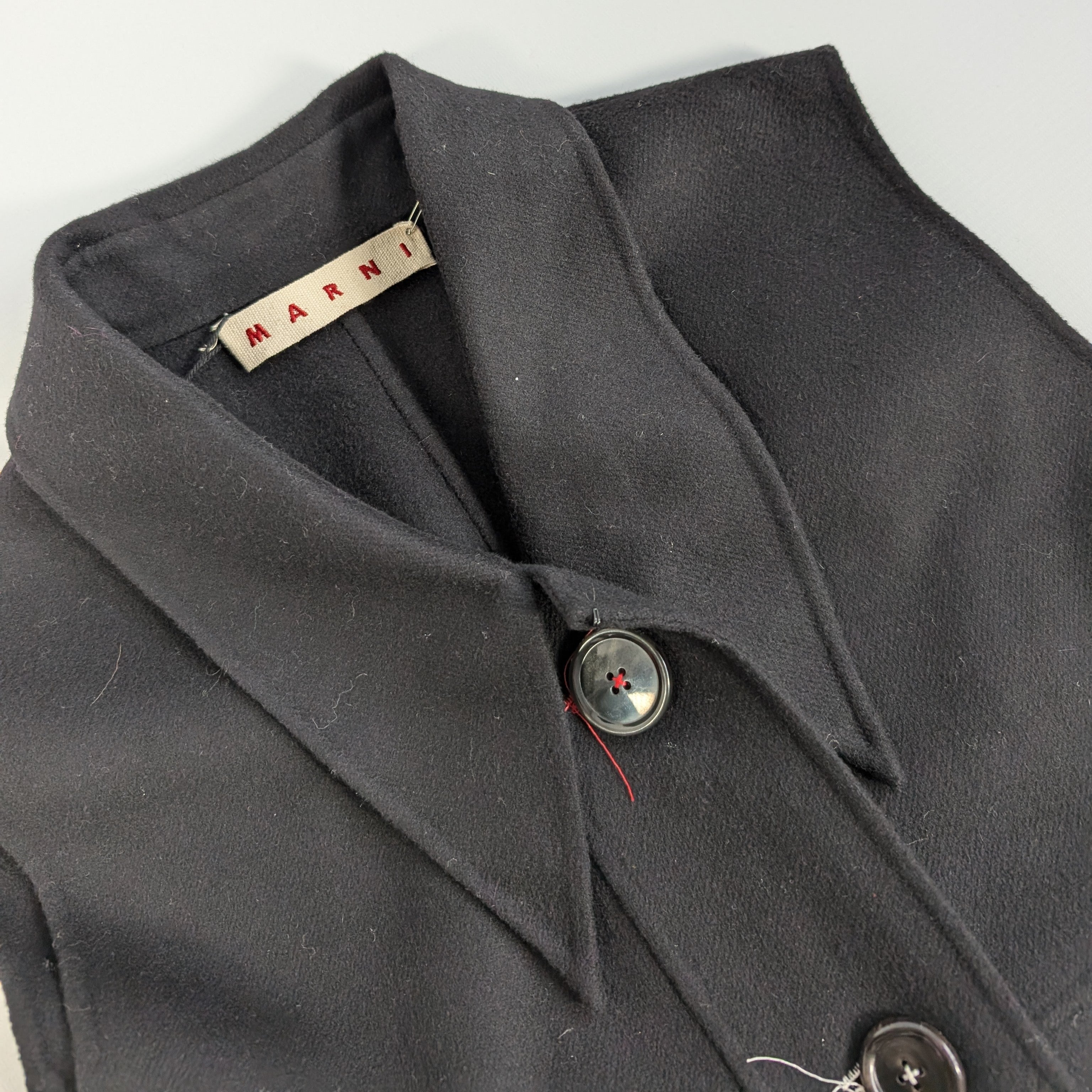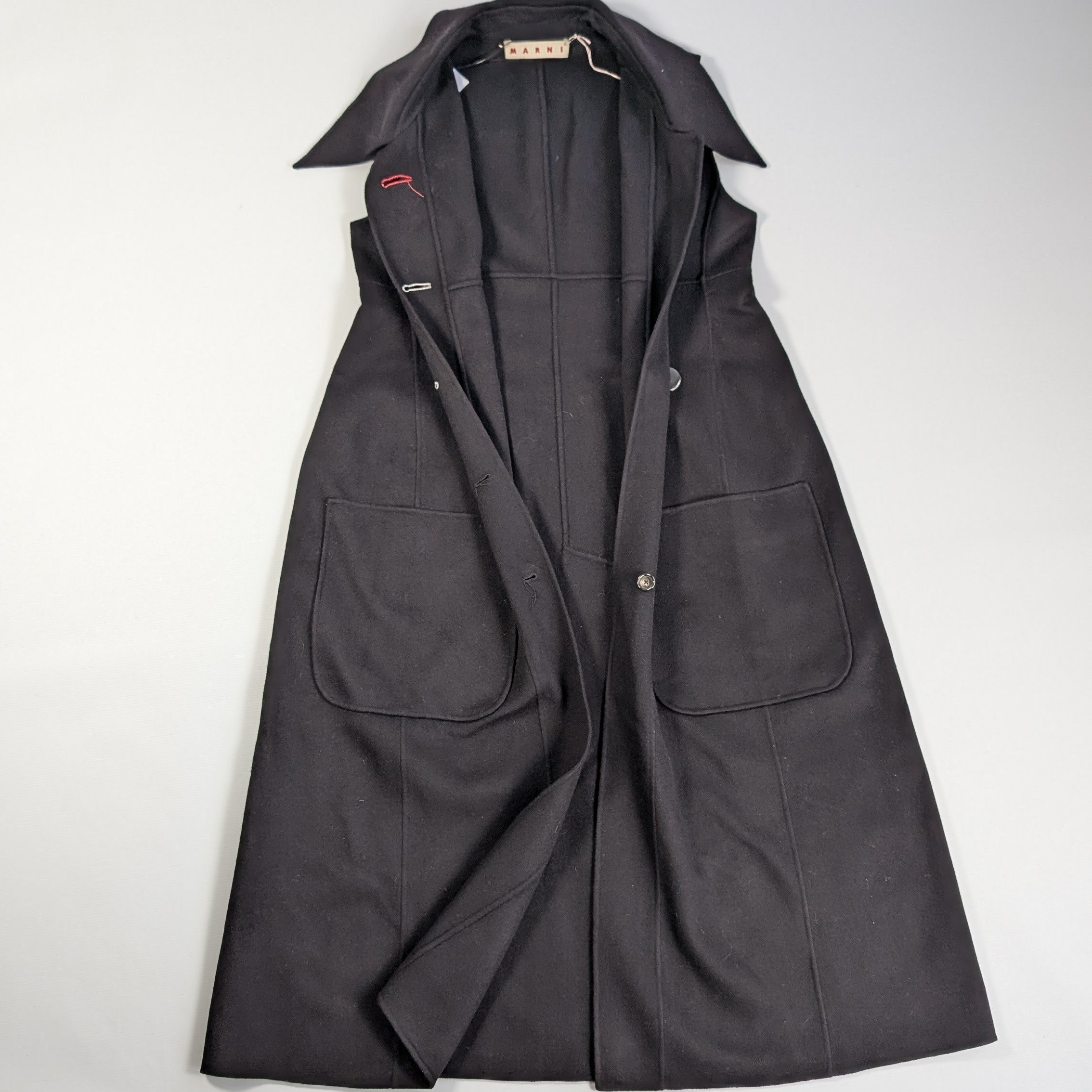 This sleek, sleeveless black dress by Marni features a structured design with oversized front pockets, button closure, and a tailored silhouette. Crafted from high-quality wool, it offers a refined, minimalist aesthetic perfect for layering.Brand: MarniSize: 44Details: checkeredLength: 132 cm Shoulder length: 43 cmBust width: 53 cmArm lenght: - cmCondition: Never worn, with tagCondition Details: One button is missingMain colour: BlackColours: -Material: WoolComes With: Tag