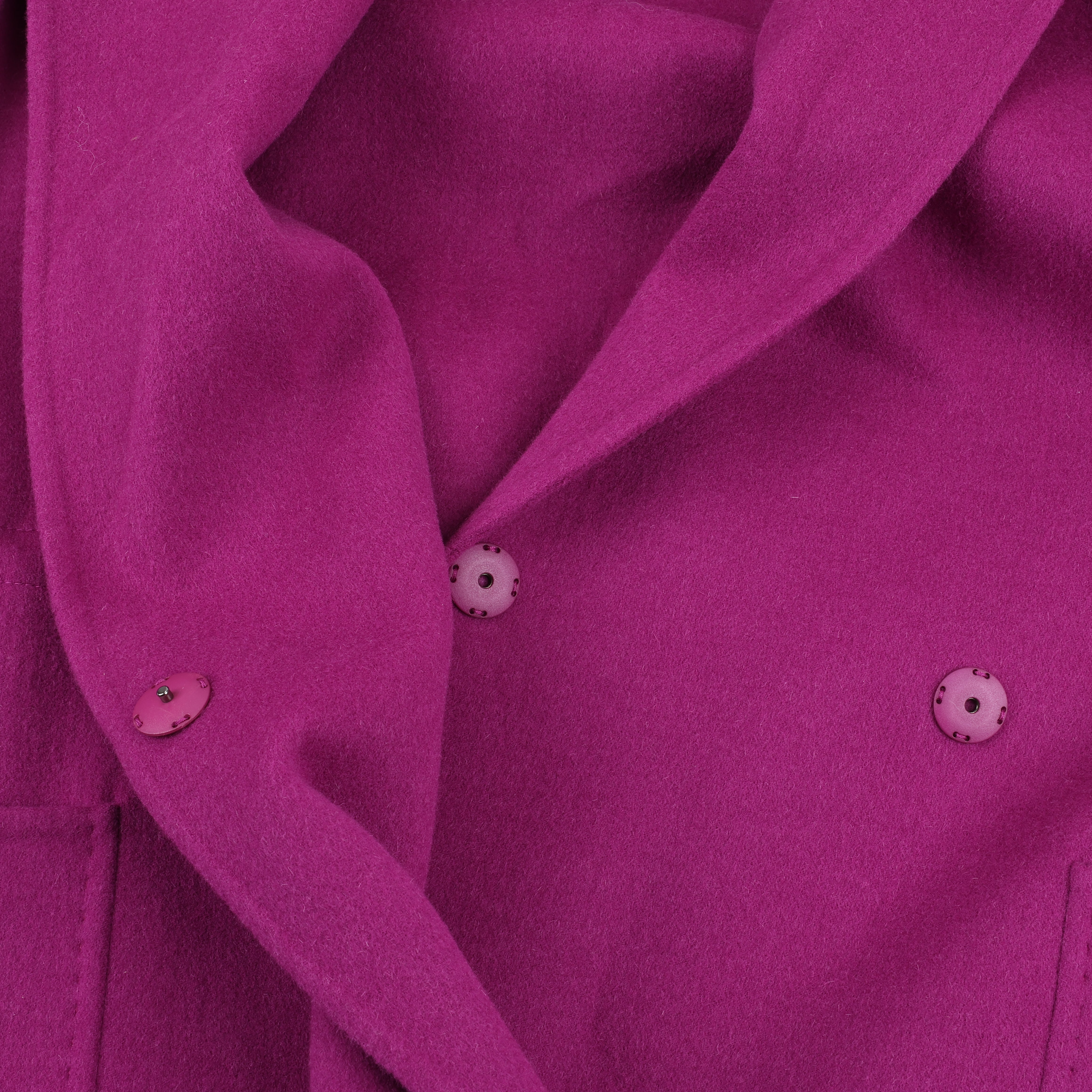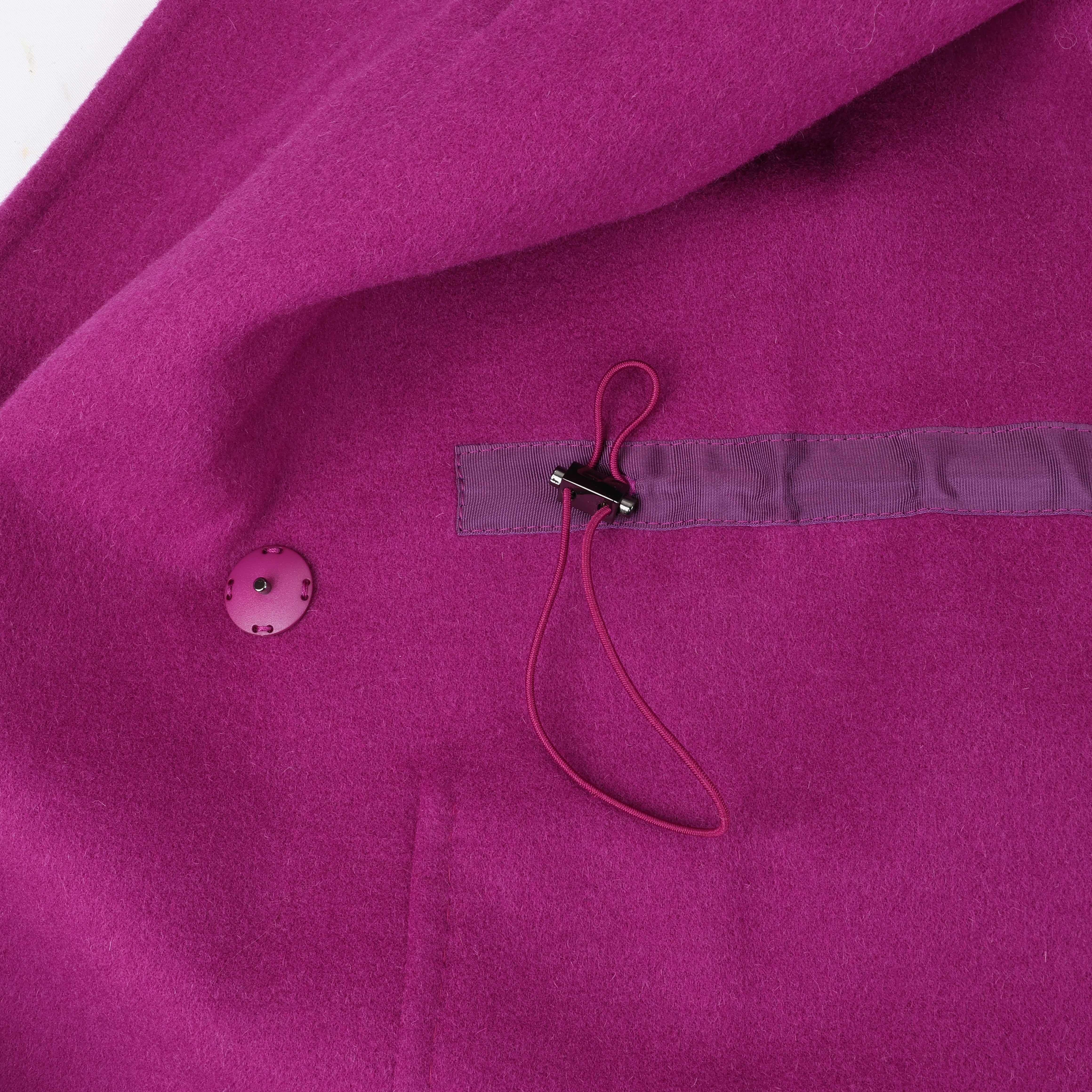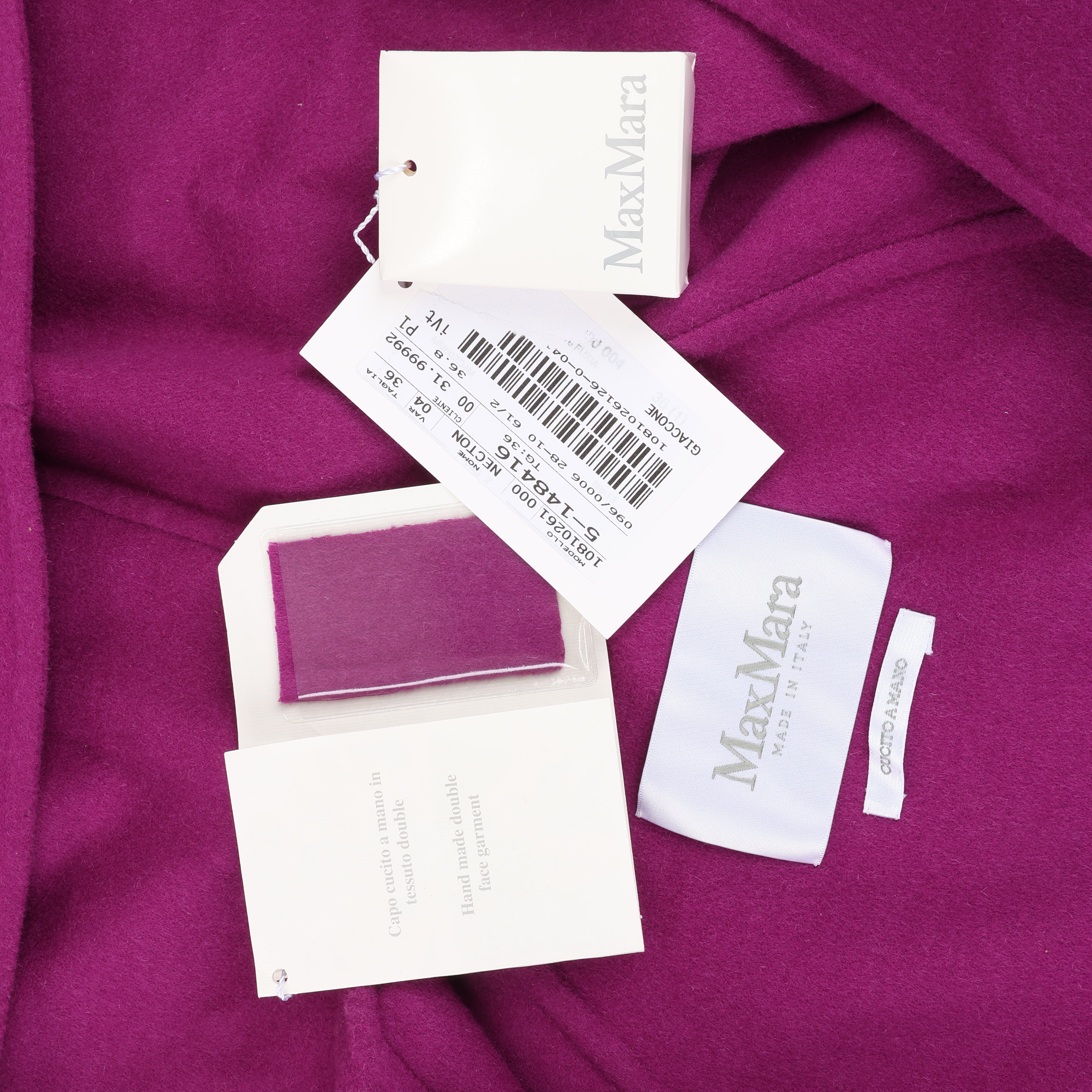 Make a bold statement with the Max Mara Necton coat in vibrant fuchsia. Crafted from a luxurious wool and angora blend, this handmade, double-faced garment features a chic oversized hood and spacious patch pockets. A timeless blend of elegance and modern flair.Brand: Max MaraSize: 34 FRDetails: Hooded with pocketsCondition: Never worn, with tagCondition Details: -Main colour: PurpleMaterial: WoolComes With: Tag