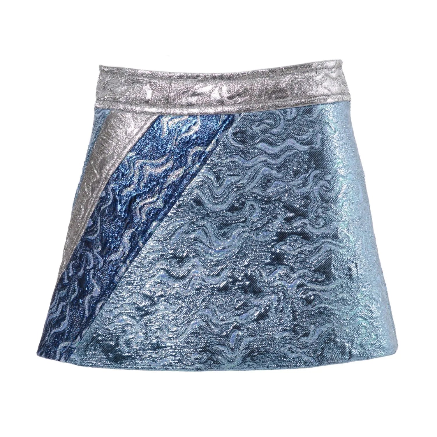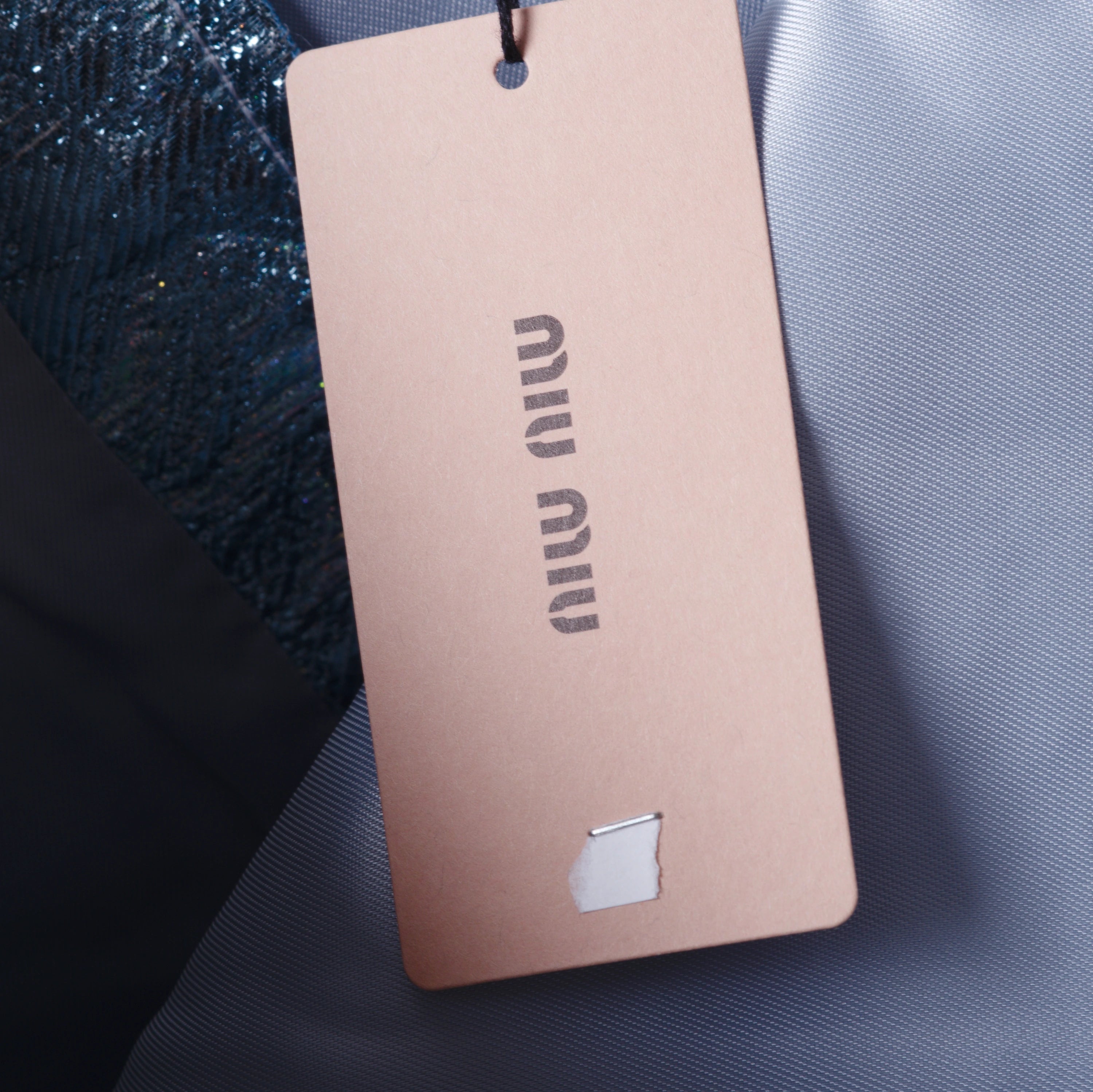 Original Miu Miu skirt from the Autumn/Winter 2014 collection. Designed in a blue tone with a slightly flared silhouette and regular waist. Features a decorative faux coin closure. A refined archive piece reflecting Miu Miu’s signature balance between femininity and modern design.
