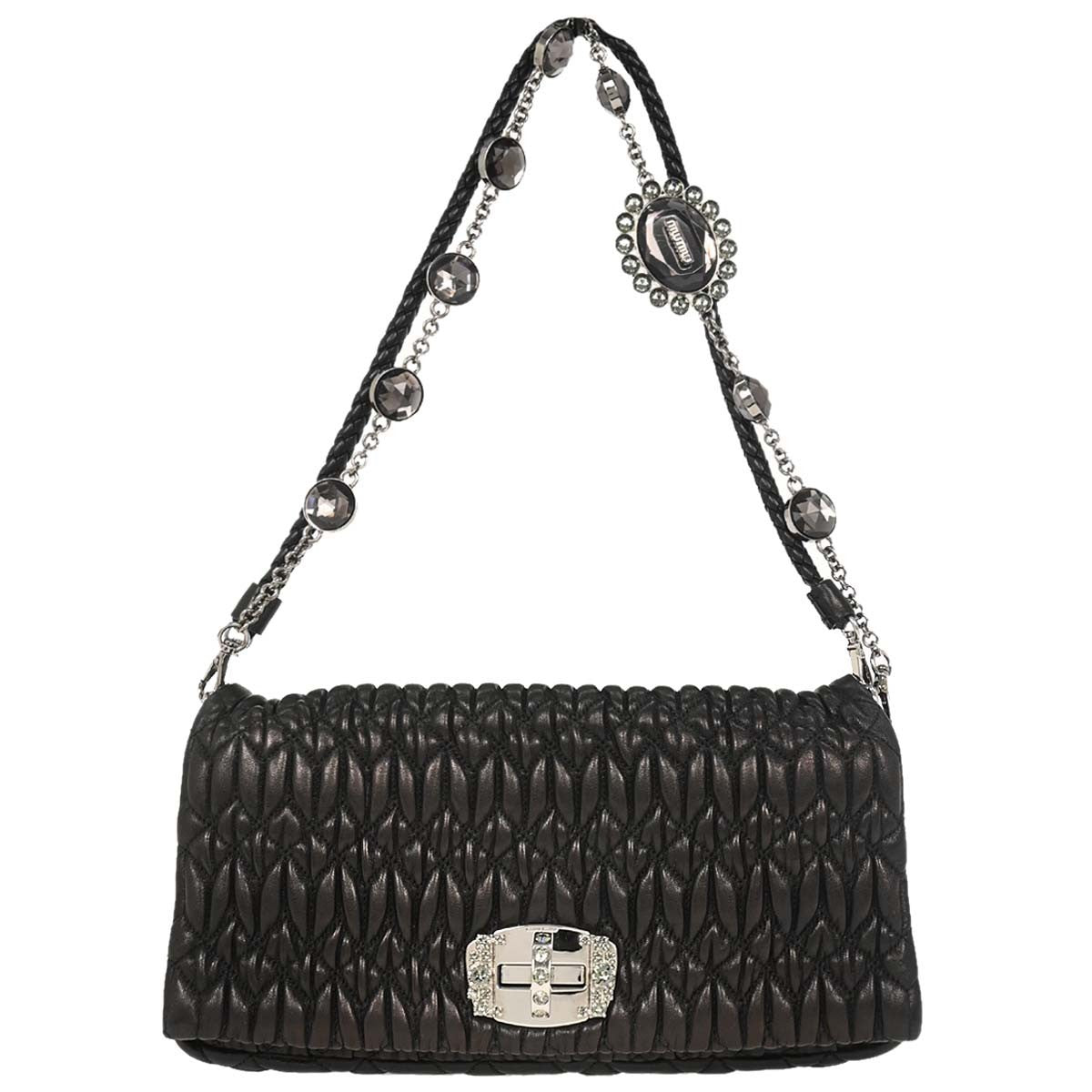 Miu Miu Crystal Full Flap Shoulder Bag Printed Calf Hair and Matelasse