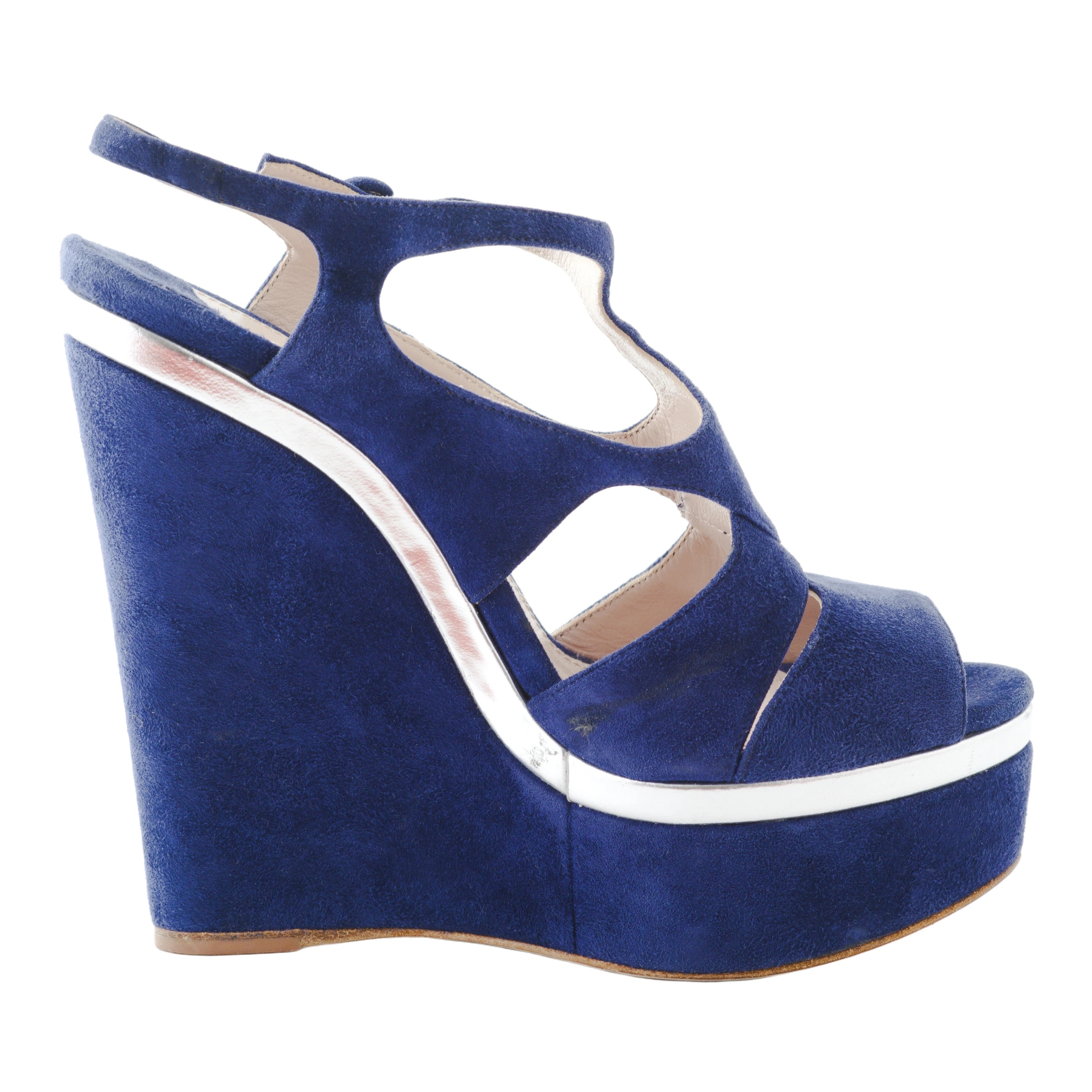 Miu Miu Cut-Out Wedge Platform Sandals In Blue Suede - '10s
