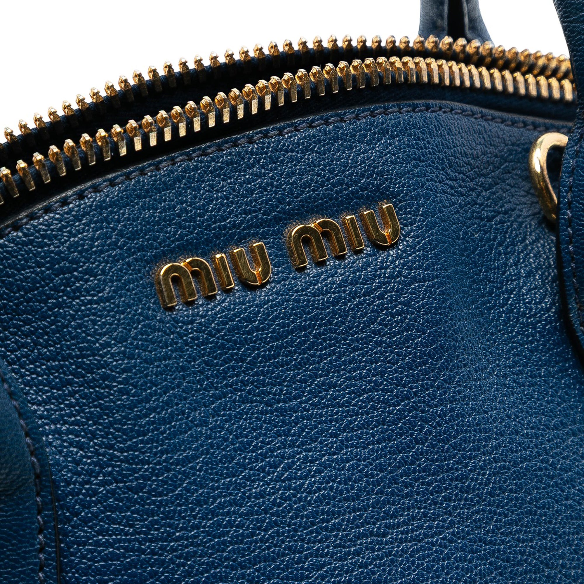 This satchel features a goatskin leather body, rolled leather handles, a detachable flat strap, a zip-around closure, and interior zip and slip pockets. Retail Price: 860.00