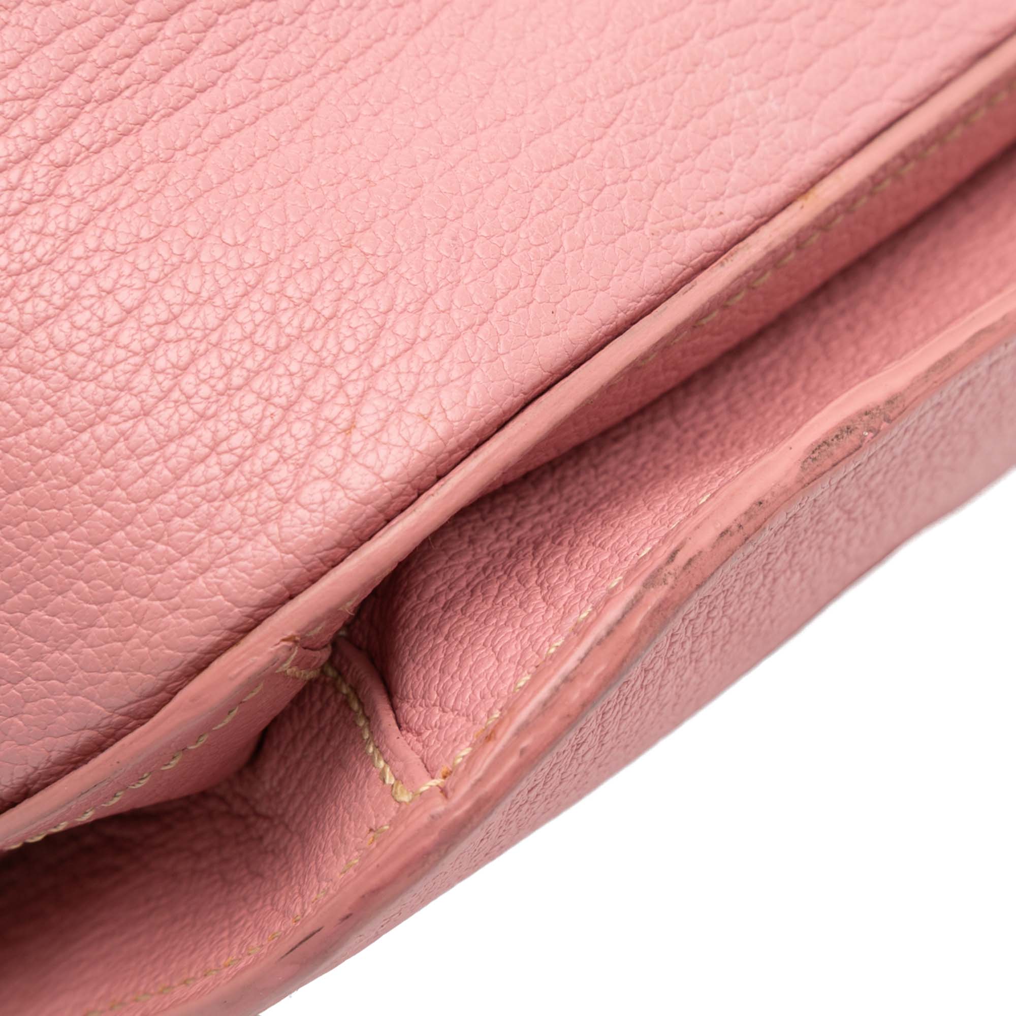 This satchel features a goatskin body, rolled leather handles, a detachable flat strap, a top strap with S-lock closure, and interior zip and slip pockets. Retail Price: 1695.00