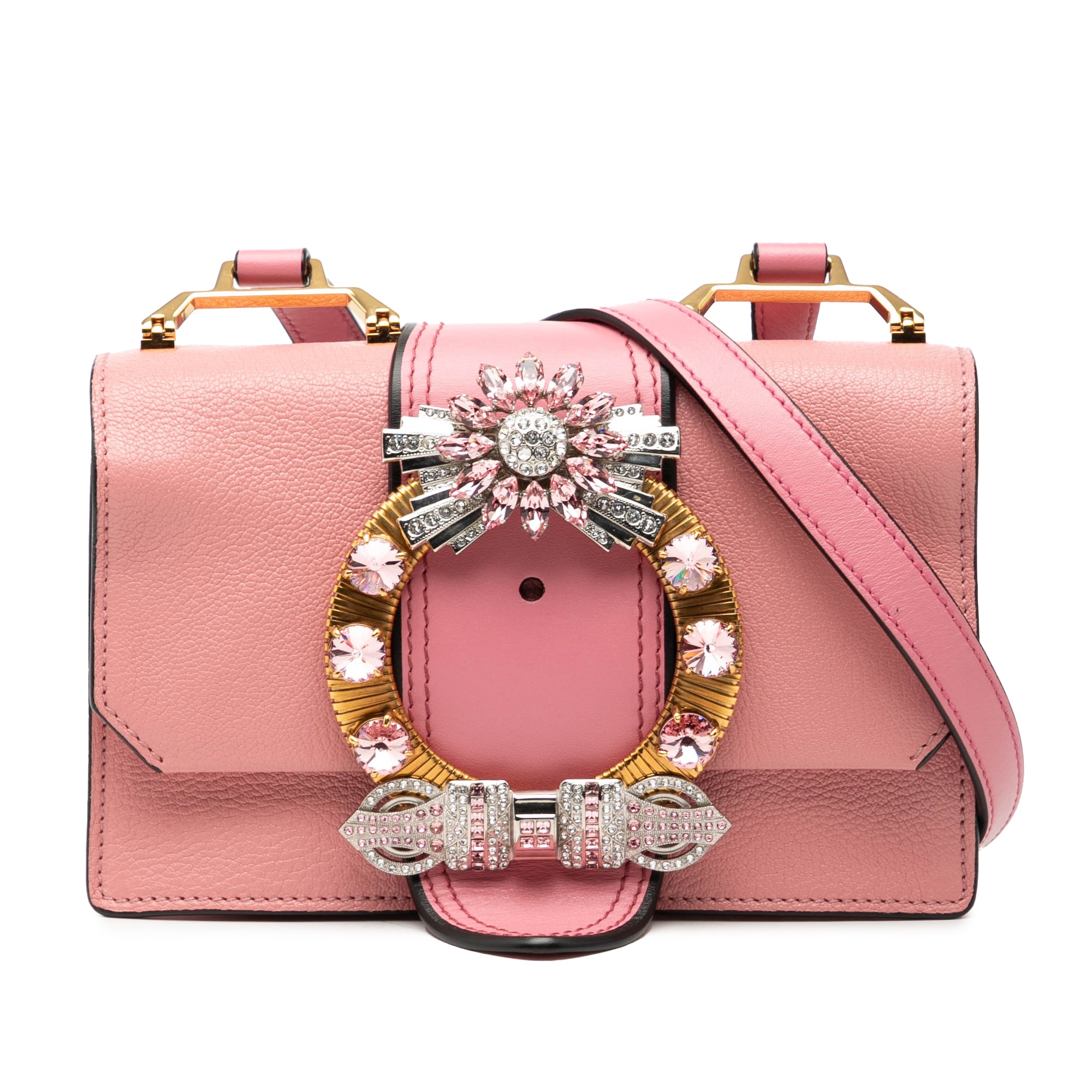 Miu Miu Goatskin Madras Soft Calf Crystal Embellished Crossbody