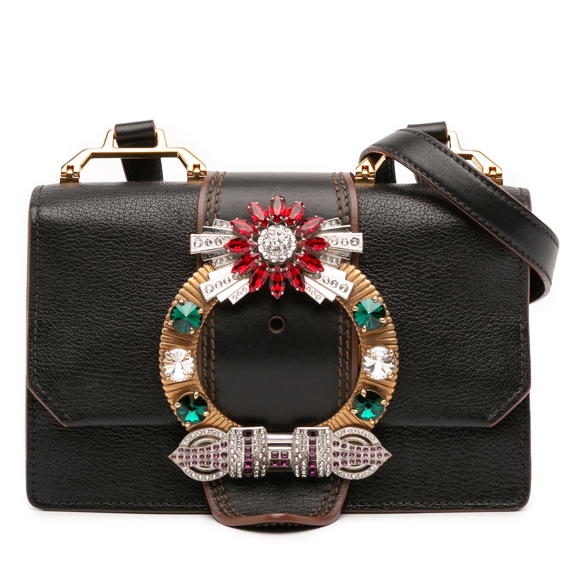 Miu Miu Goatskin Madras Soft Calf Crystal Embellished Crossbody