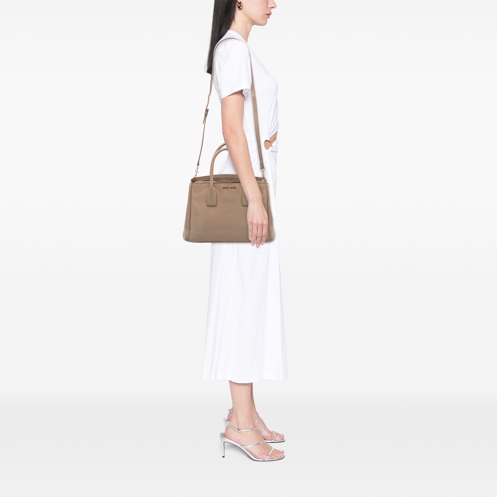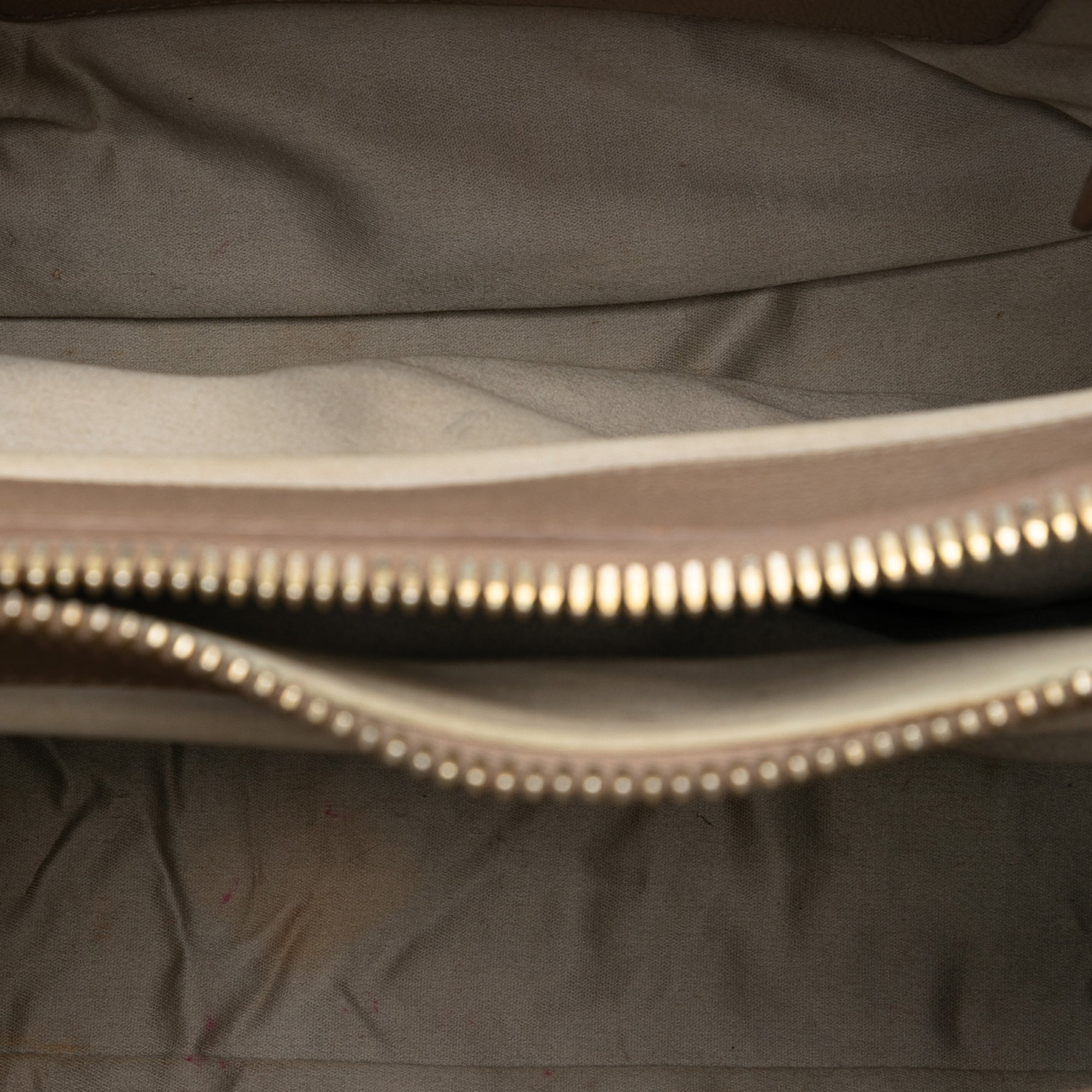 This satchel features a leather body, rolled leather handles, an adjustable and detachable flat leather strap, an open top, an interior zip compartment, and interior zip and slip pockets. Retail Price: 400.00