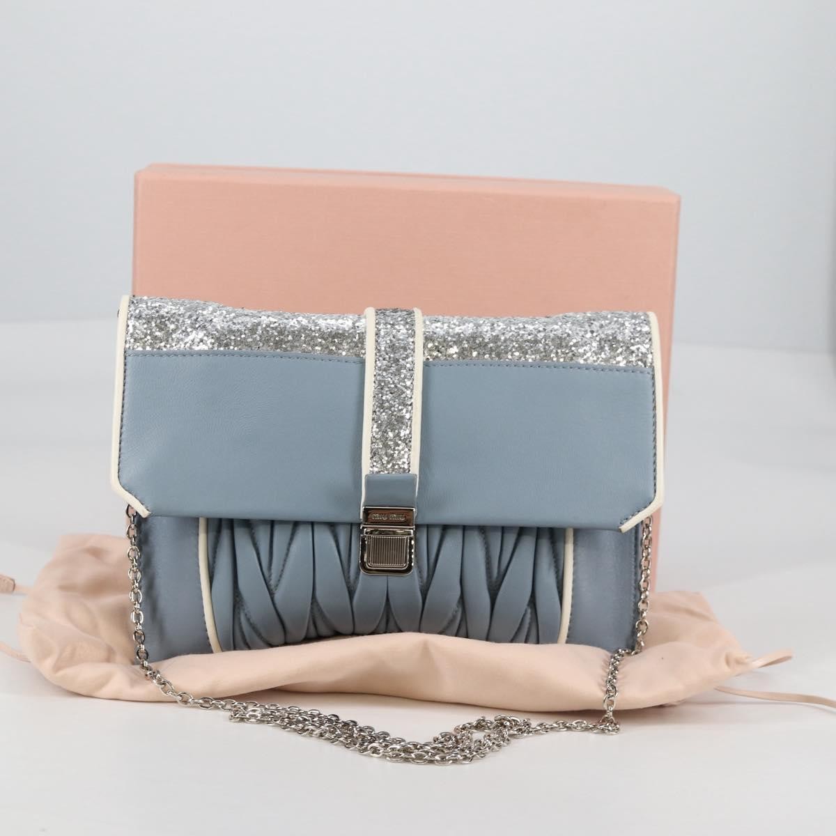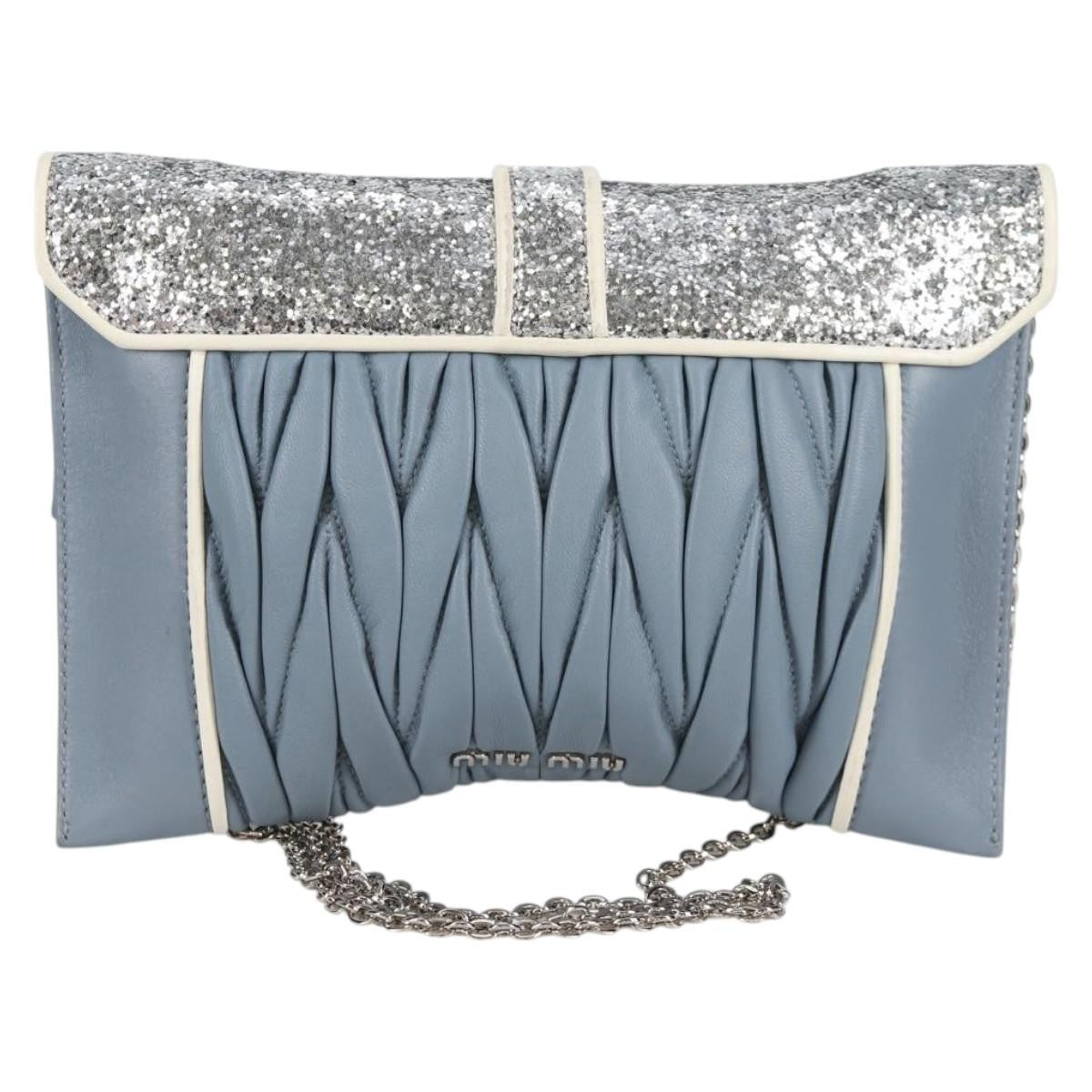 Miu Miu Madras Chain Clutch Matelasse Leather with Glitter