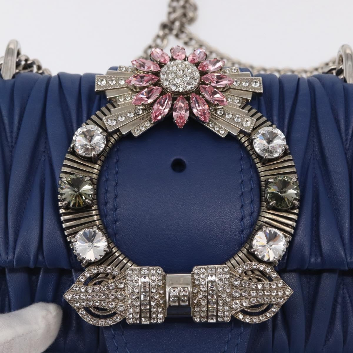Brand : Miu miu Model : Madras crystal buckle shoulder bag Style : Matelasse leather Dimensions (W x H x D) : 20cm x 13cm x 3cm Serial number : 53 Inclusions : Dust bag,guarantee card