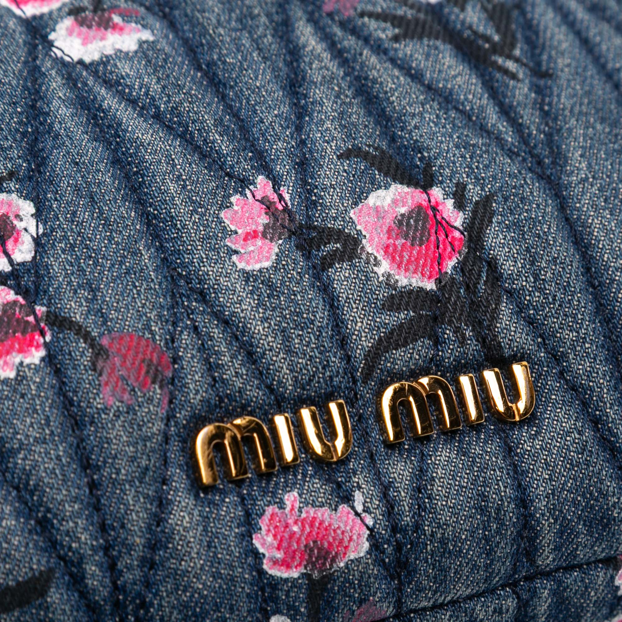 Miu Miu Matelasse Embroidered Denim Shoulder Bag