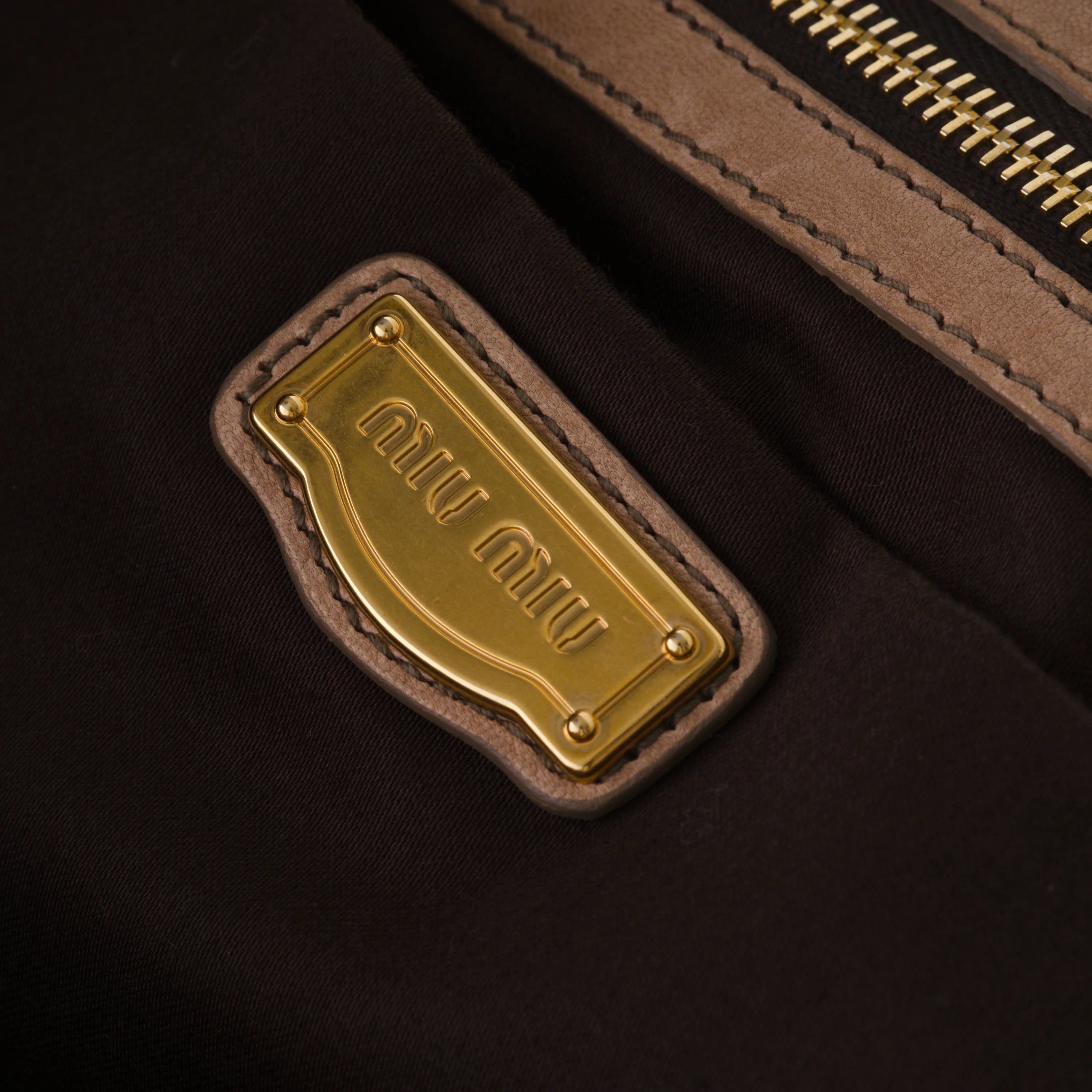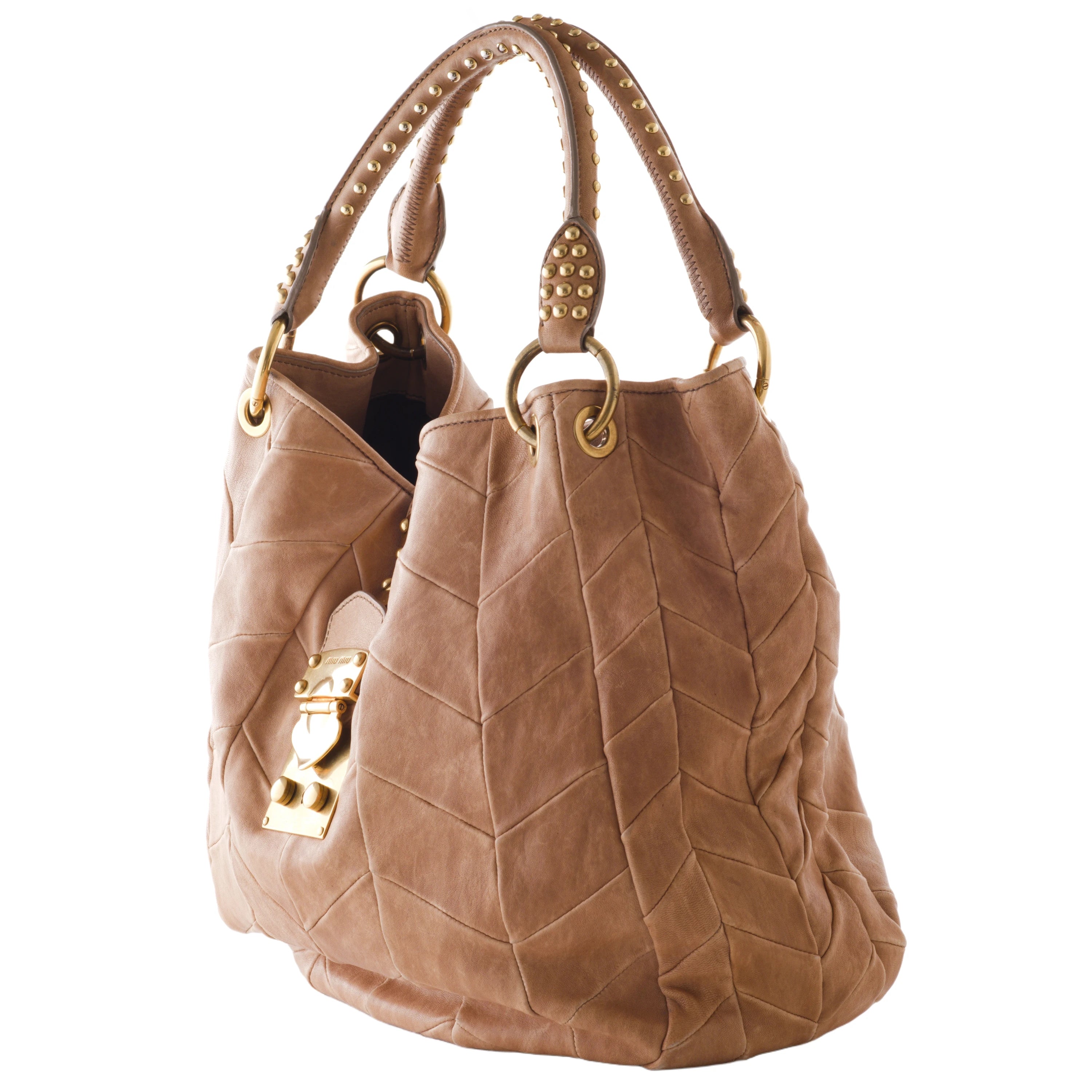 This Miu Miu Matelassé Hobo Bag is crafted from soft quilted leather and features a geometric pattern that enhances the natural texture of the material.