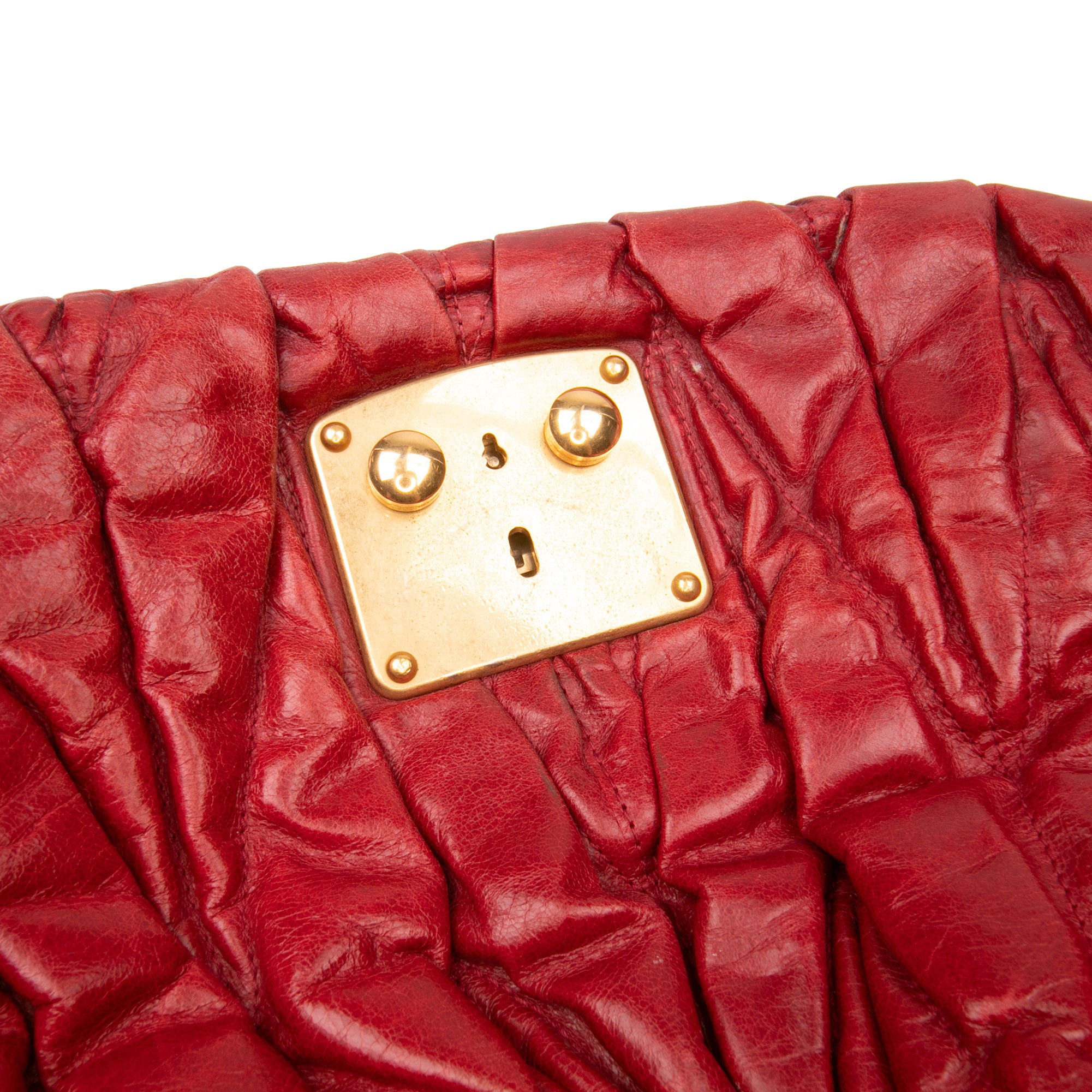 The Coffer features a pleated nappa leather body, a braided leather handle, a detachable flat leather strap, a front flap with push lock closure, an exterior back zip pocket, and interior zip and slip pockets. Retail Price: 2060.00