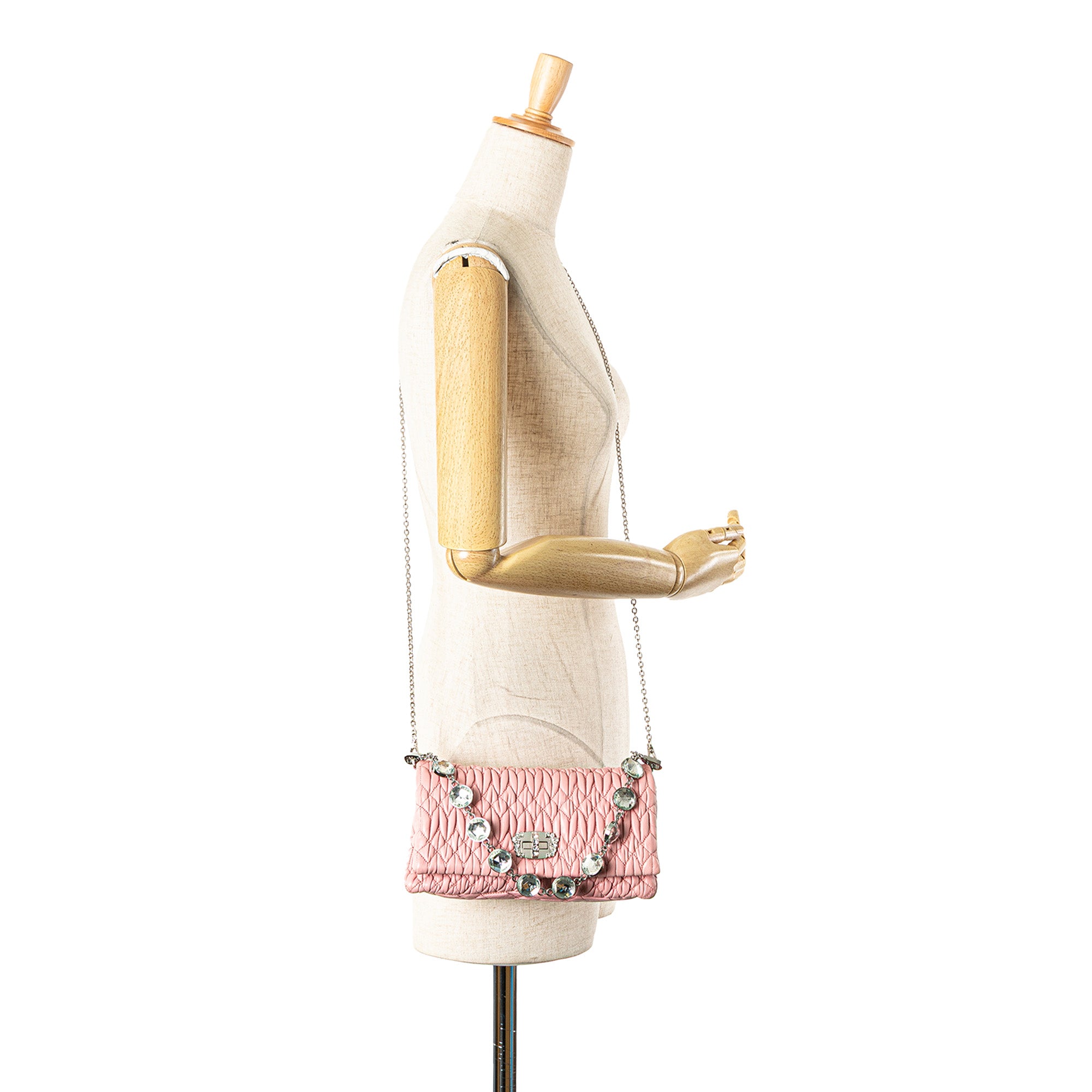 Miu Miu Matelasse Nappa Crystal Chain Satchel