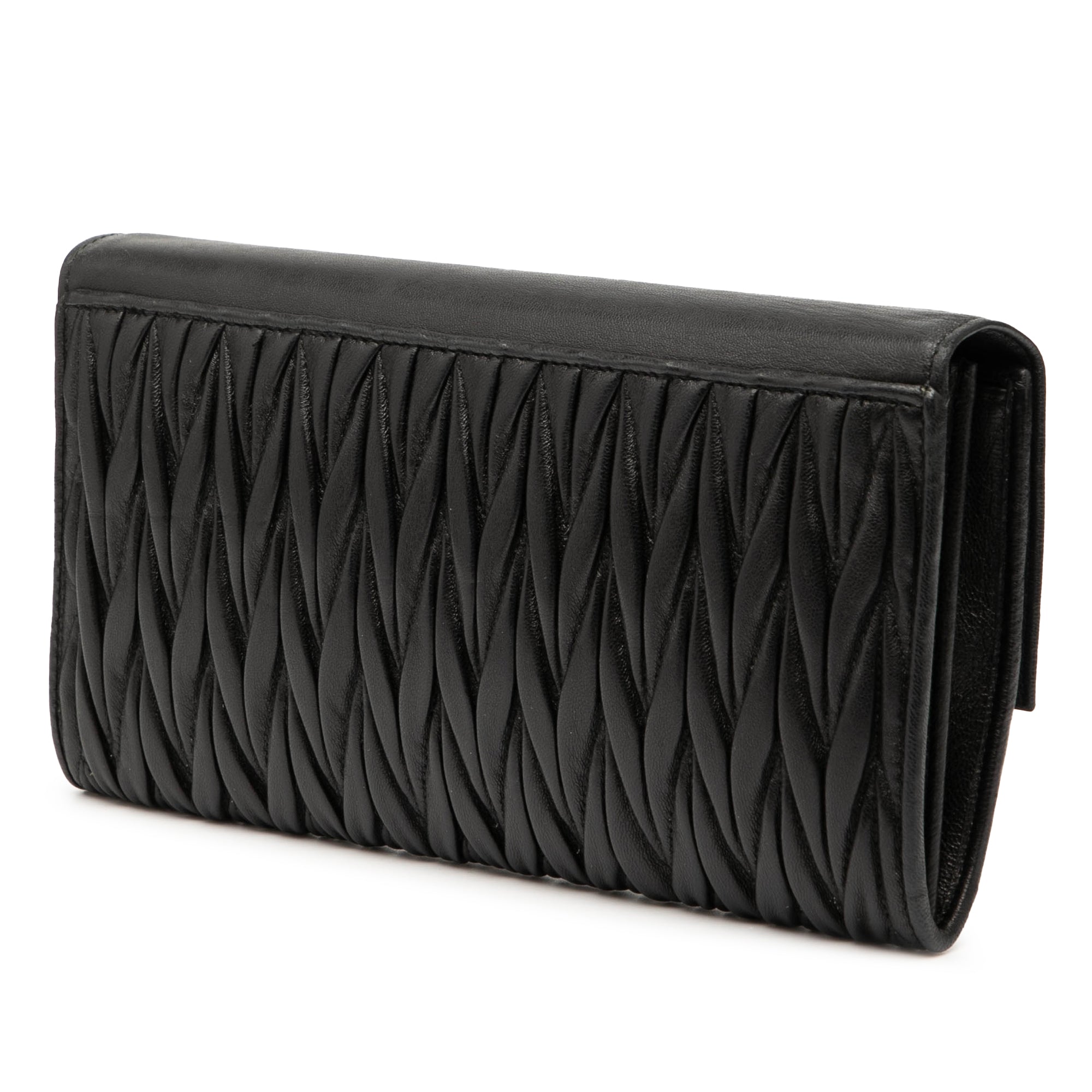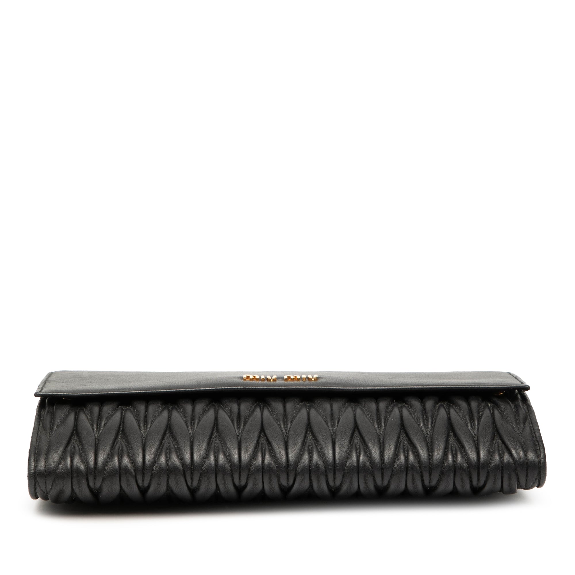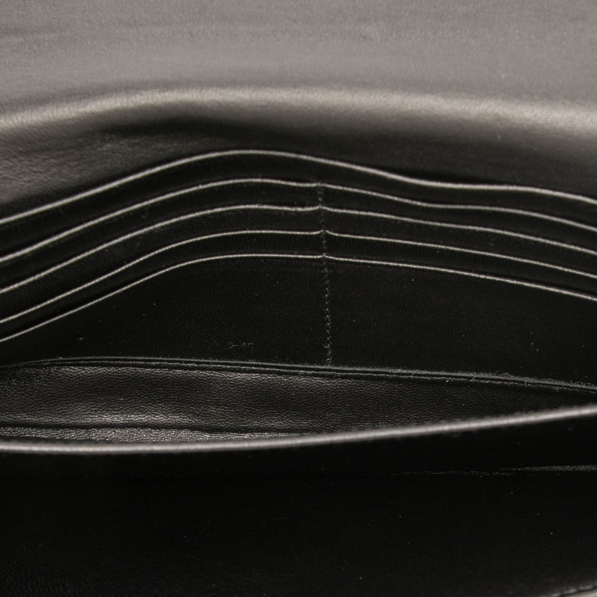 This clutch bag features a gathered nappa leather body, a front flap with magnetic snap closure, and interior slip pockets. Retail Price: 400.00