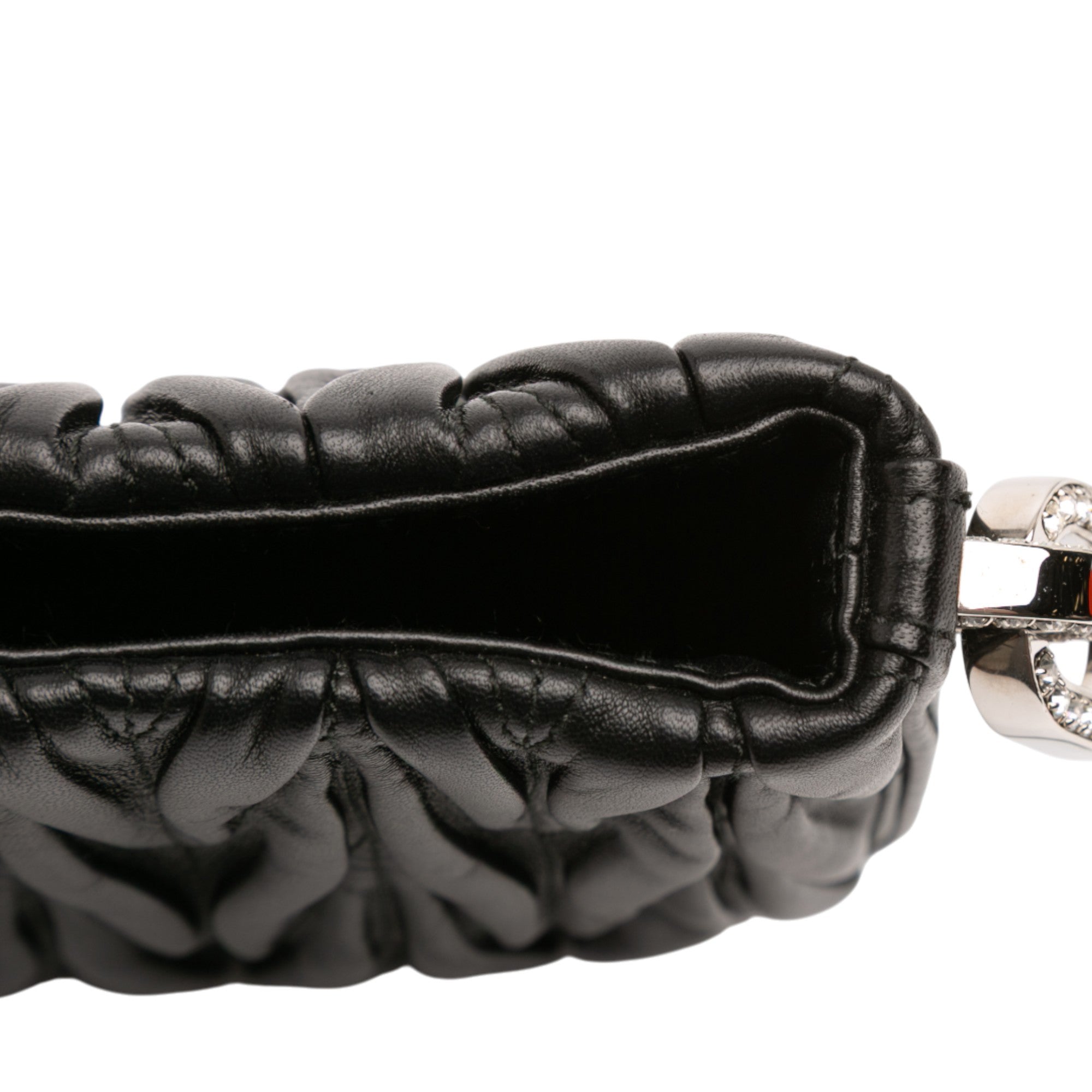 This shoulder bag features a quilted nappa leather body, a rolled meatal strap, an open top with magnetic snap closure, and an interior slip pocket. Inclusion: Dust bag. Retail Price: 3150.00