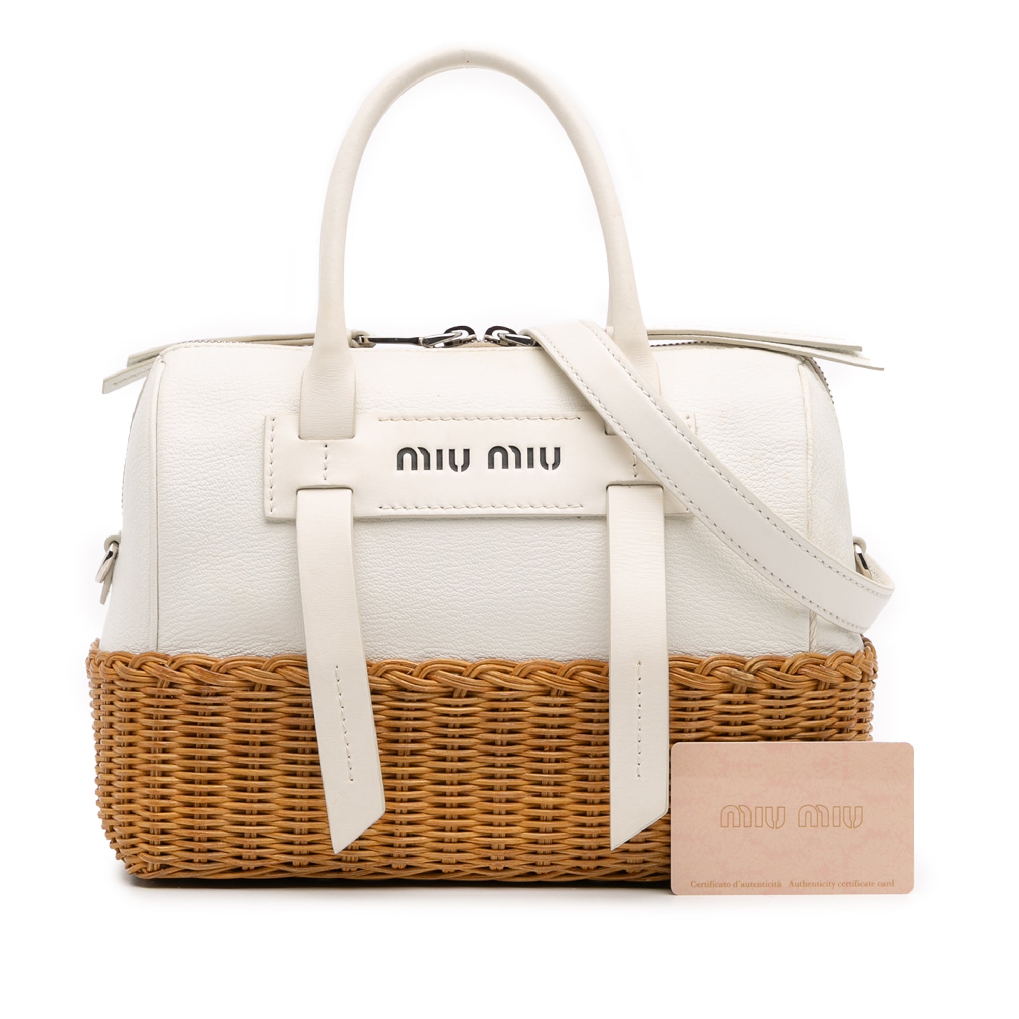 Miu Miu Wicker Trimmed Leather Top Handle Bag
