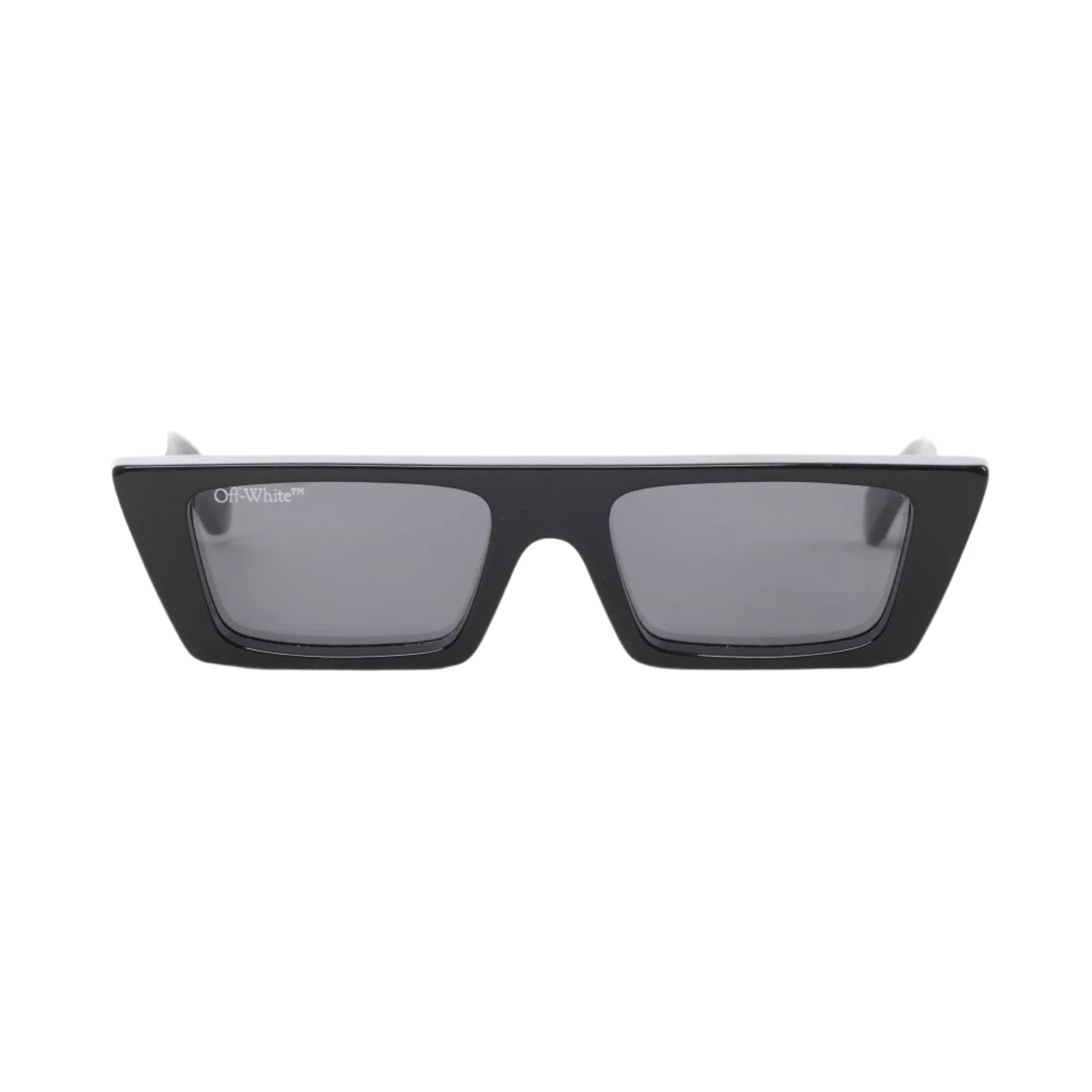 Off-White Manchester Sunglasses OERI010 in black acetate, featuring a sleek rectangular frame with angular edges and dark lenses. A modern, edgy accessory that perfectly embodies Off-White’s urban-luxe aesthetic.