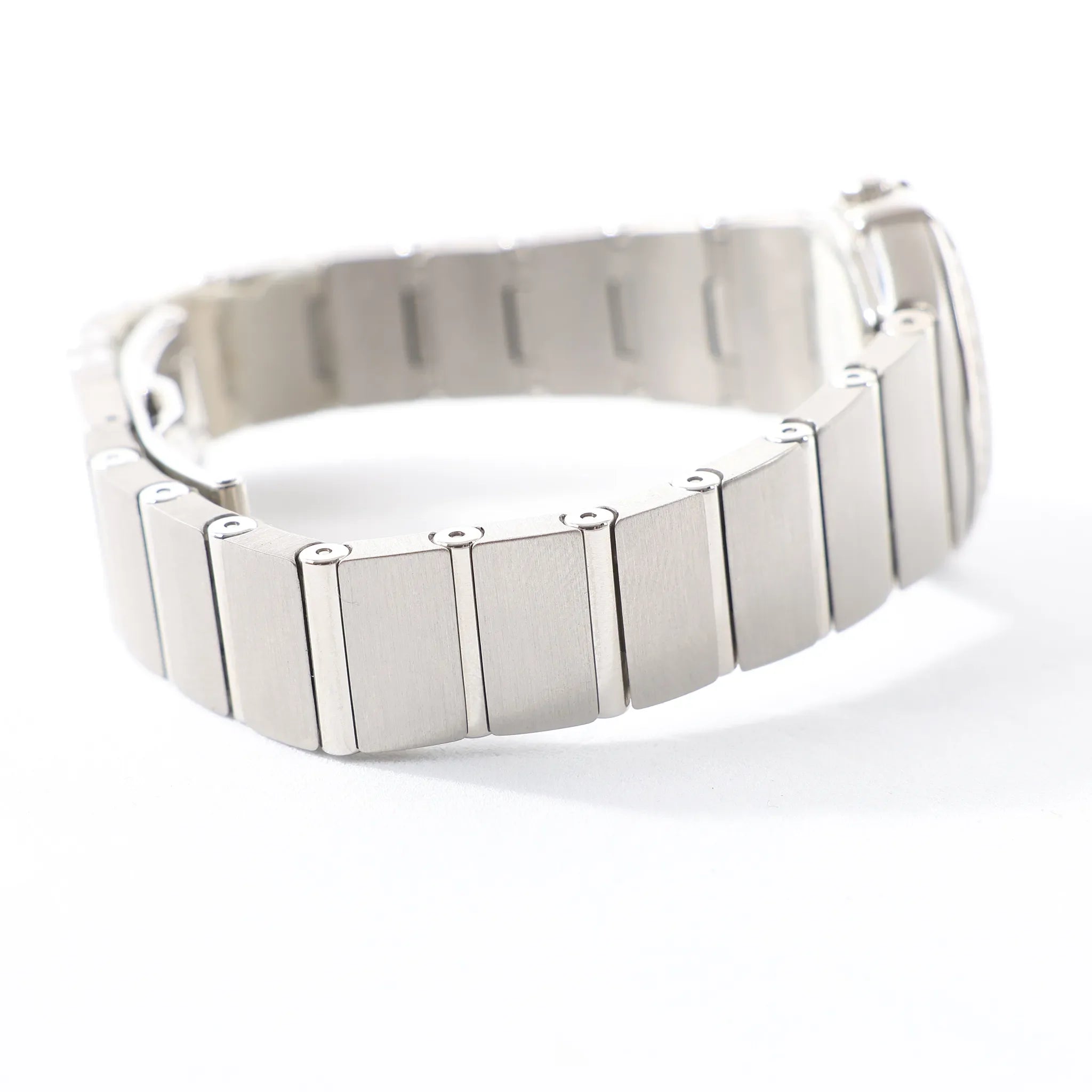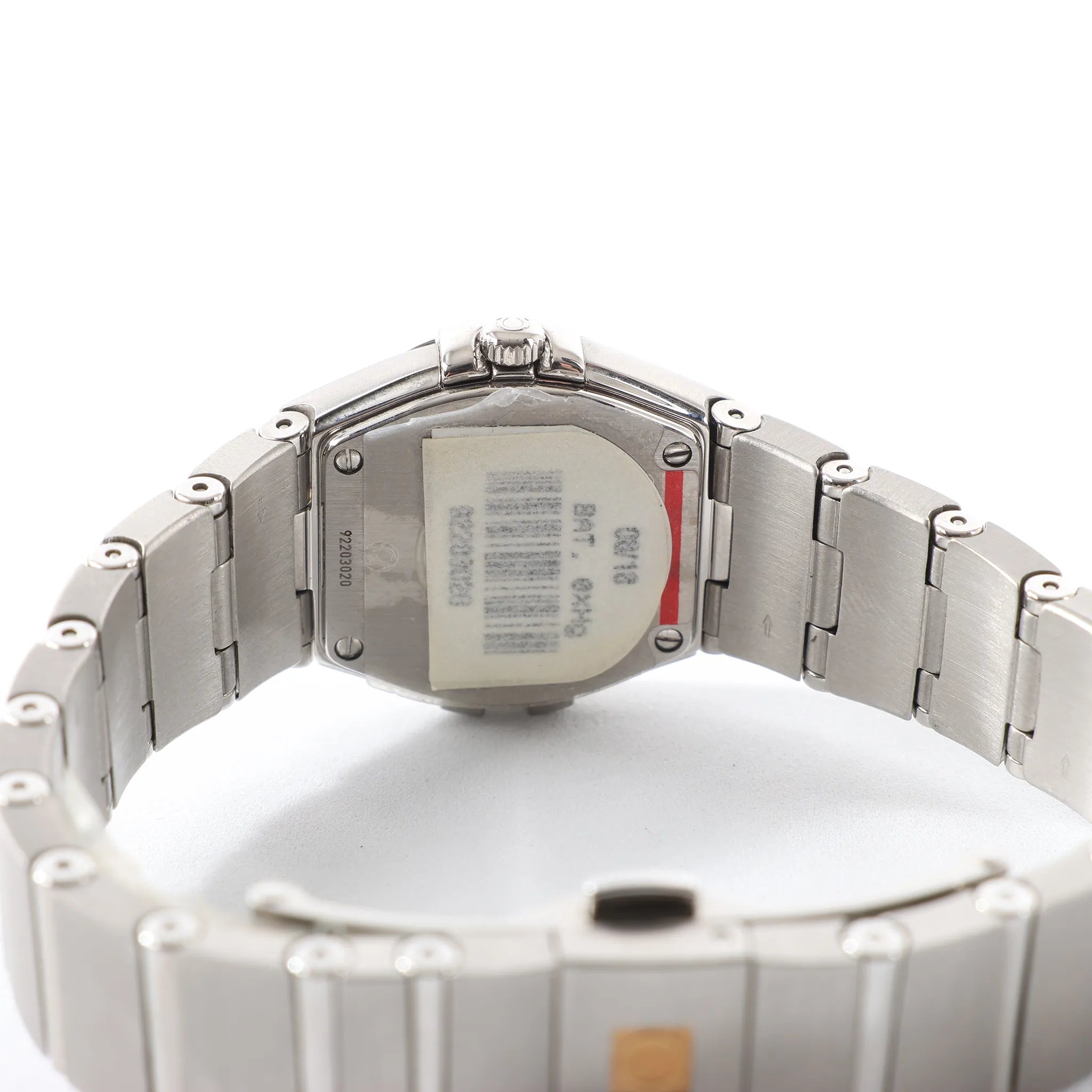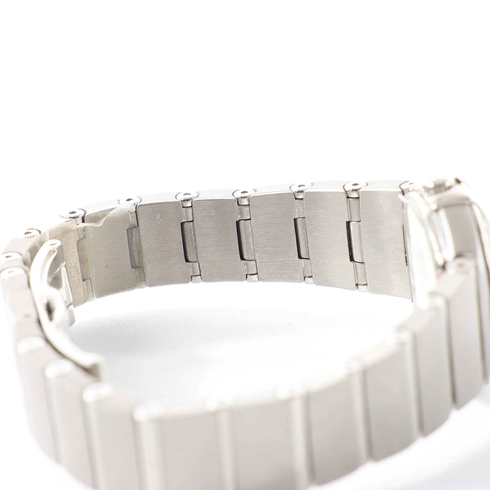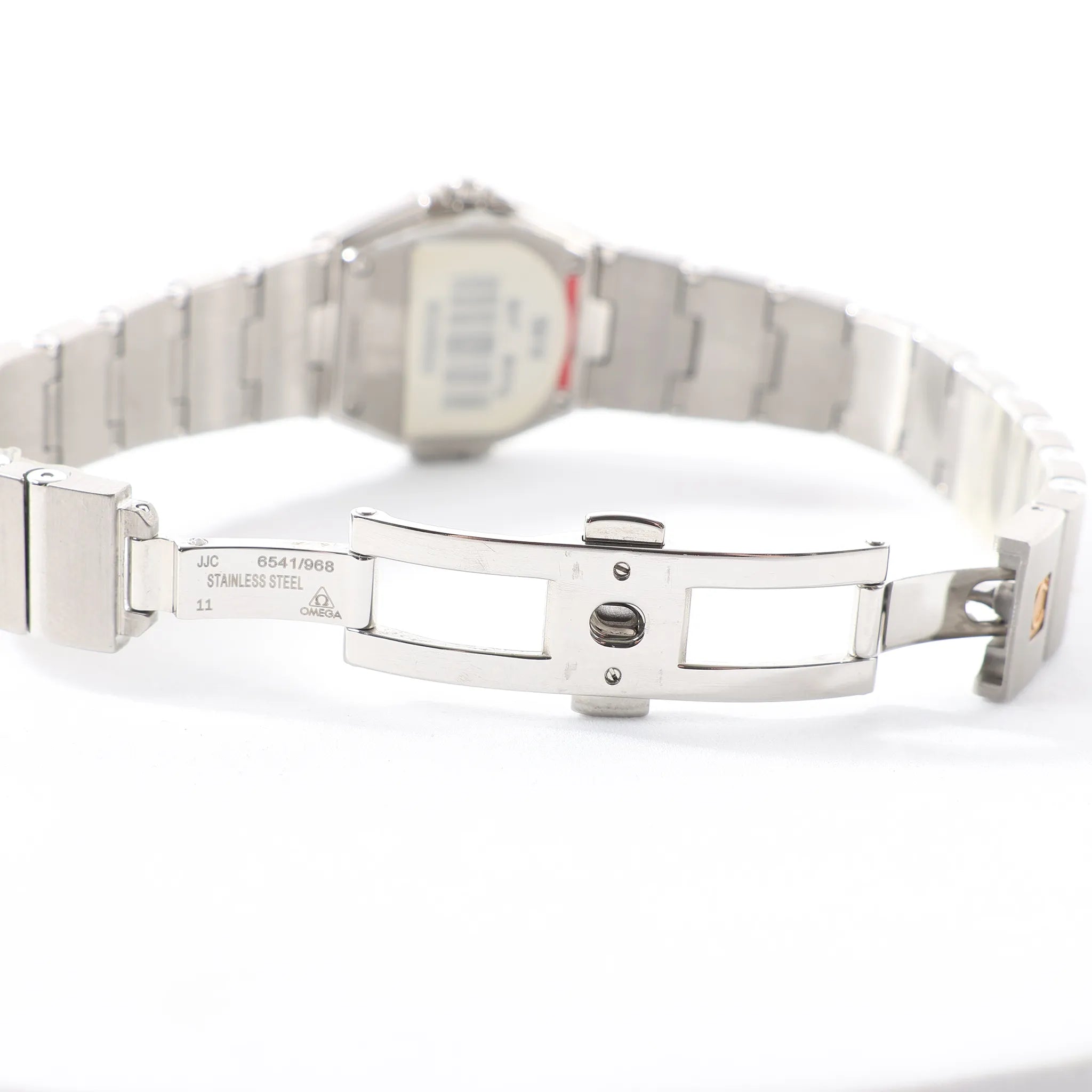 Brand: OmegaModel: ConstellationReference: 1561.61Serial No.: 59423307Condition: ExcellentCondition Details: Excellent overall condition with almost no visible signs of use. Barely noticeable hairline marks may be present, but they are not visible to the naked eye. Please see photos for details. Dial Colour: BlackCase Material: SteelStrap Colour: SilverStrap material: SteelMovement: QuartzClosure: Fold claspFace Diameter: 24 mmApprox. max circumference: 16.5 cmComes With: Box, certificate, brand book, Service card