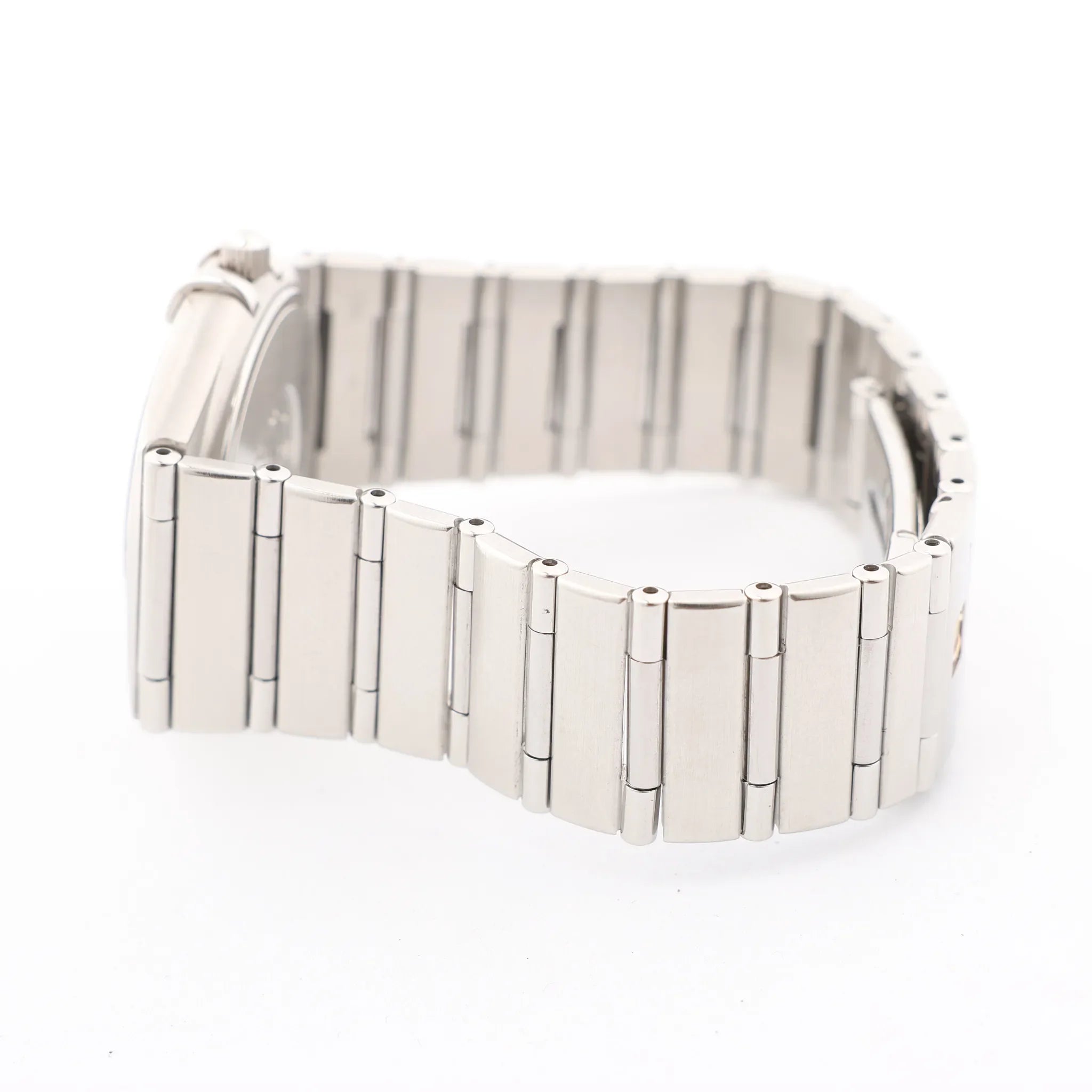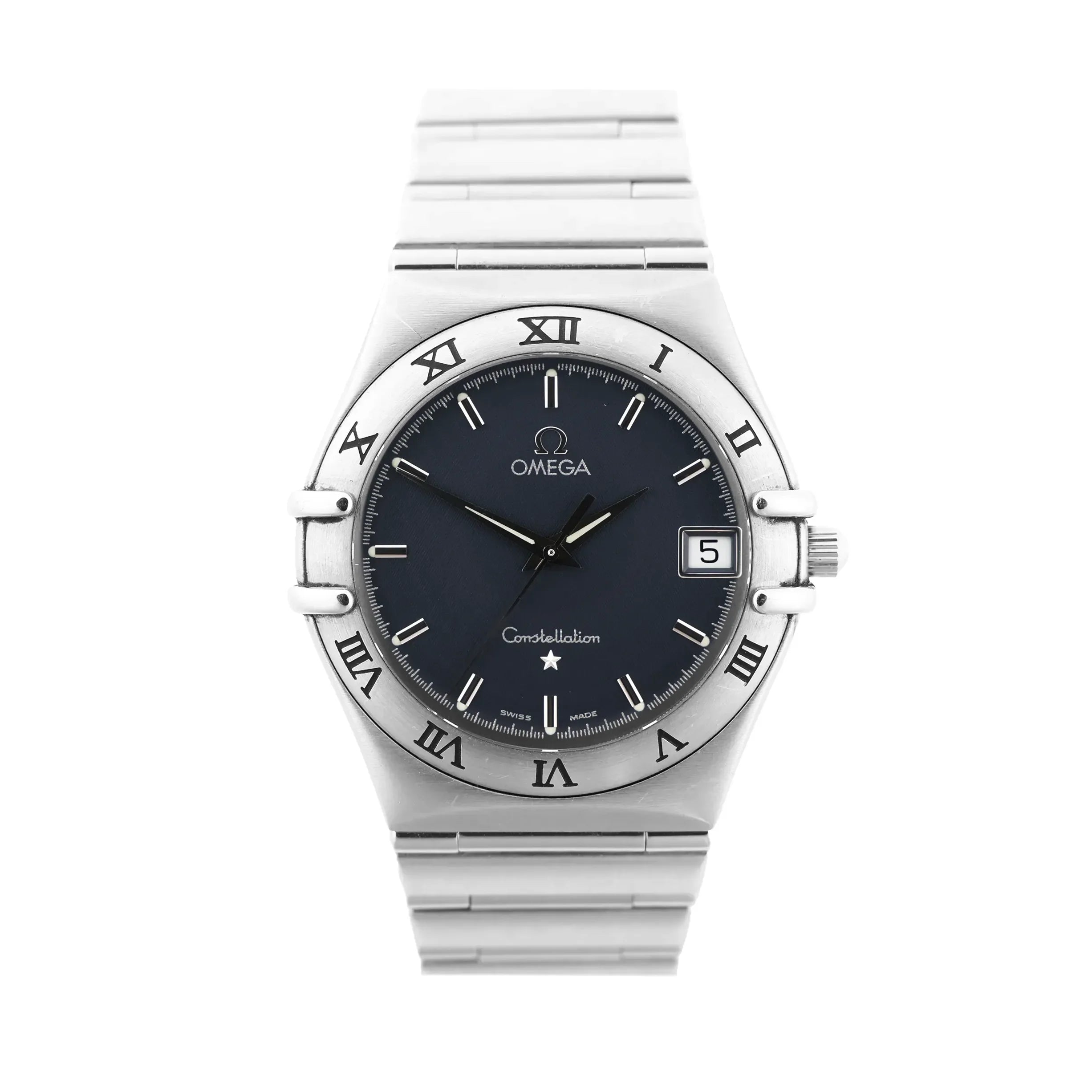 The Omega Constellation 1512.40 is a classic stainless steel quartz watch featuring a sleek gray dial, Roman numeral bezel, and date display. Precision and prestige meet in this timeless Swiss-made model, ref. 58341032.