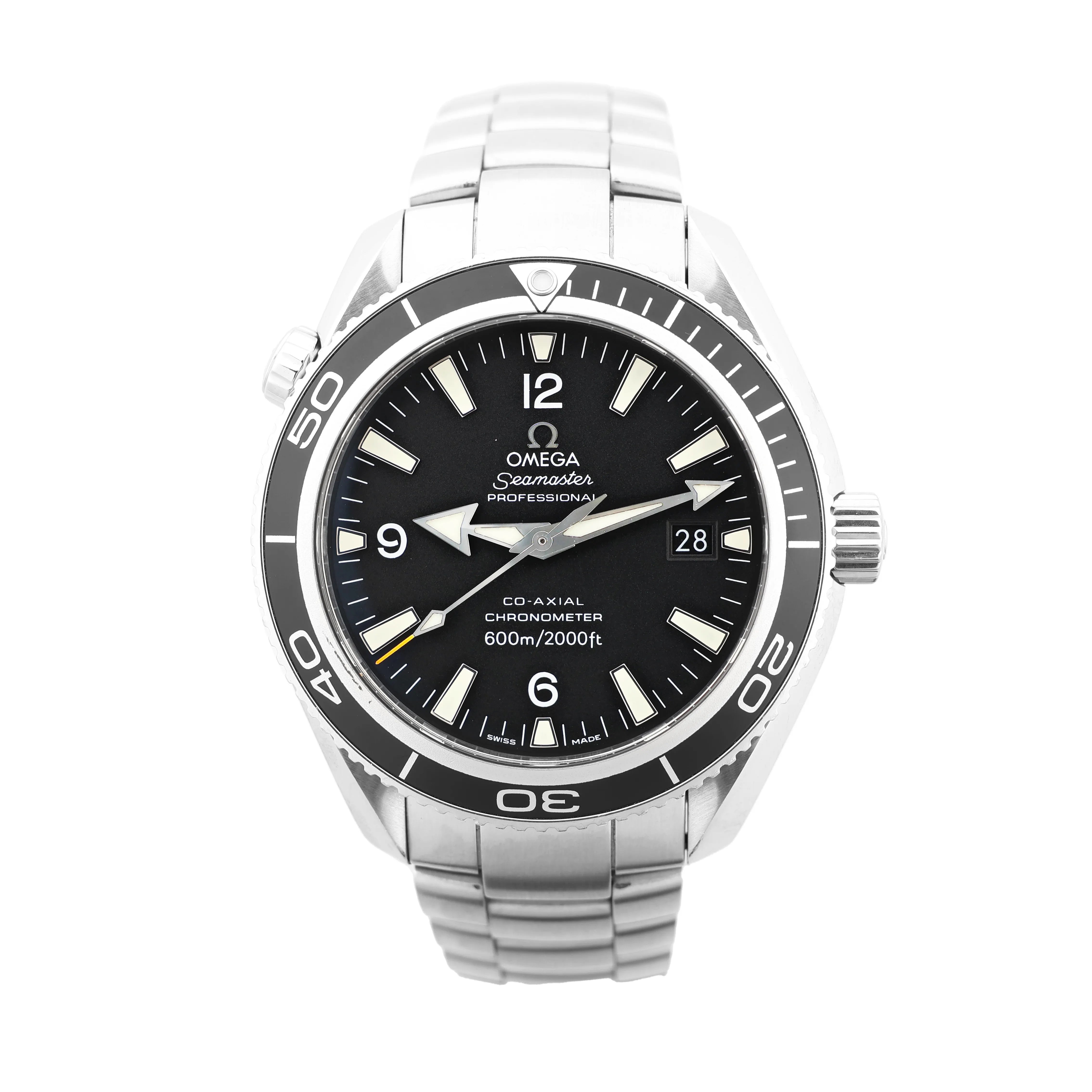 The Omega Seamaster Planet Ocean 2201.50 Automatic Watch delivers power and precision with its stainless steel design and black dial. Built for professionals, it features a unidirectional bezel, 600m water resistance, and Co-Axial Chronometer performance.