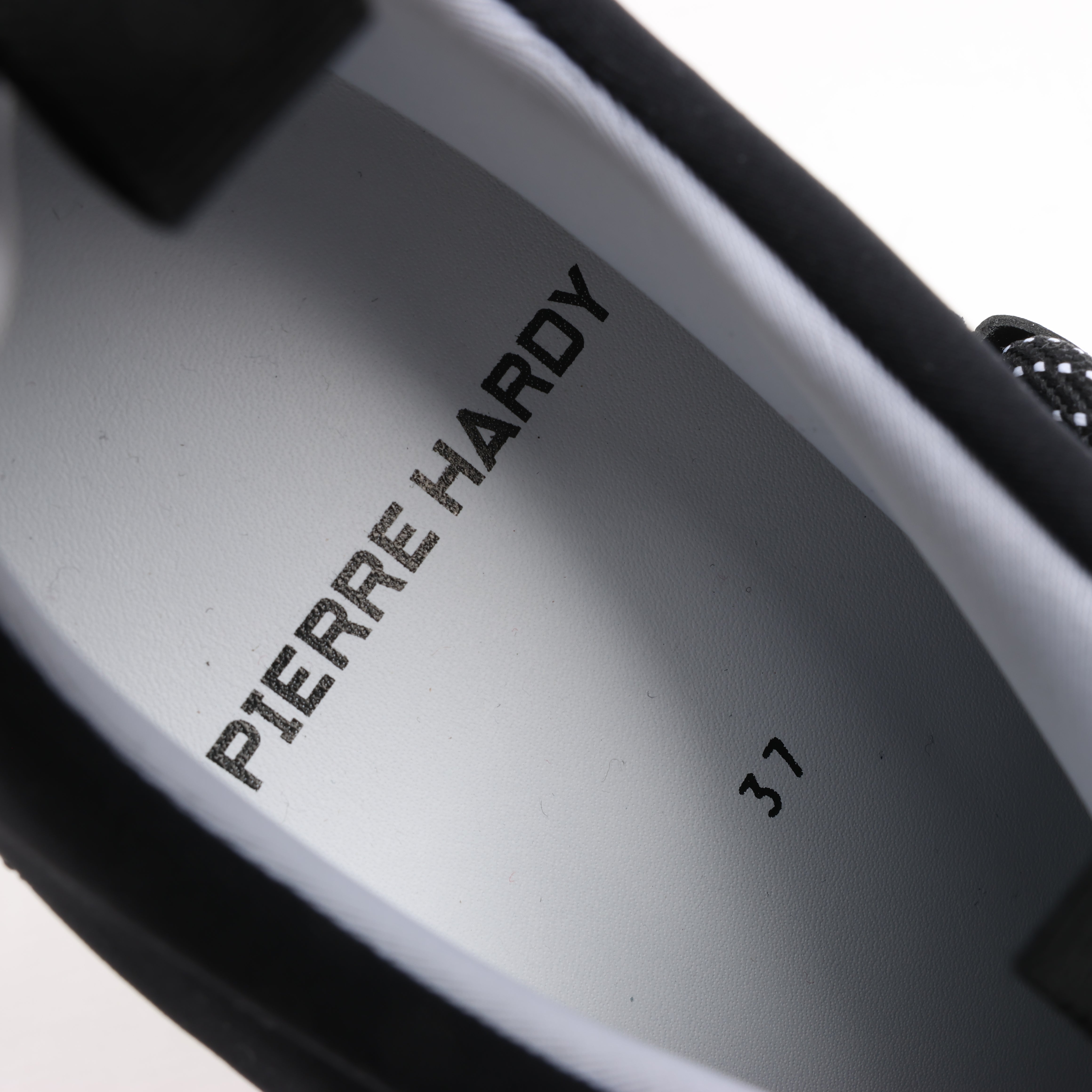 Brand: Pierre HardySize: EU 37Platform: 4 cmCondition: Never wornCondition Details: -Main Colour: BlackColours: Navy, WhiteMain material: LeatherMaterials: FabricProduct Code: -Manufactured In: -Comes With: Box, dustbag, extra string, paper