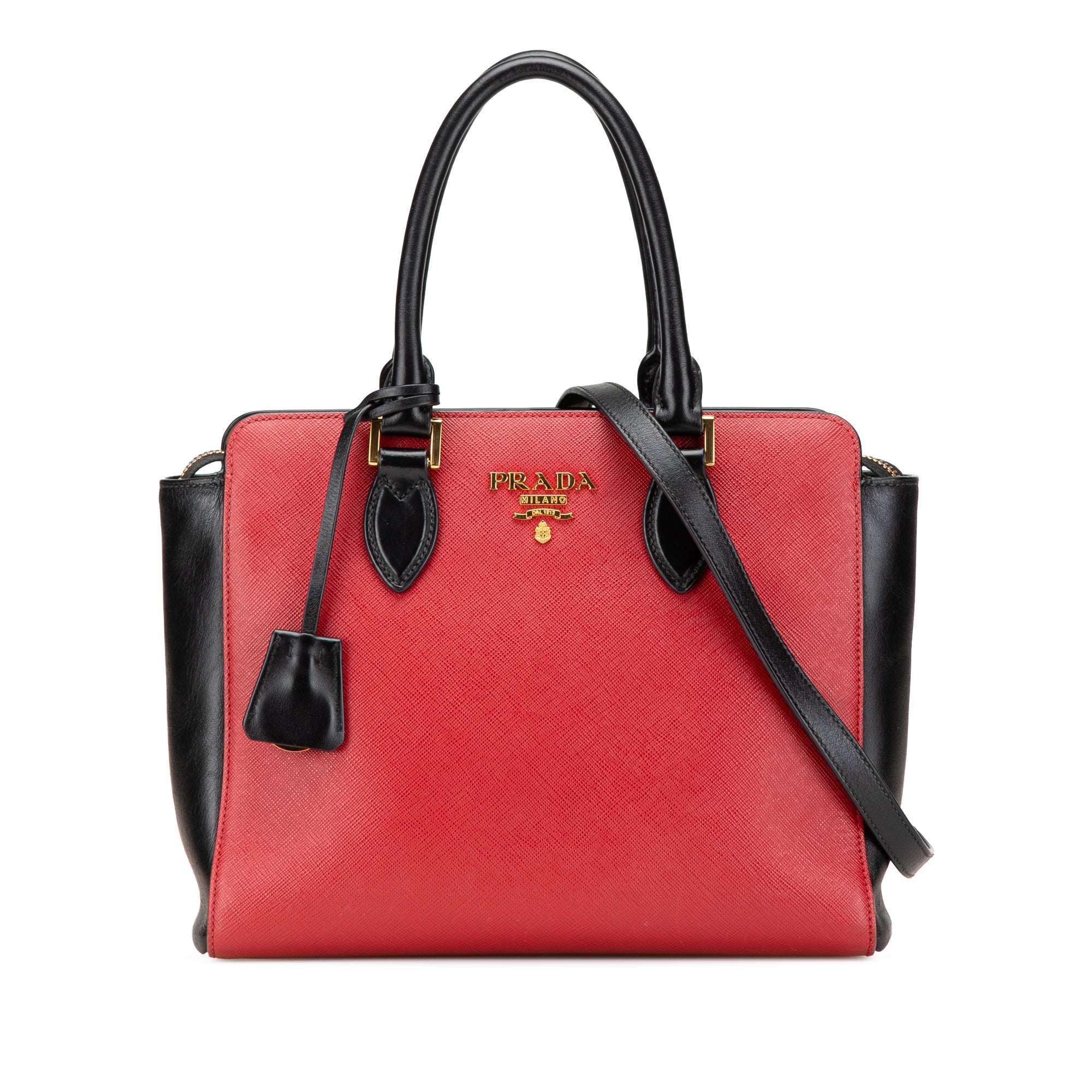 Prada Bicolor Soft Calf Trimmed Saffiano Satchel