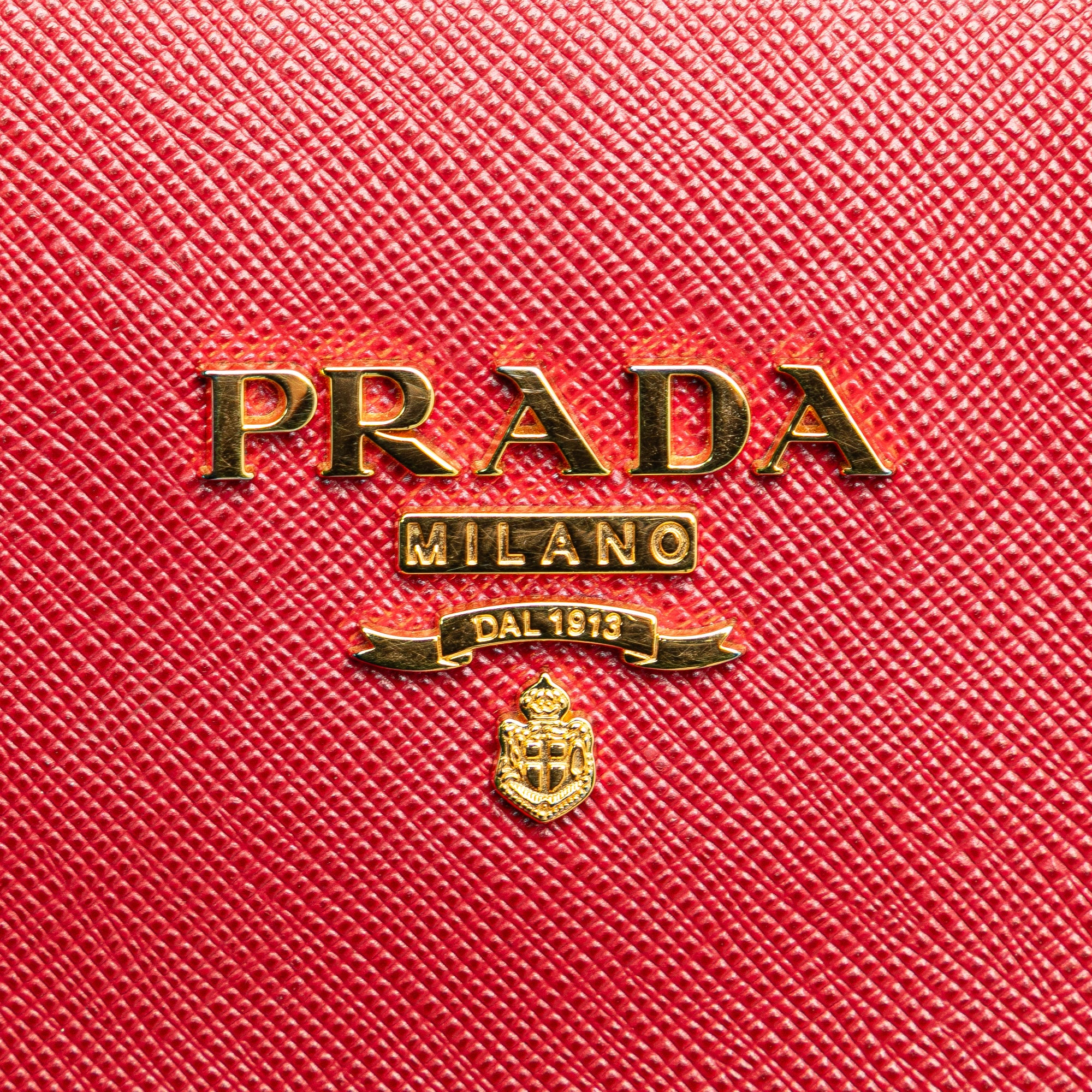 This satchel features a saffiano leather body, rolled leather handles, a detachable flat leather strap, a top zip closure, and interior zip and slip pockets. Inclusion: authenticity card. Retail Price: 2170.00