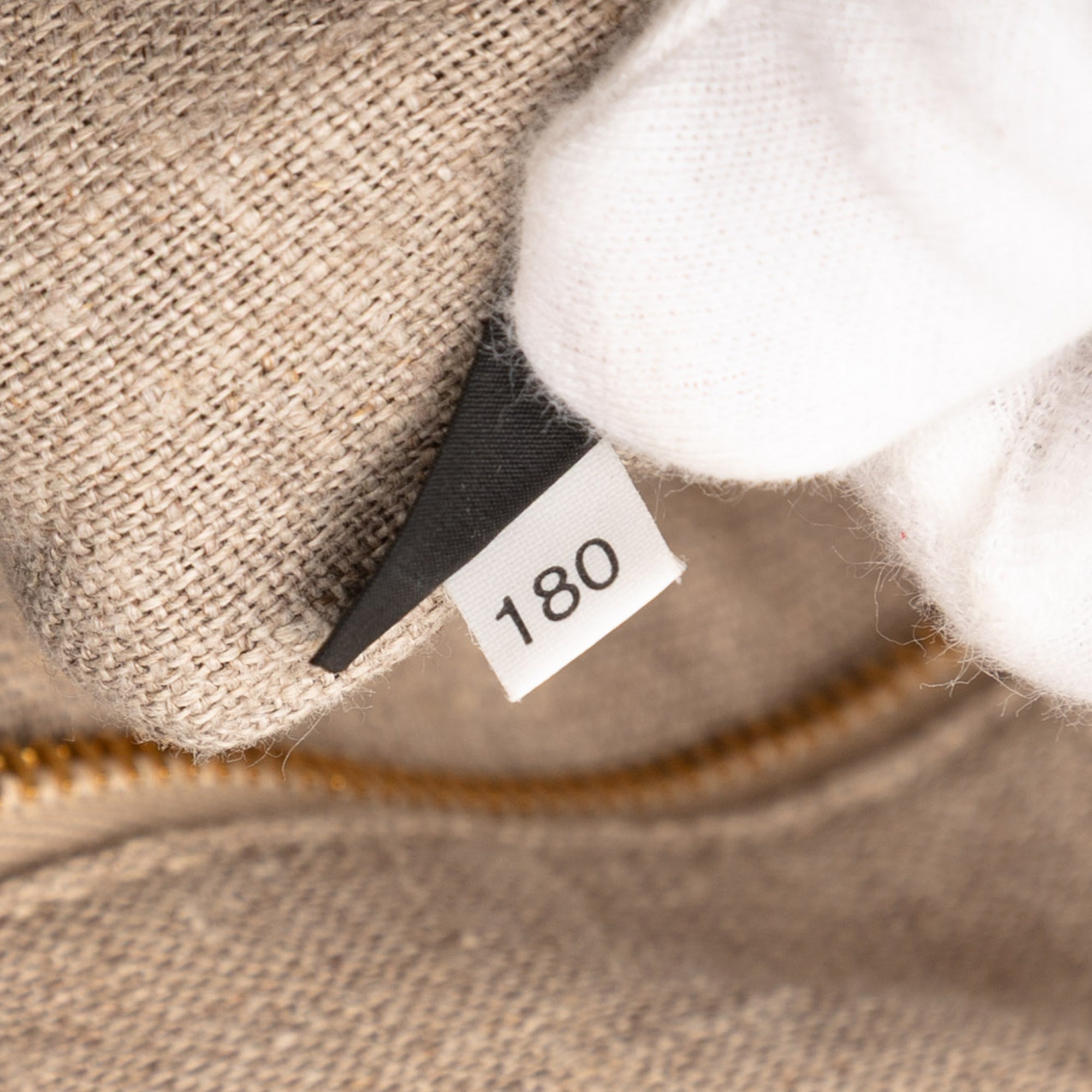 This satchel features a linen body, rolled top handles, a detachable flat strap, an open top, and interior zip and slip pockets. Inclusion: authenticity card. Retail Price: 700.00