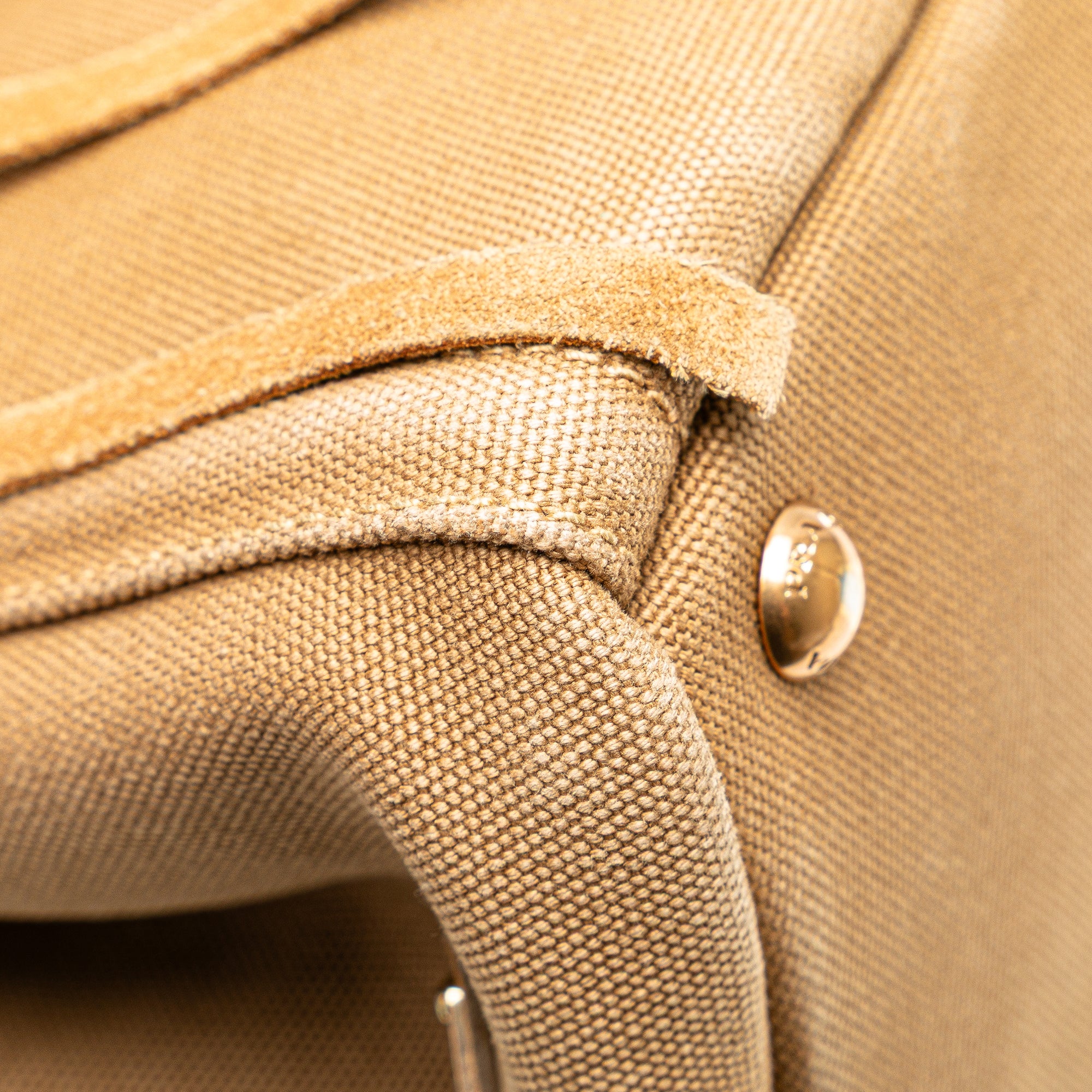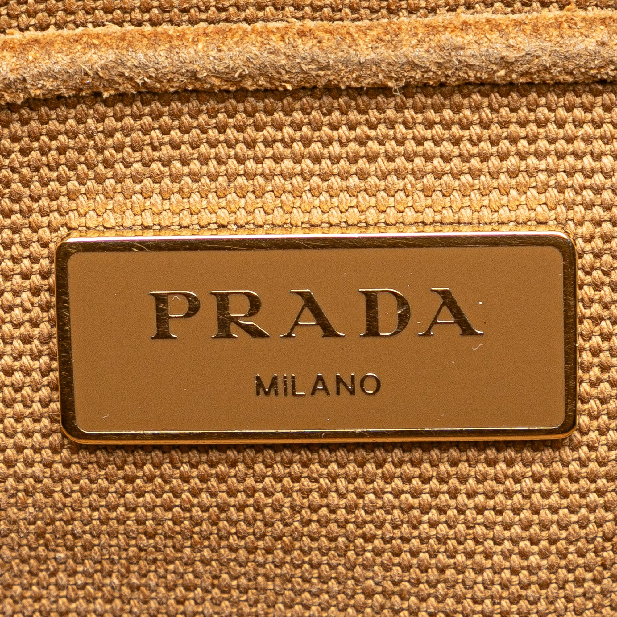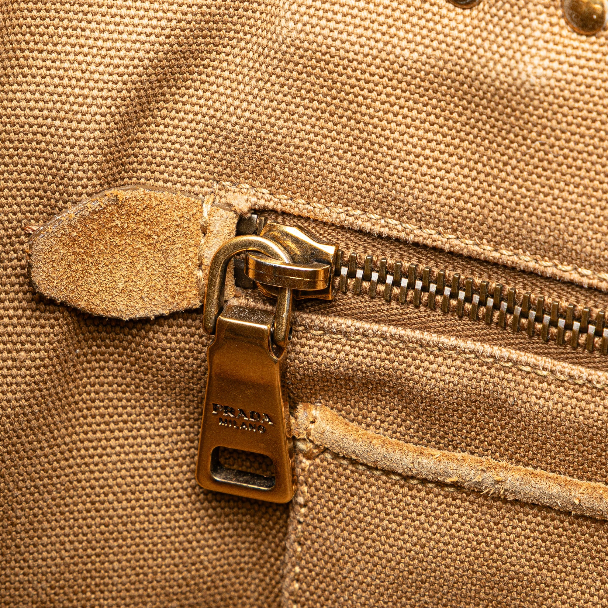 This handbag features a canvas body with suede fringes, grommet details, rolled handles, an open top, and interior zip and slip pockets. Retail Price: 990.00