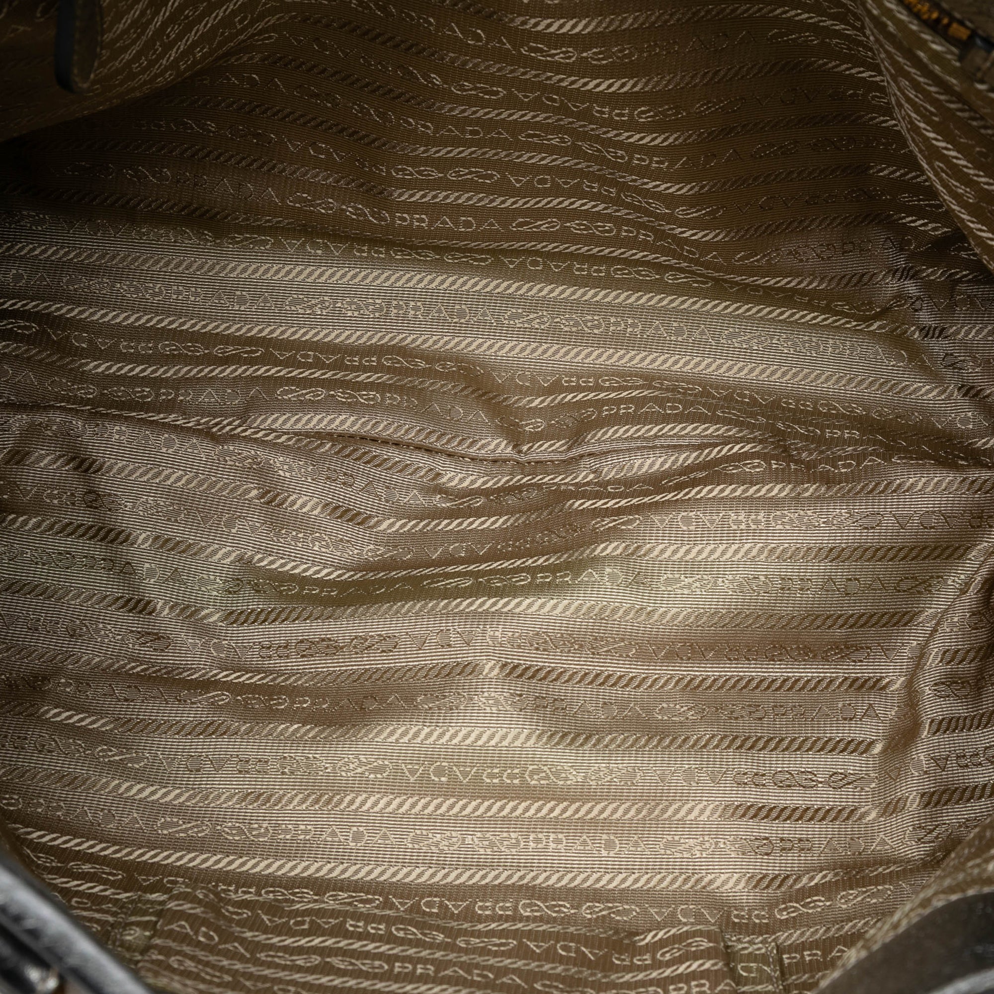 This tote features a canvas body with leather trim, flat leather straps, an open top with snap closure, and interior zip and slip pockets. Retail Price: 1030.00