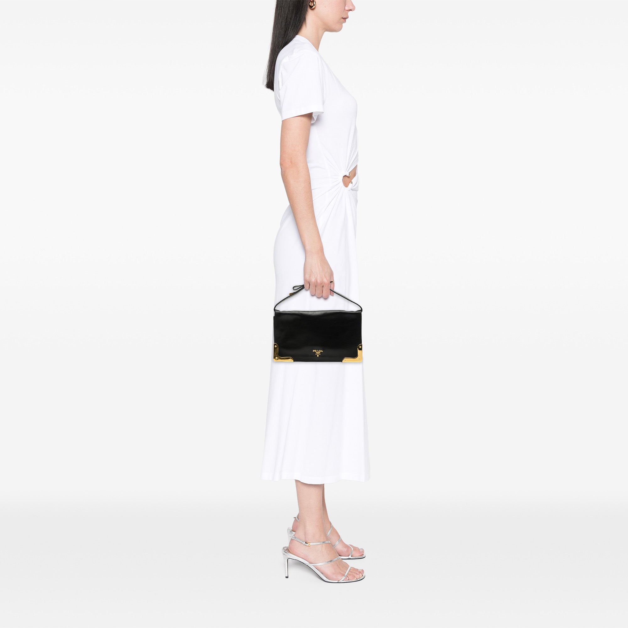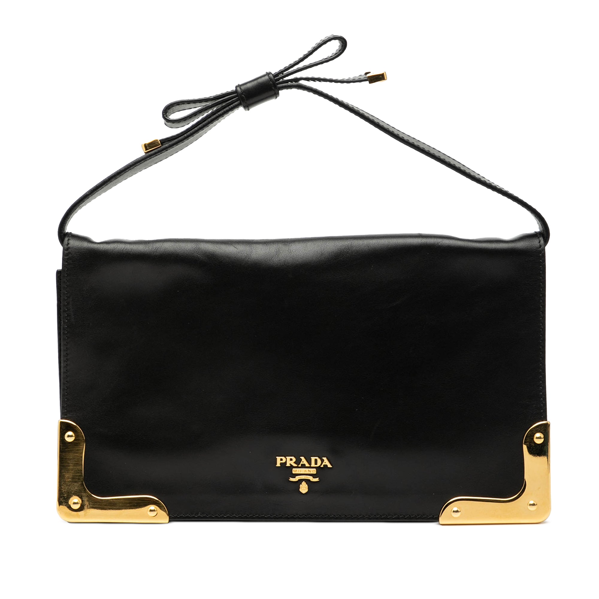 This handbag features a leather body, a flat leather strap with bow details, and a front flap with snap closure. Inclusion: Dust bag. Retail Price: 1850.00