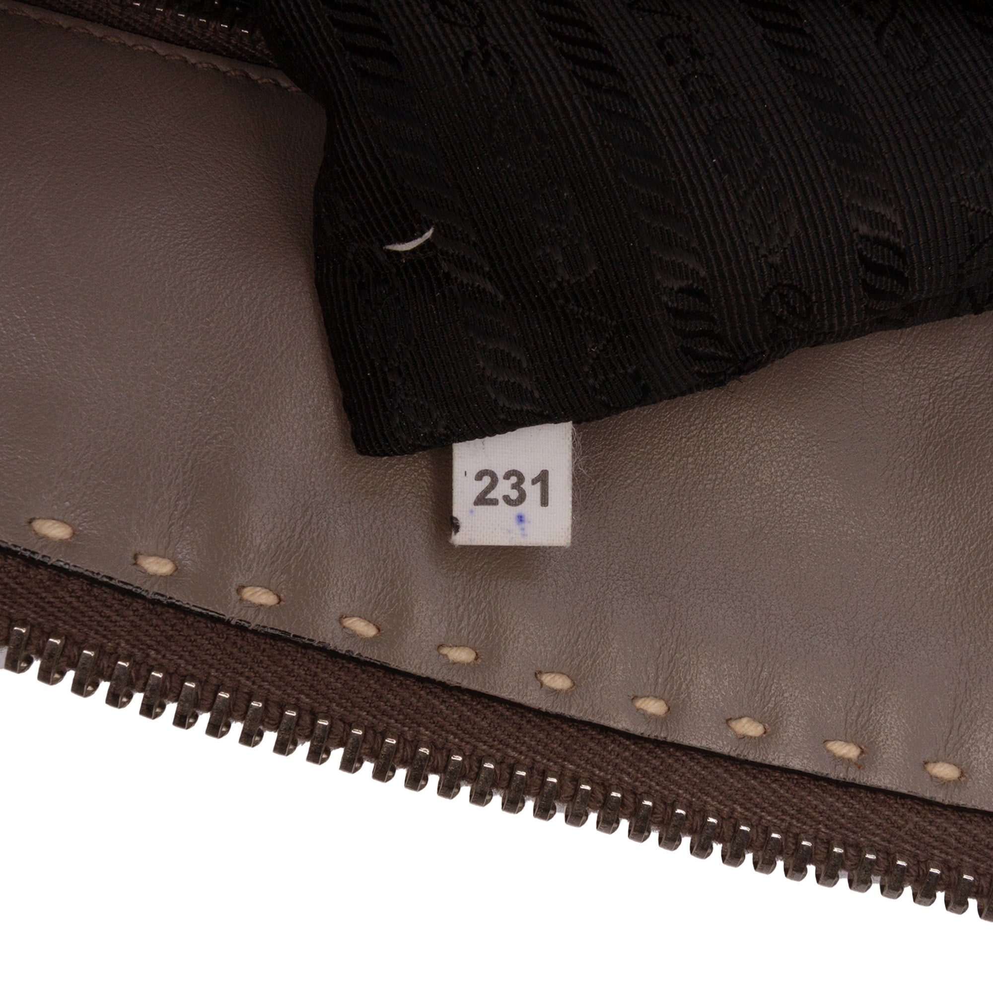 This tote features a leather body, rolled handles, a top zip closure, and interior zip and slip pockets. Retail Price: 1700.00