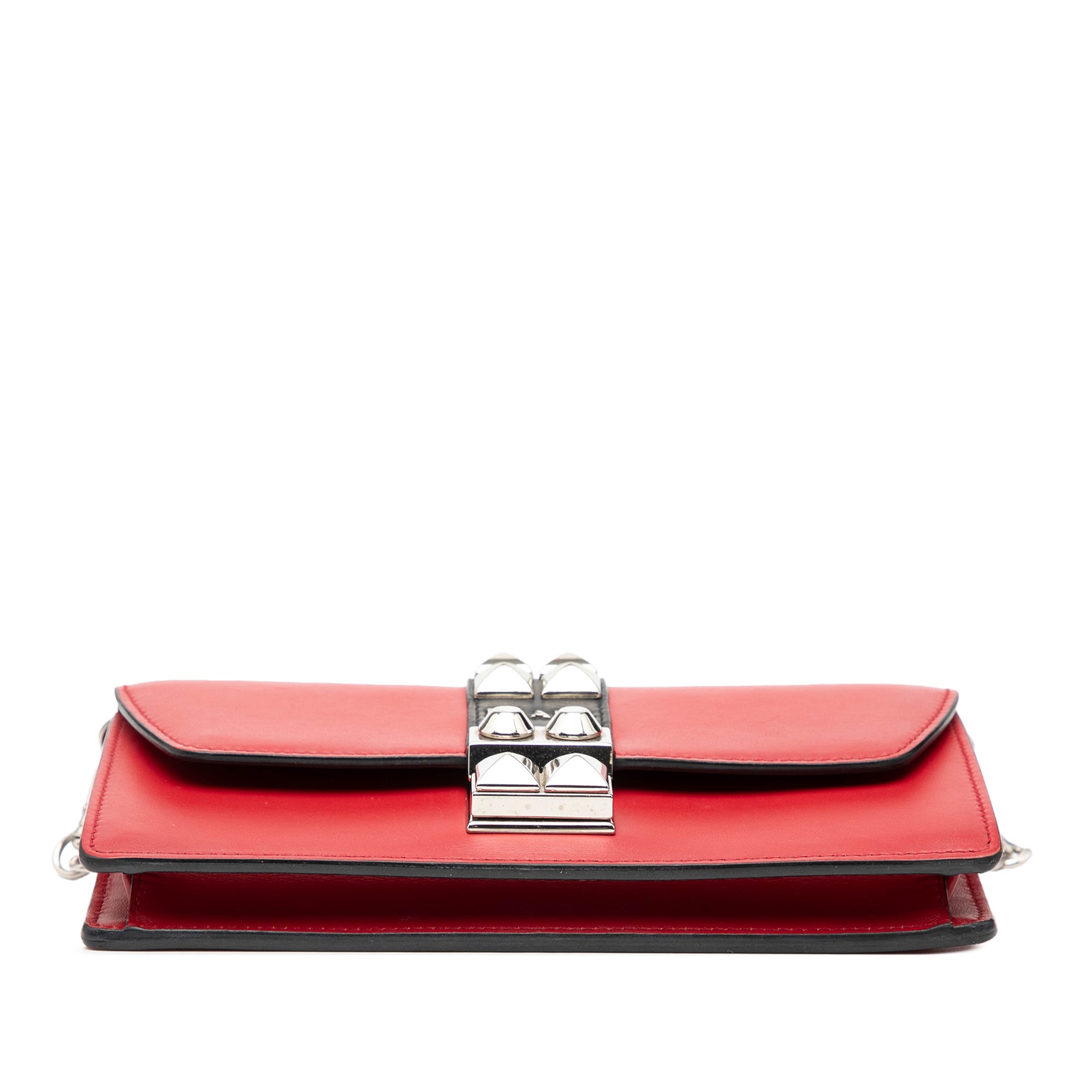 The Elektra features a leather body with stud details, a silver-tone chain link strap, a top flap with push lock closure, and interior slip pockets. Retail Price: 2990.00