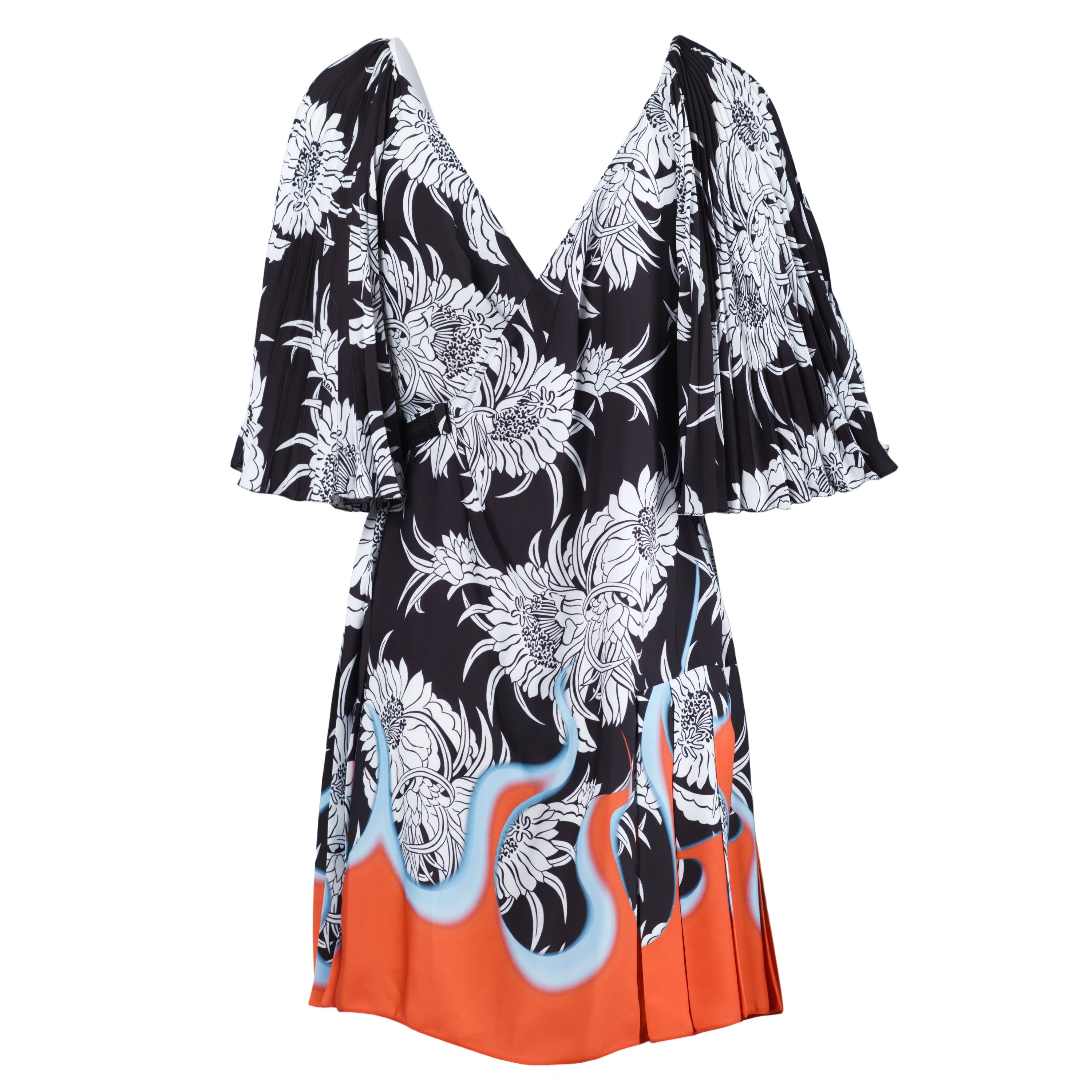 Prada Dahlia Flame Print Wrap Dress - '20s
