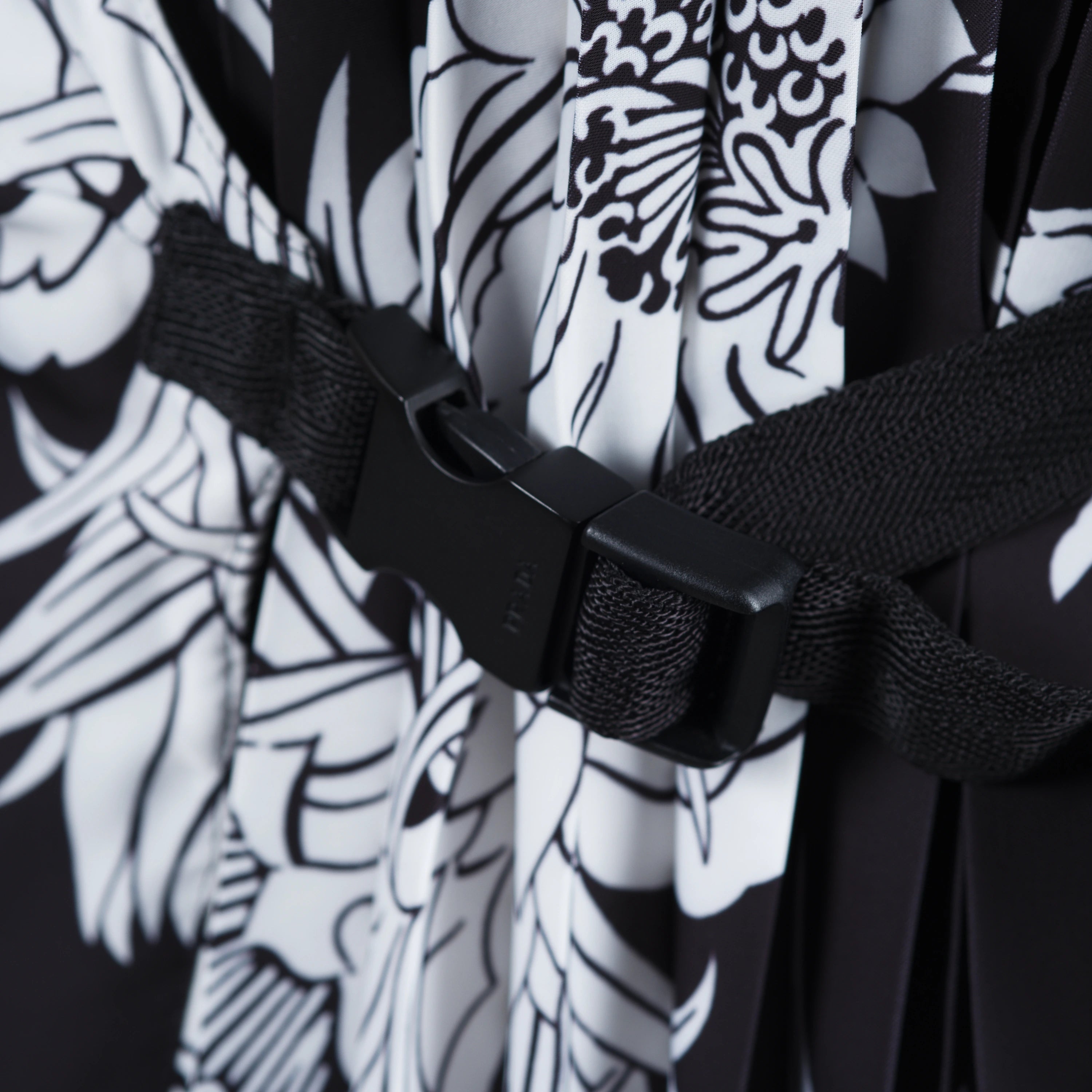 Prada wrap dress featuring the signature Dahlia Flame print, inspired by dahlia flowers and warm fiery tones, creating a sophisticated and dynamic visual effect. The front wrap design and adjustable waist tie enhance the feminine form, while high-quality materials ensure comfort, perfect fit, and impeccable finishes.