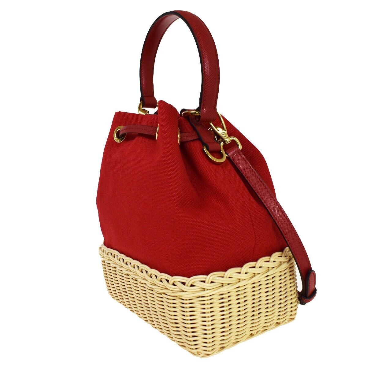 Prada Drawstring Bucket bag Canvas and Wicker