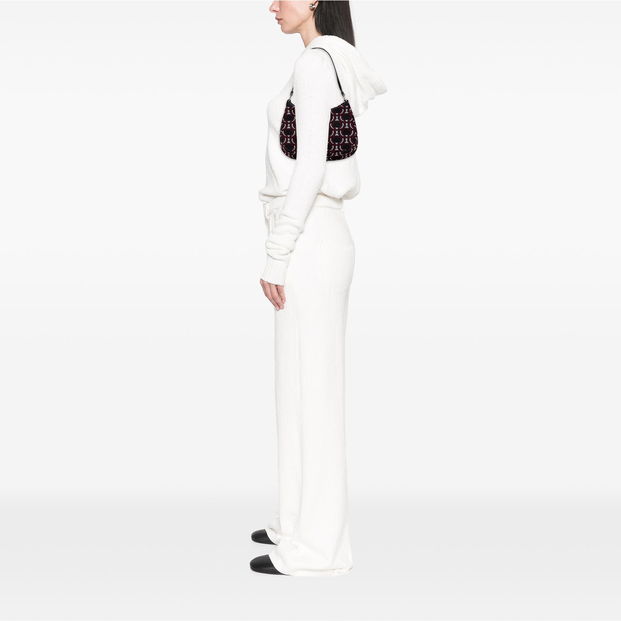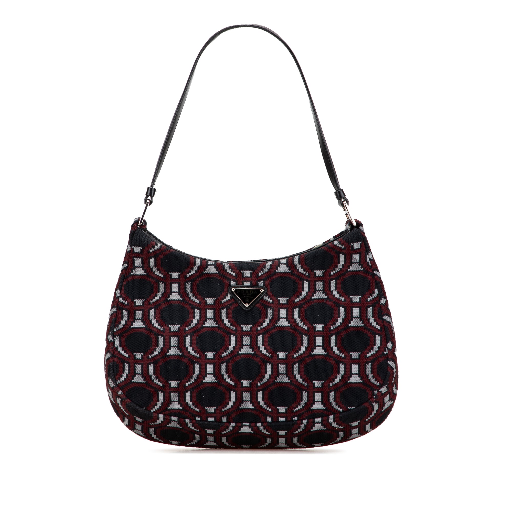 The Cleo bag features a jacquard knit body with leather trim, a flat leather shoulder strap, an open top with magnetic snap closure, and an interior slip pocket. Retail Price: 2900.00