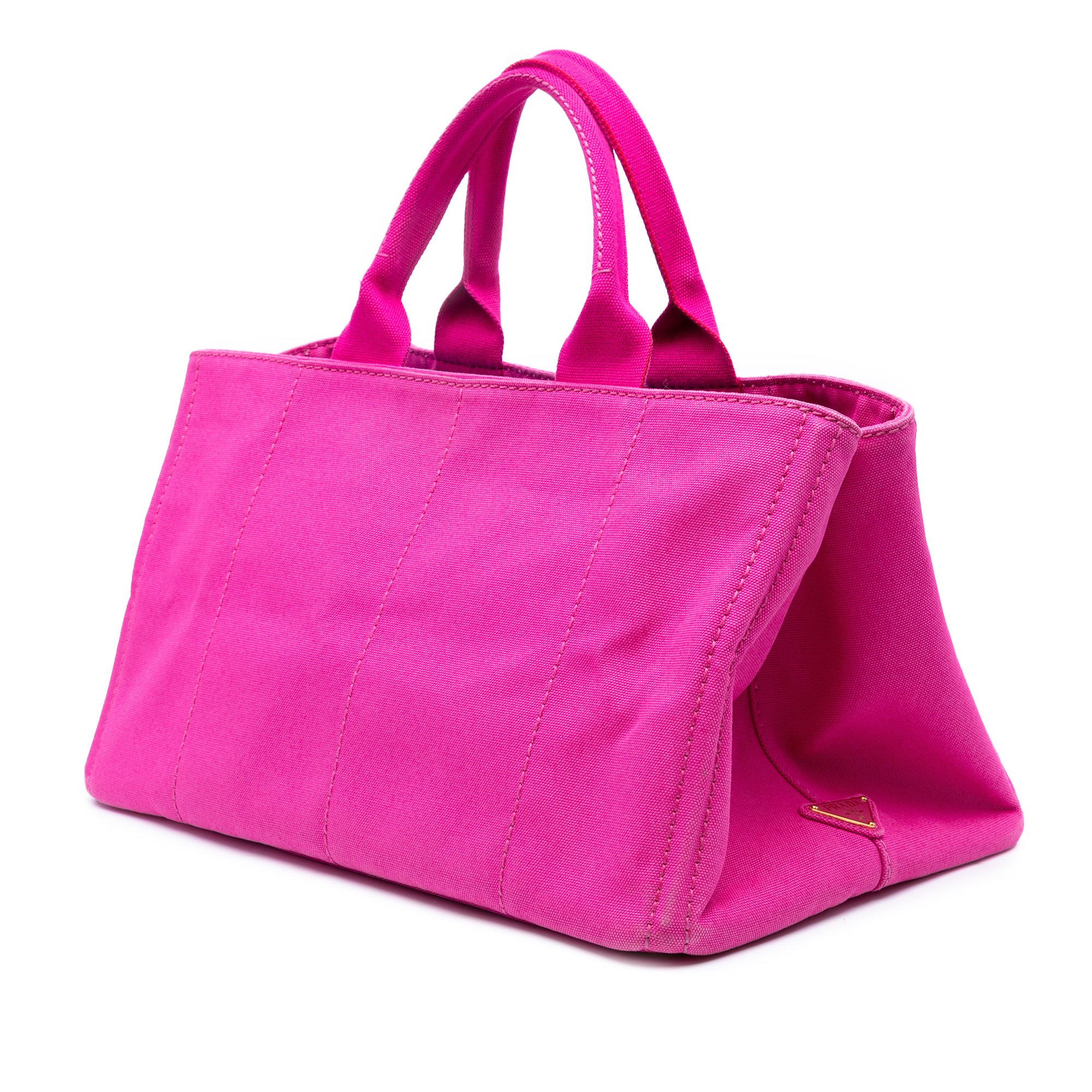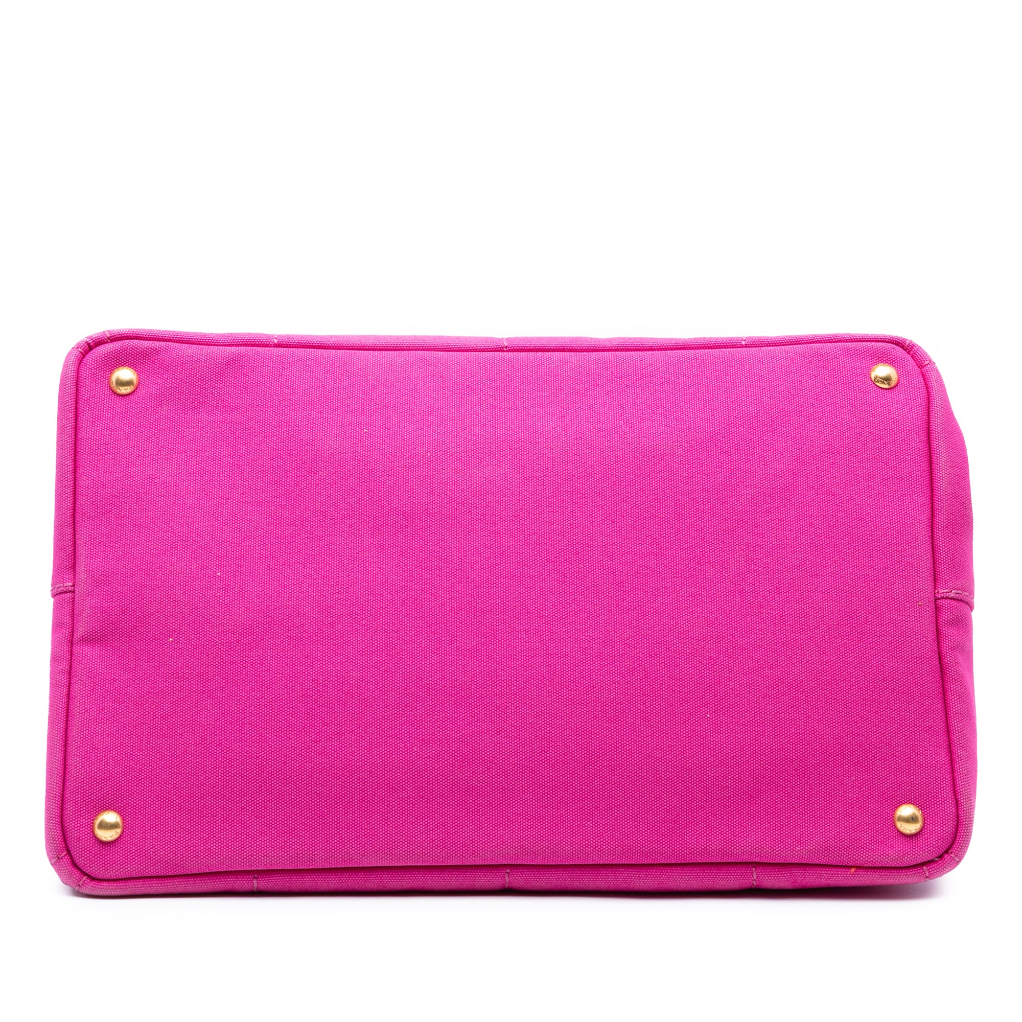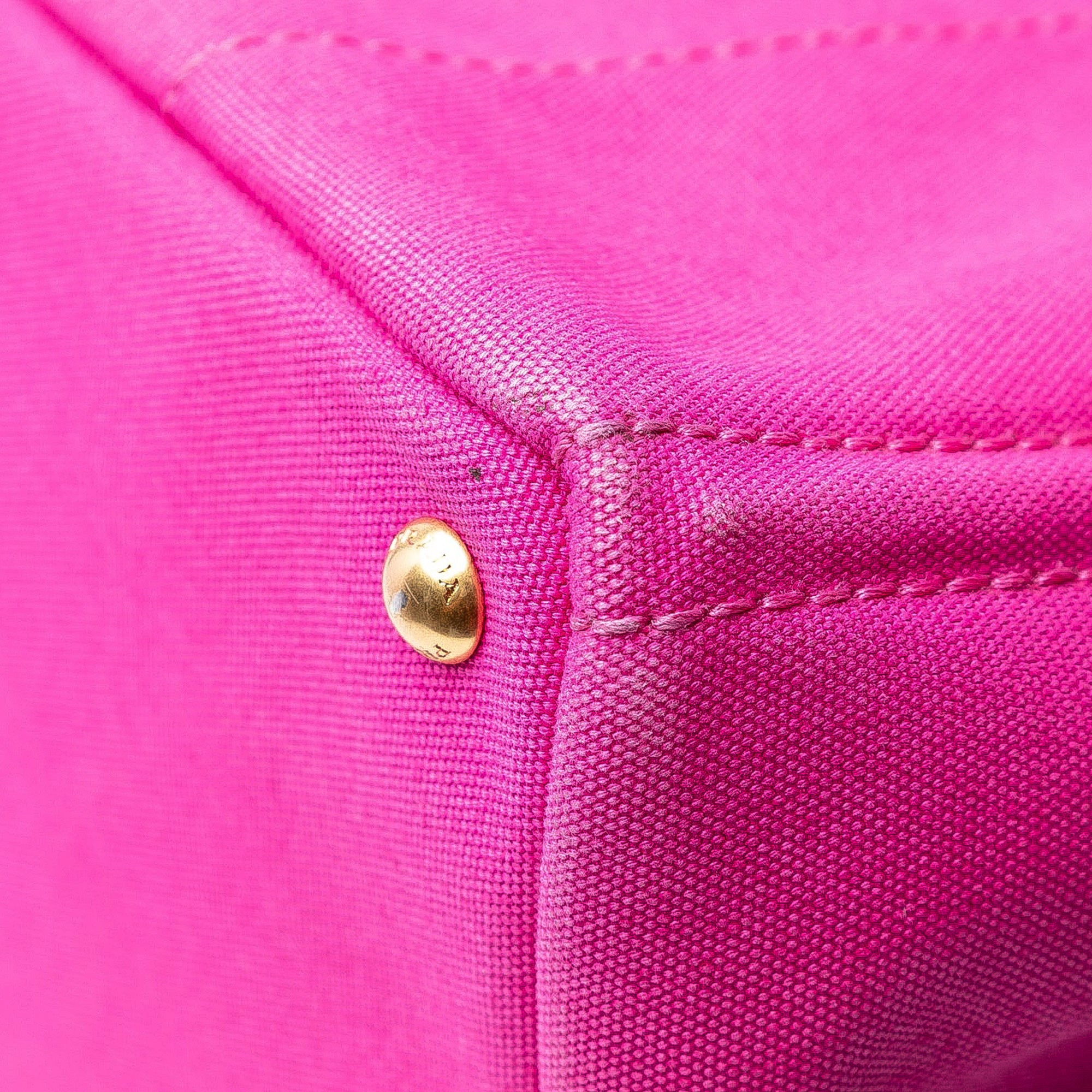 This satchel features a canvas body, rolled top handles, an open top, and interior zip and slip pockets. Retail Price: 950.00